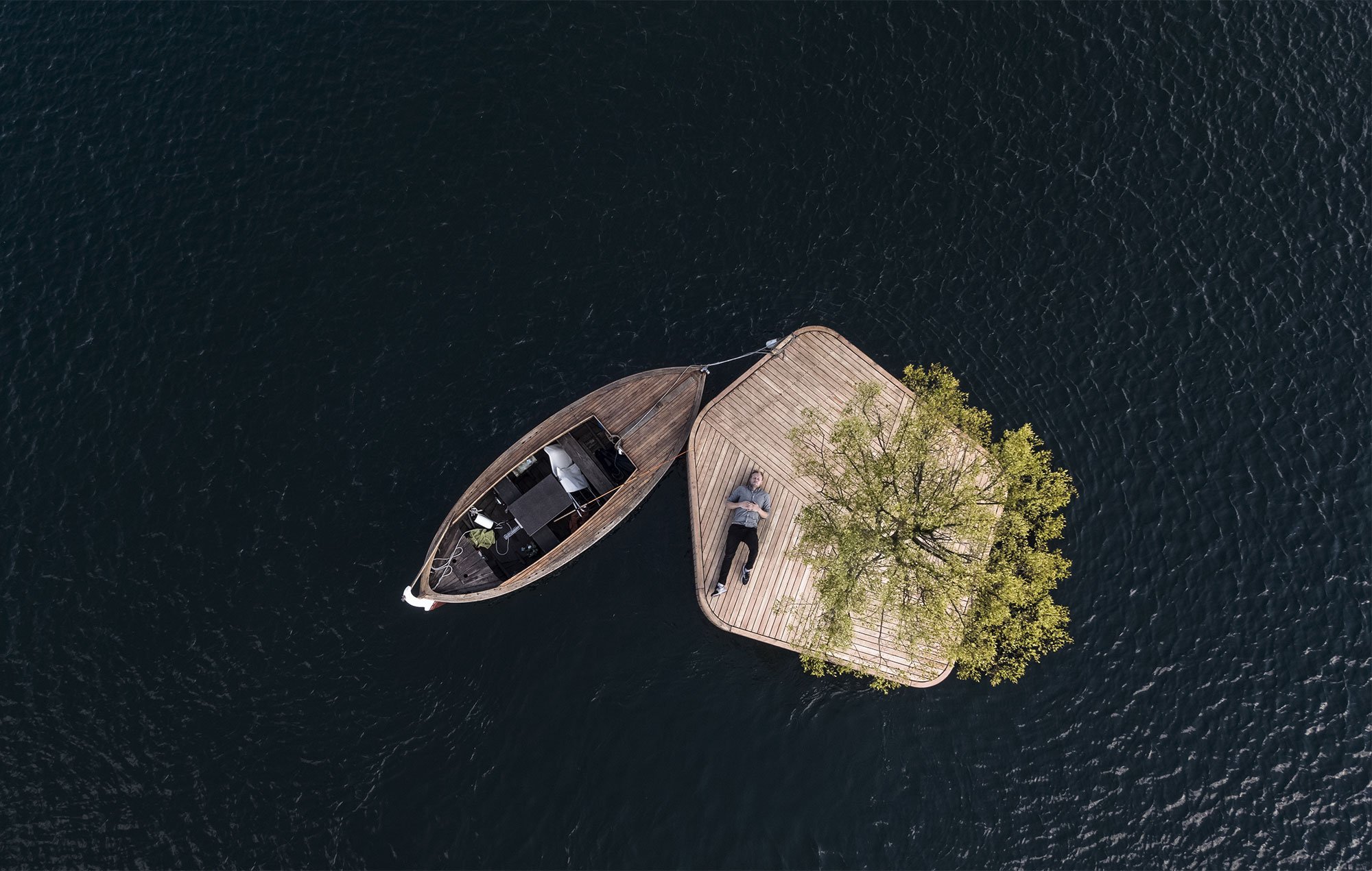 The other structures will include a floating sauna, a bar/coffee shop and a swimming platform as well as a stage, a flower and herb garden, and a miniature park. Although separate, the islands can easily connect to each other for larger events, such as summer festivals. The concept highlights the reduction in recreational spaces caused by rapid urban development as well as the new challenges presented by rising sea levels. The first island will move around the Copenhagen harbor throughout the year as a publicly accessible space. Photographs© Christian Emdal. Drone photography by Airflix.