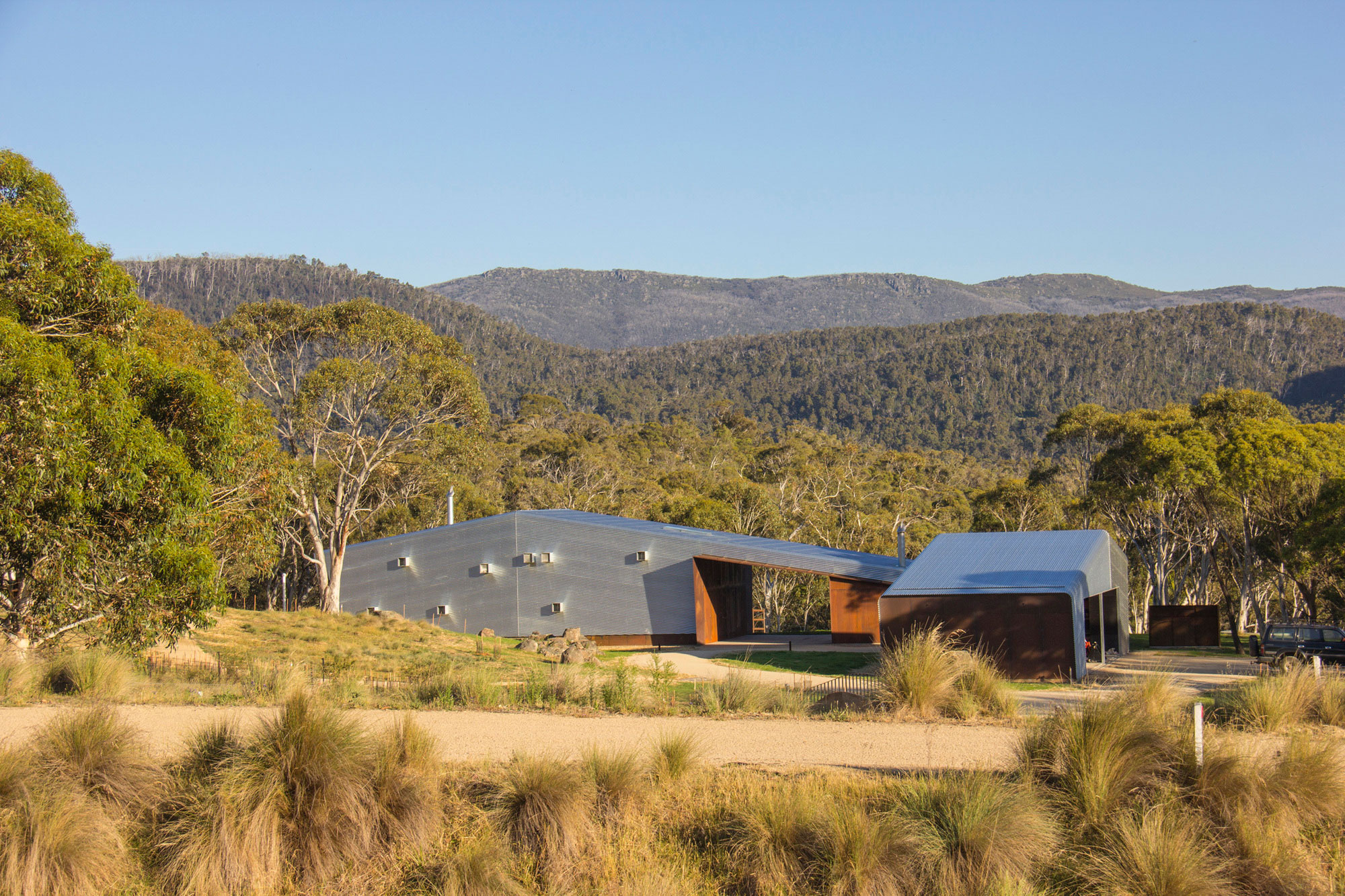 Two contemporary sheds designed with wavy silhouettes and silver metal cladding. Located in the Snowy Mountains, in southern New South Wales, Australia, this contemporary complex reinterprets traditional sheds with... Read full article »