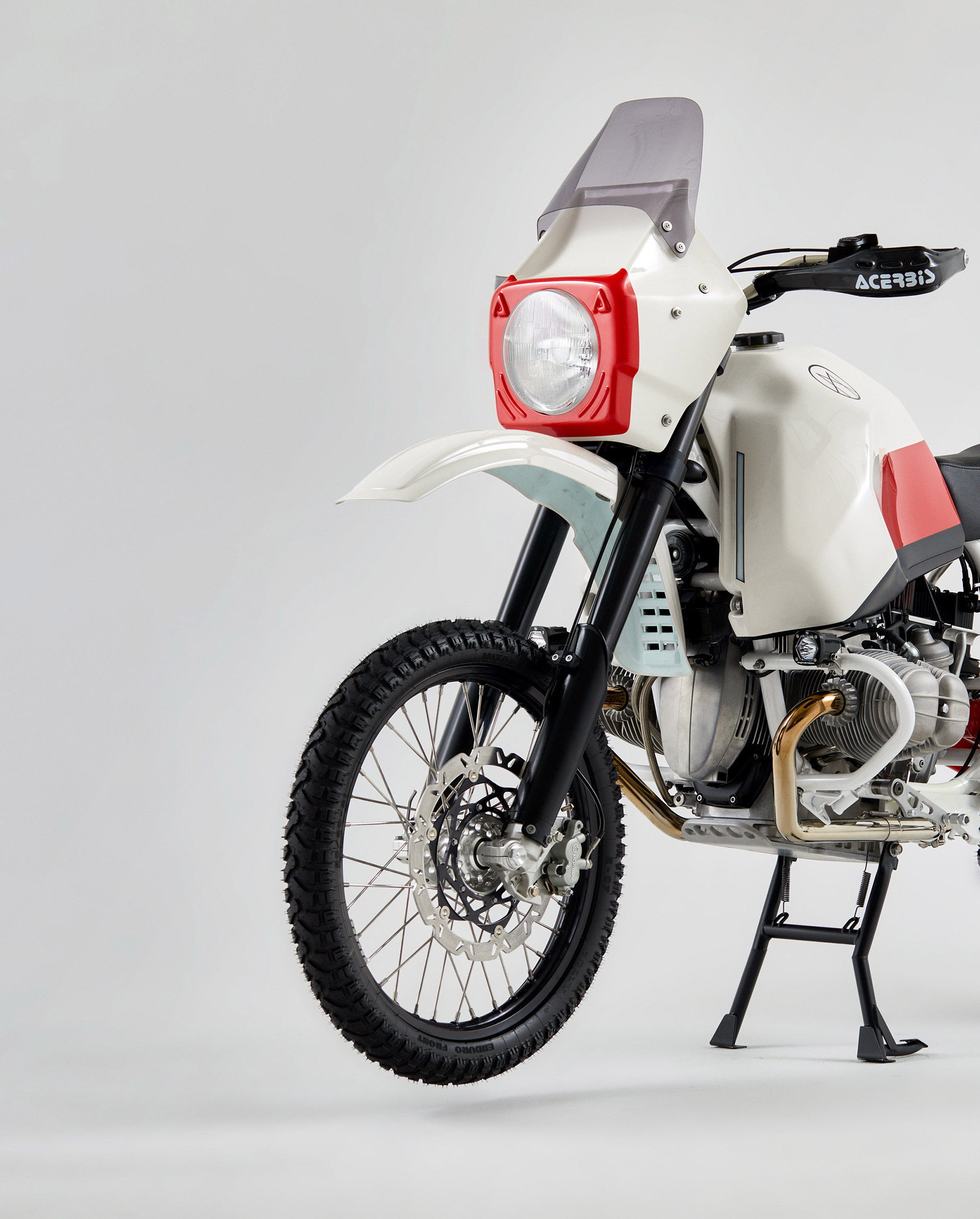 Born in Barcelona, designer, photographer, and bike builder Matias Corea moved to Brooklyn in 2002. 14 years later, he realized an old dream by riding 20,000 miles from NYC to the southern tip of Argentina on a BMW R80 G/S bike. Back home, he published a book about his adventure: Two Wheels South: A Motorcycle Adventure from Brooklyn to Ushuaia. He also set out to perfect the bike and make it an even better traveling companion. Completed by his own workshop Myth Motor, the custom 1983 BMW R80 G/S ‘Myth 001’ bike is specially designed for long tours around the world. Chosen for its versatility and widespread availability of suitable parts, the bike allows the user to easily repair it on the road. The build also incorporates Dakar-inspired details that enhance its adventurous vibe.