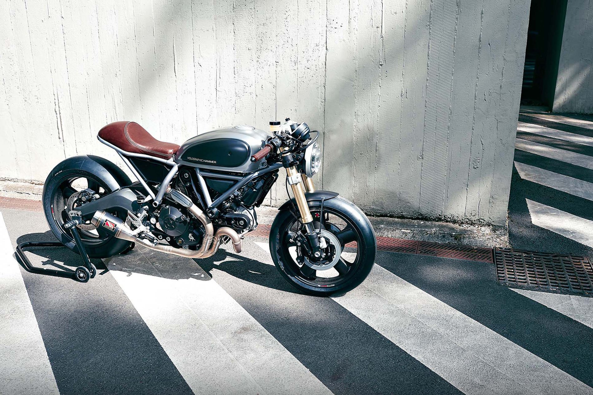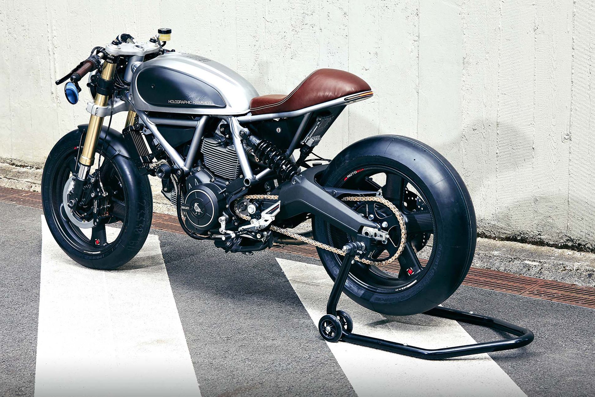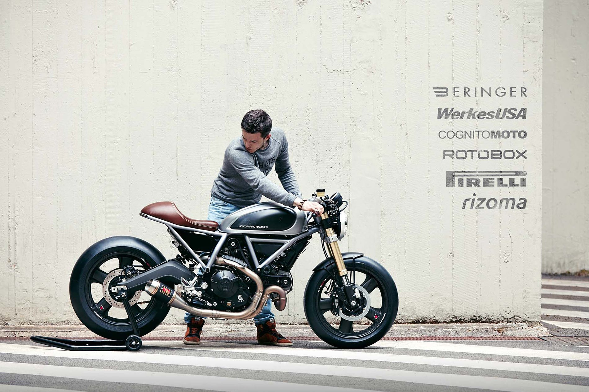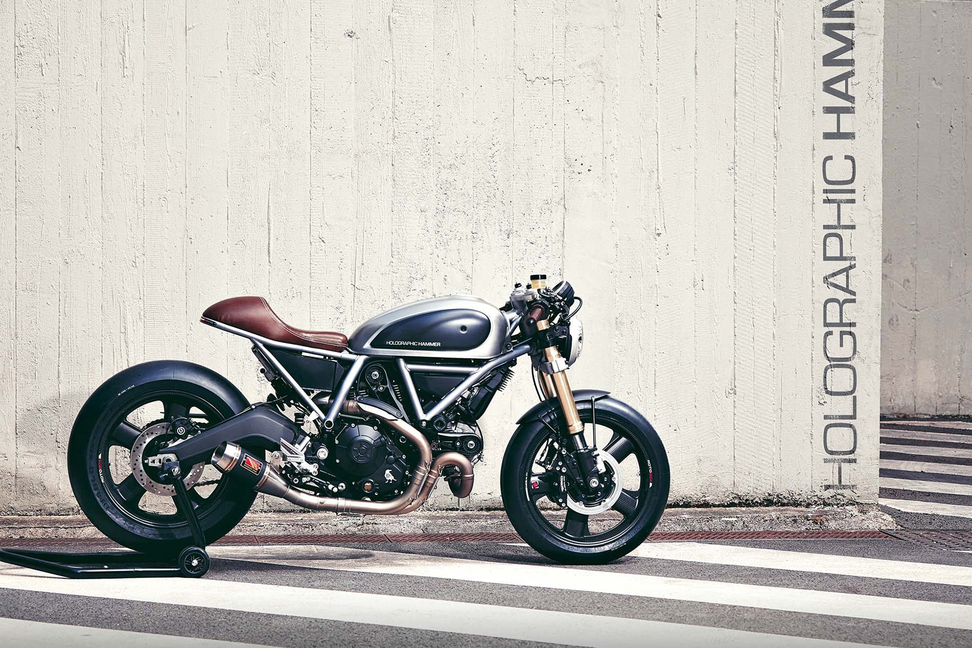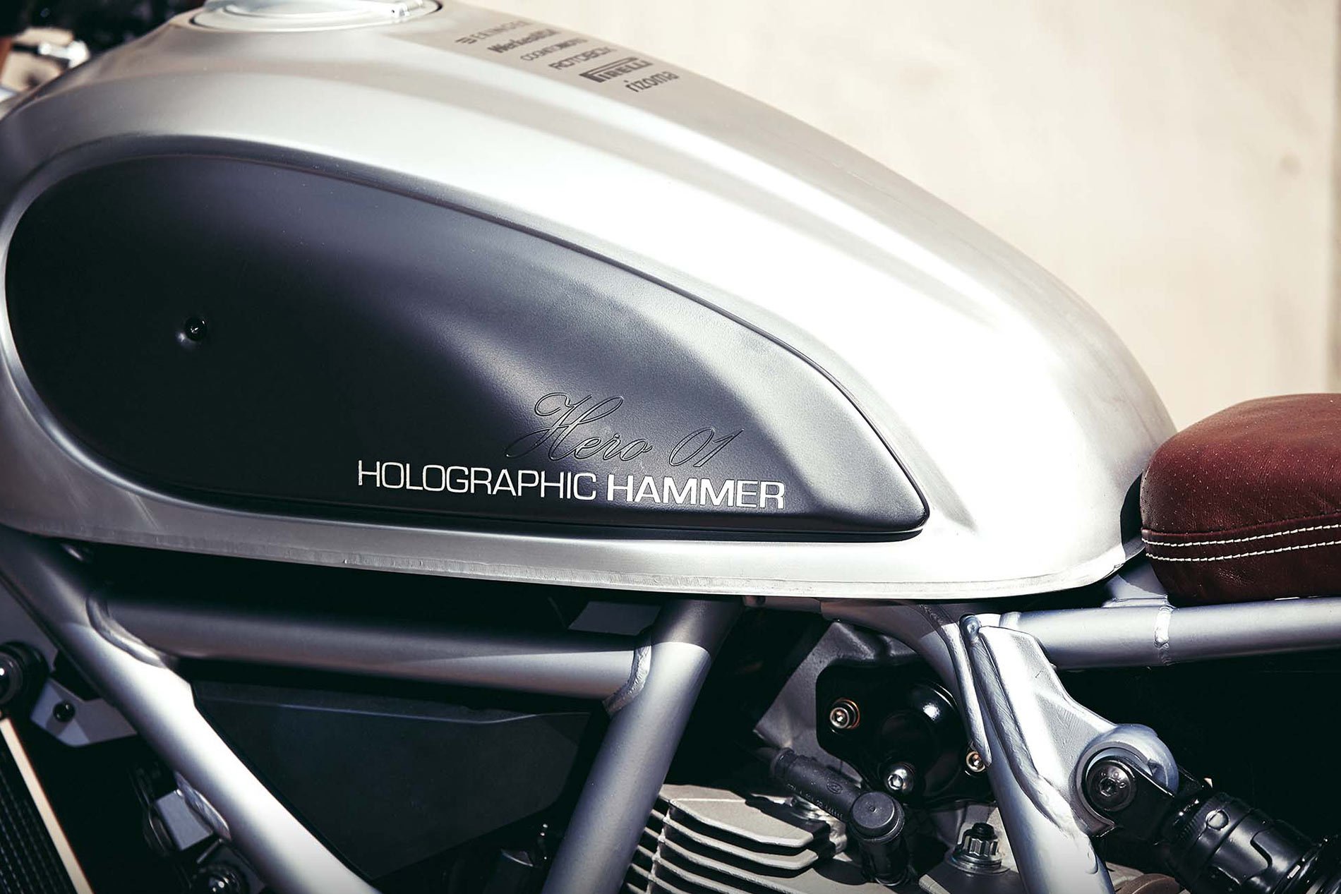 One of the most amazing features of Ducati’s Scrambler line is its versatility, with mods taking the factory model in all possible directions. And while some mods go for the grit of dirt track racers, the designers at Holographic Hammer decided to bring the Scrambler into the 21st century, opting to convert a factory standard into a sleek, clean café racer. Built by Sylvain and Florent Berneron, their Scrambler Hero mod started by contemplating the nature of the Scrambler as a bike; “for us a Scrambler is a bike you want to live with… so if you want to spend money on it, it will most probably be to change tires and brake pads to keep the fun coming.”