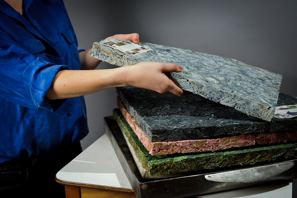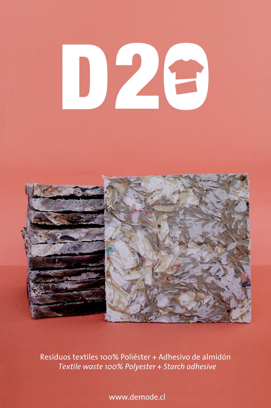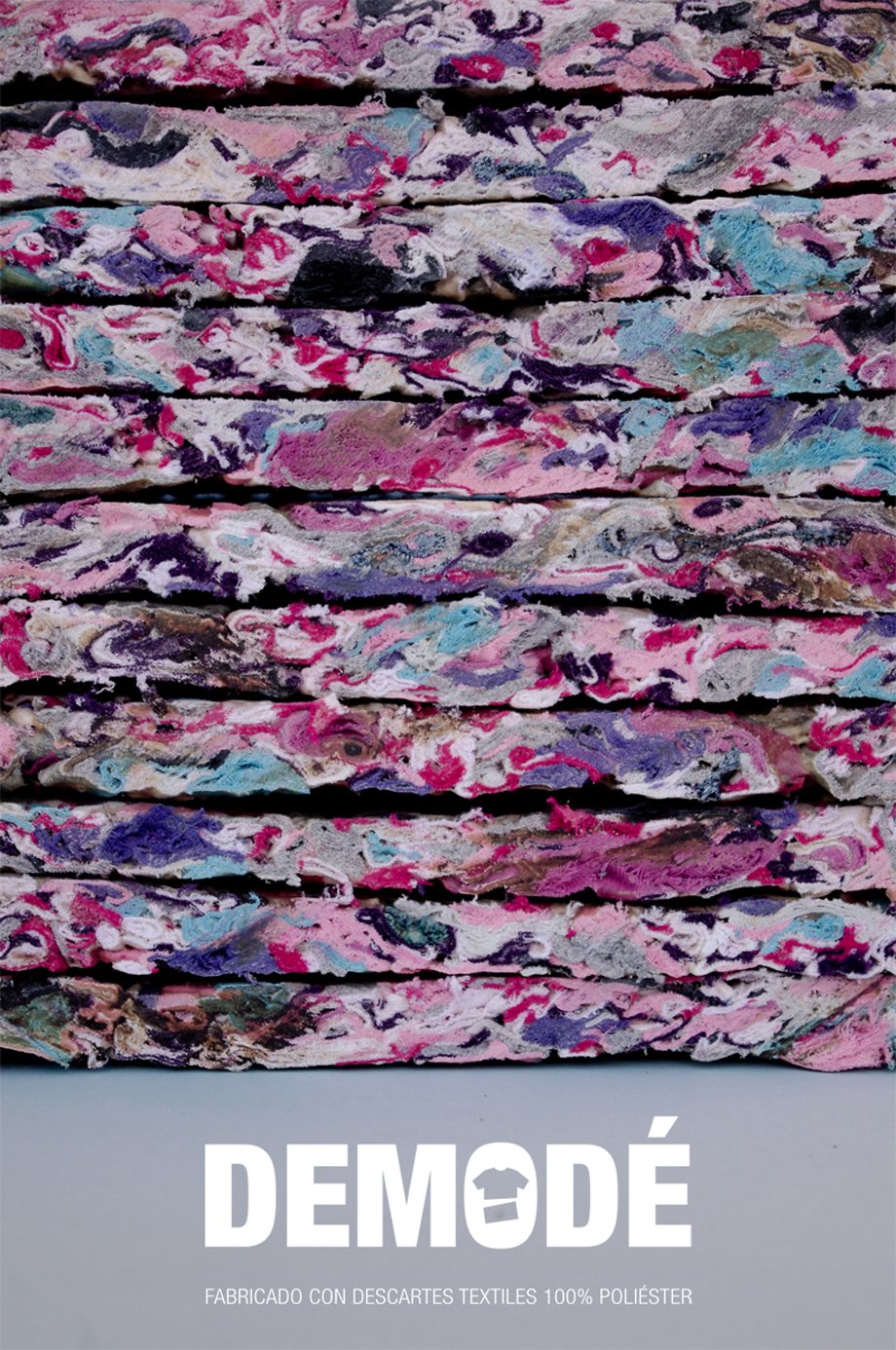 Demode is a genius material developed by Bernardita Marambio of Pecas Design Studio, comprised of left over scraps from textile factories of Santiago, Chile. In Santiago a jaw-dropping 46 thousand tons of waste is a result of these factories alone. A mix of plastics and natural materials are pressed together with a 100% biodegradable adhesive, making for a strong product that has been used in wall tiles and furniture pieces. They are a standard setter company, challenging the globe to waste not, striving toward environmental care certification. We are inspired by their efforts, looking forward to their success with this wonderful new product in all its possibilities.
