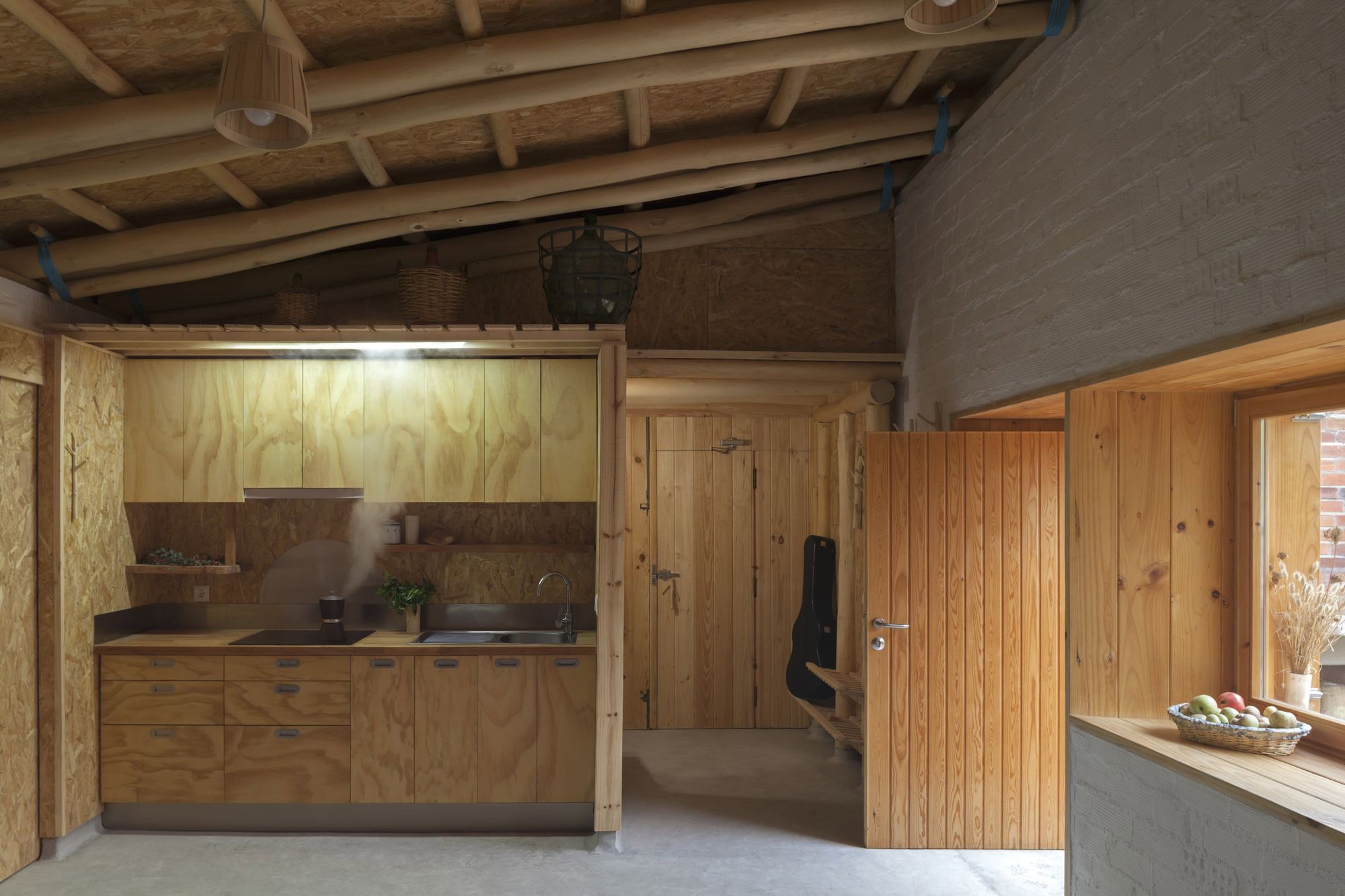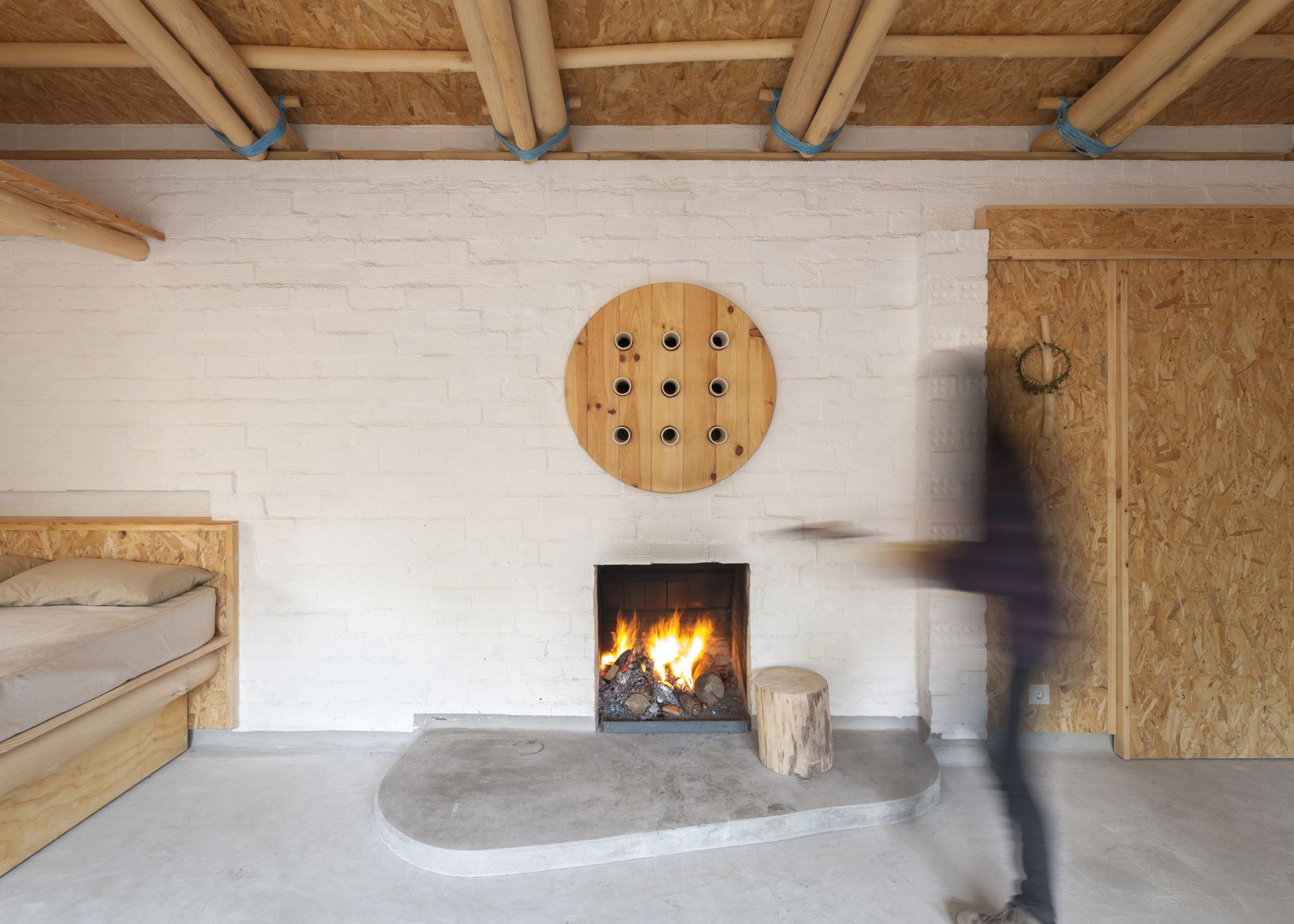 The studio focused on working with locally sourced materials, including using wood from freshly cut trees to craft beams. Other sustainable building methods include taking wheat and rye from the surrounding fields for the insulation and sourcing brick and concrete from nearby communities. Photographs© Ediciones Mínimas, Fermín Blanco.