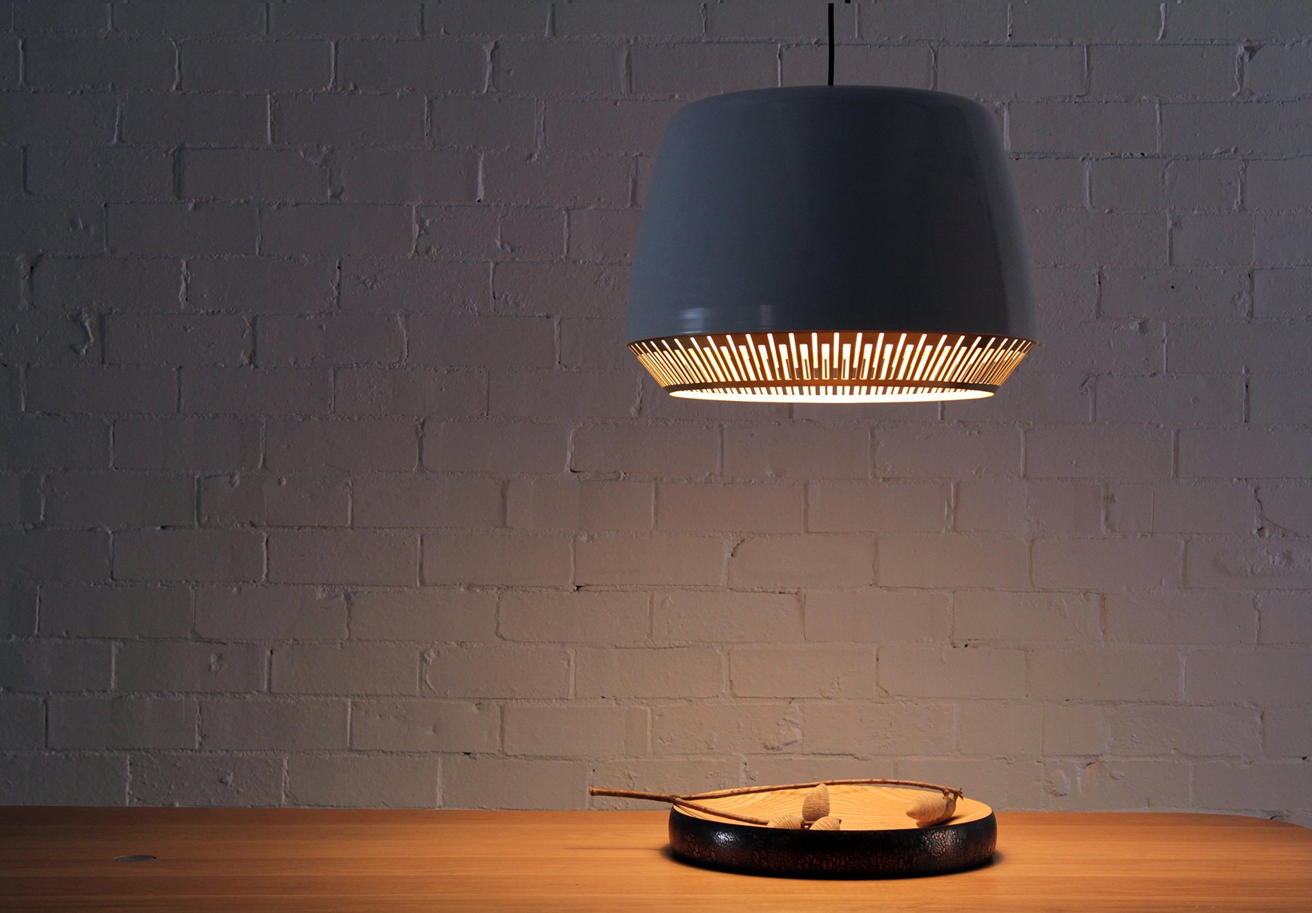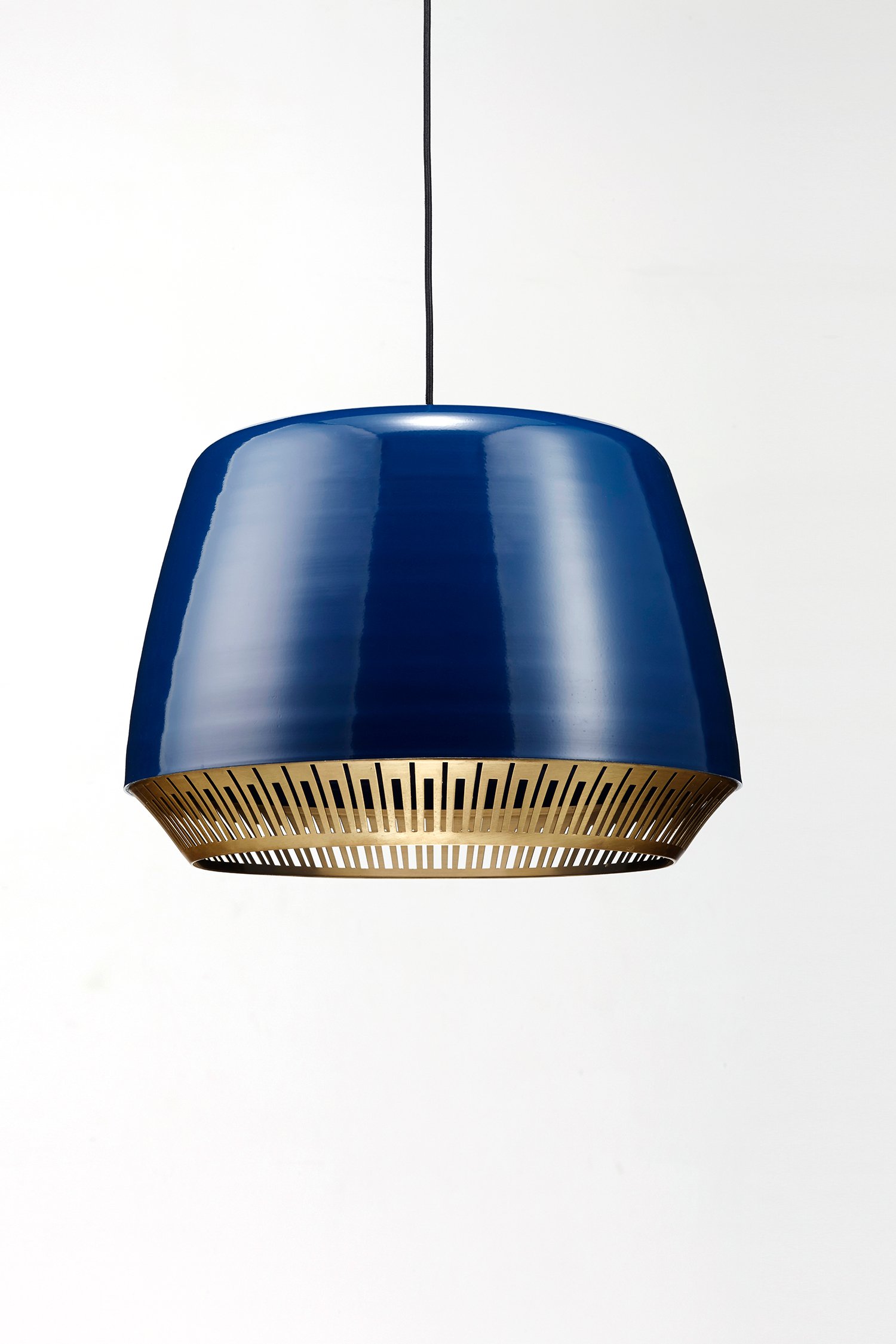 New from Anaesthetic Design, the Bezel Pendant Light was created by co-founder Ben Wahrlich. The hanging lamp pairs a polished, spun aluminum lampshade with metallic bezel cut in a piano key design. Diffusing light in a Moiré pattern, the effect is altogether mesmerizing. The shade is finished with a satin powder coat, and the bezel is crafted from one’s choice of brass, natural aluminum, or powder-coated aluminum. Most of the components are made locally in Australia, though the black textile cable is crafted in Italy. Find the fine lighting design online here in white, black, and deep blue or a custom color, as requested. Prices start at 1,190AUD.