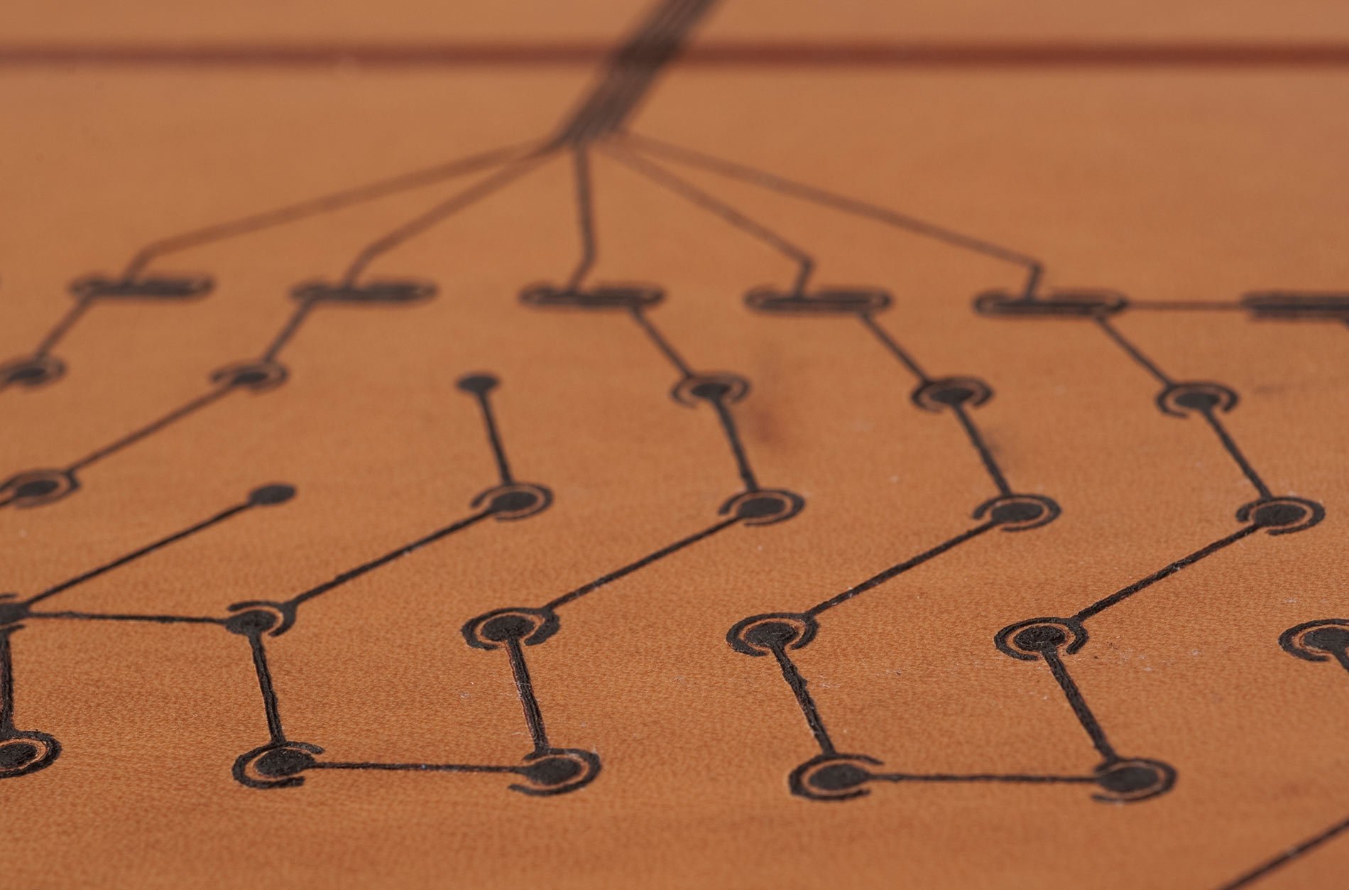 This iPad cover and Bluetooth keyboard if fully functional, decorated, and made of leather. Designed by Alexandre Echasseriau in collaboration with Pierre Emm, Johan Da Silveira, and Piotr Widelka of Appropriate Audiences, the high-tech accessory is wired, embossed, and inked. The circuits are carefully integrated with the leather so that they are sensitive to the touch, and the embossing makes the design more elegant and tactile overall. Digitally inked by tattoo artist Jéremy Lorenzato, the nautical imagery was created using Tatoué, a hacked 3D printer. Check out the process on Youtube and here on Alexandre Echasseriau’s website.