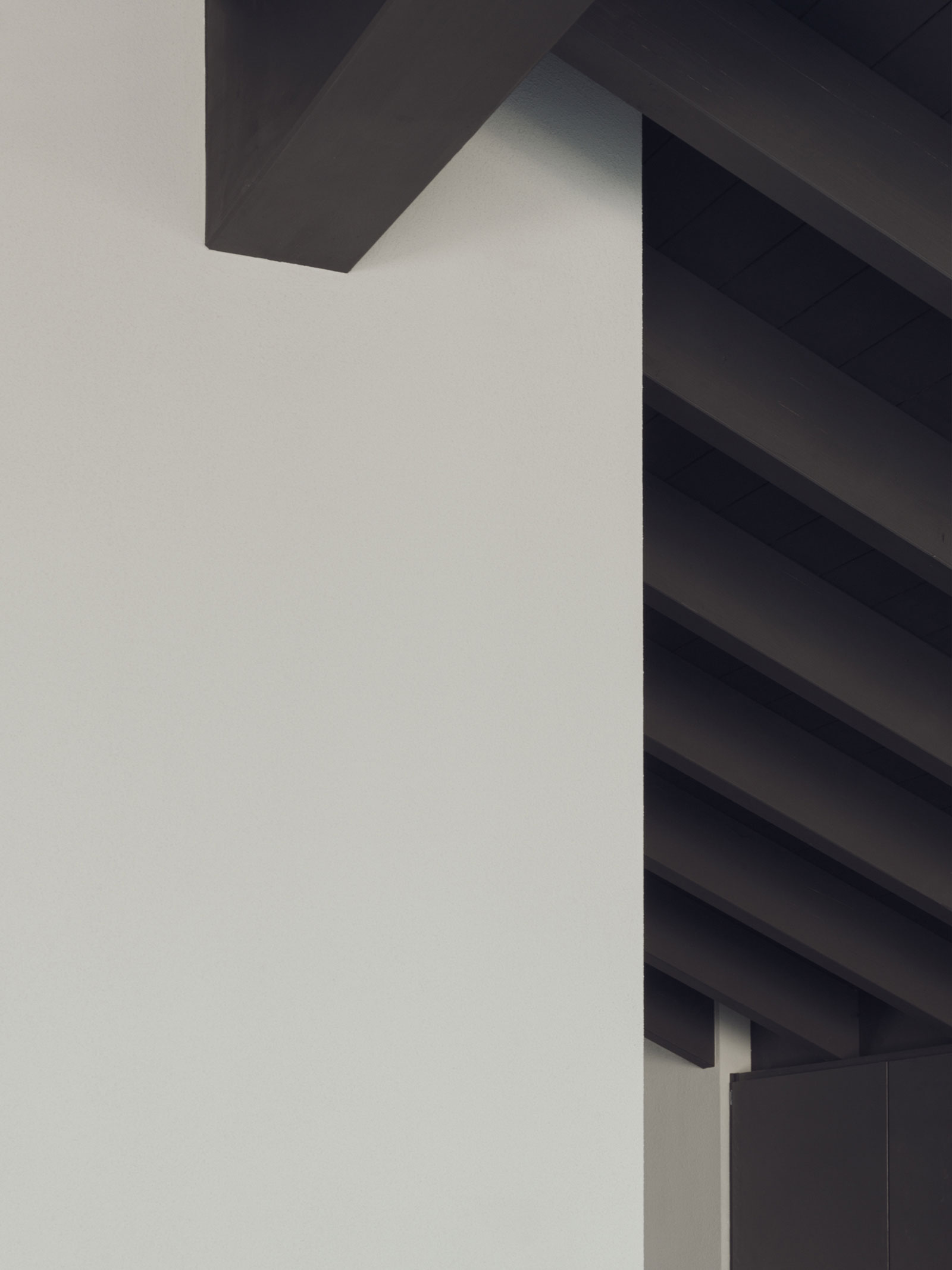 On the upper level, the old and the new structures come together under the same gabled roof. Glass doors open the living spaces to terraces and frame the stunning landscape at the same time. In terms of materials, the architect kept the same balance between traditional and contemporary design. The exterior walls are cement mortar while the roof features vernacular stone tiles. Instead of a brown color, the spruce wood frame and interior structure boasts a modern black finish. Photography© Marcello Mariana.