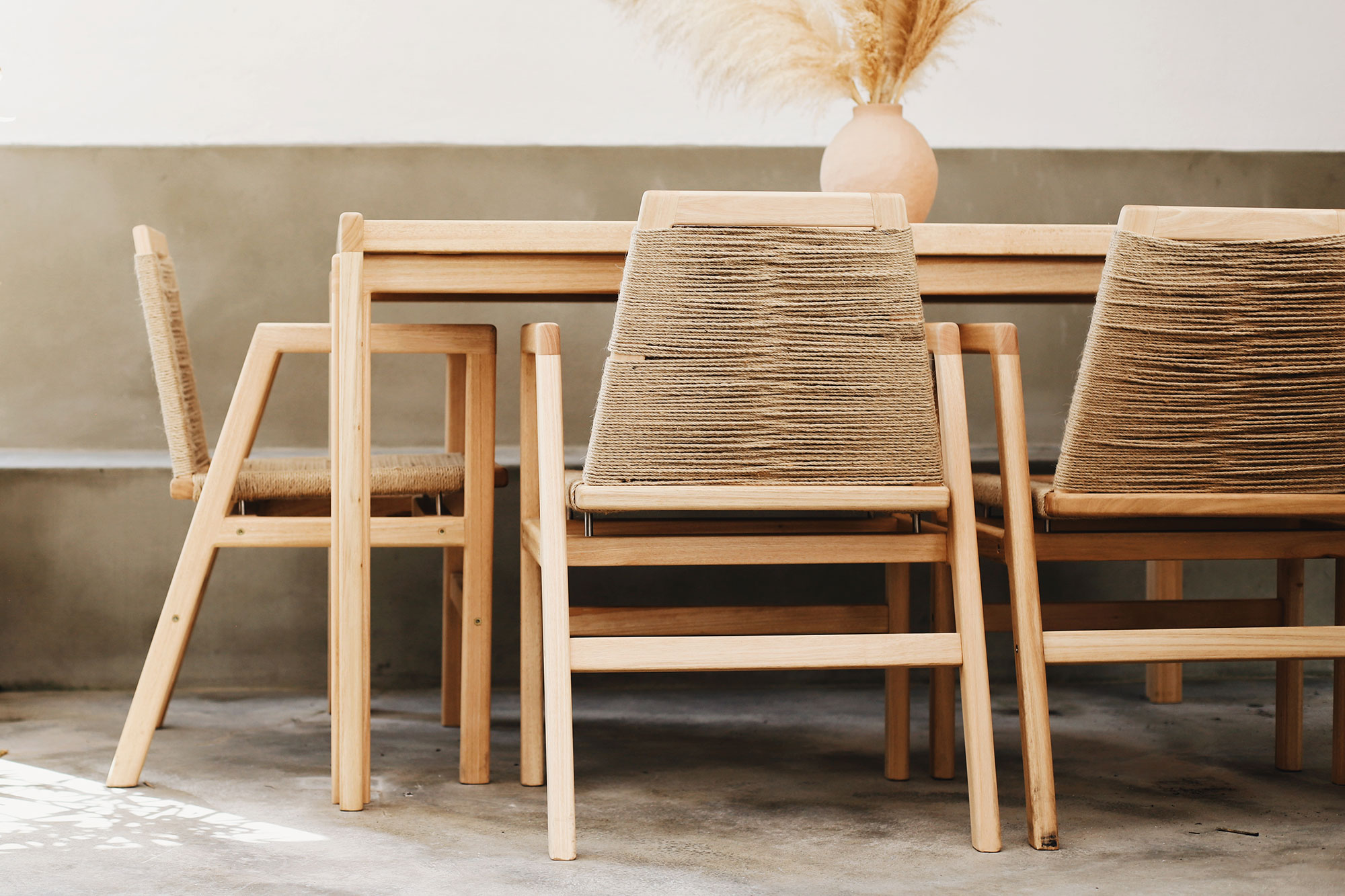 Elegant, minimalist, and versatile, this eucalyptus outdoor furniture series is also sustainable.