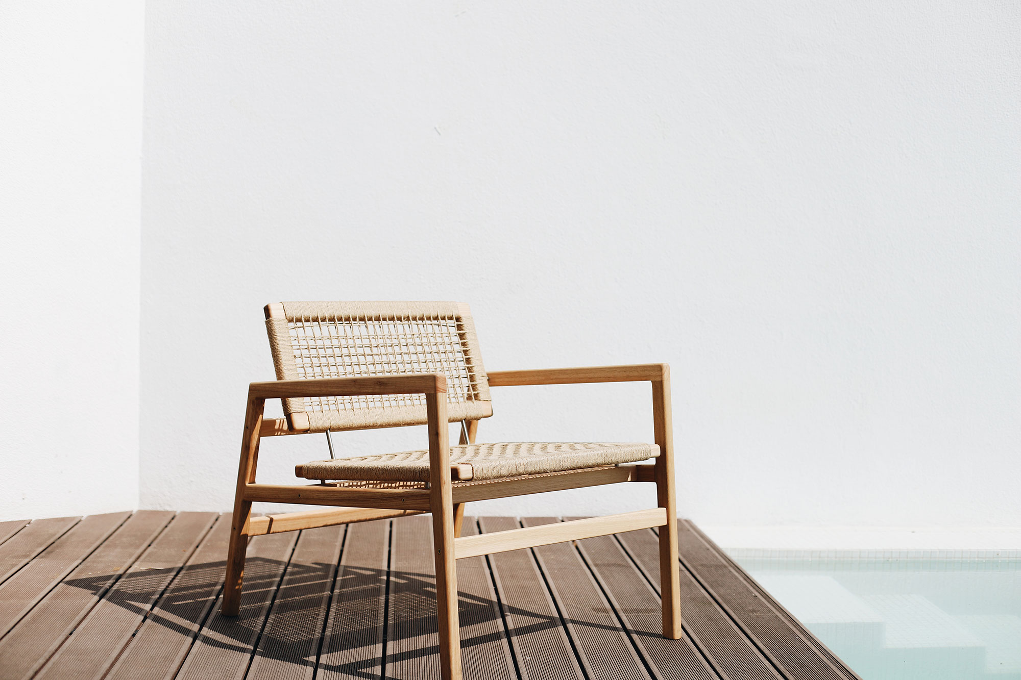 A trained cabinetmaker, the designer wanted to create a collection that offers a more refined alternative to bulky designs without sacrificing stability. In the initial concept development process, crucial features included the ability to stack the furniture and to experience complete comfort without the need for extra cushions. The Hokka eucalyptus outdoor furniture series fulfills all of these requirements. Stylish and lightweight, the chairs feature hand-woven seats and backrests on a eucalyptus frame. The latticework gives them an airy look and feel while adding a beautiful texture to the designs.