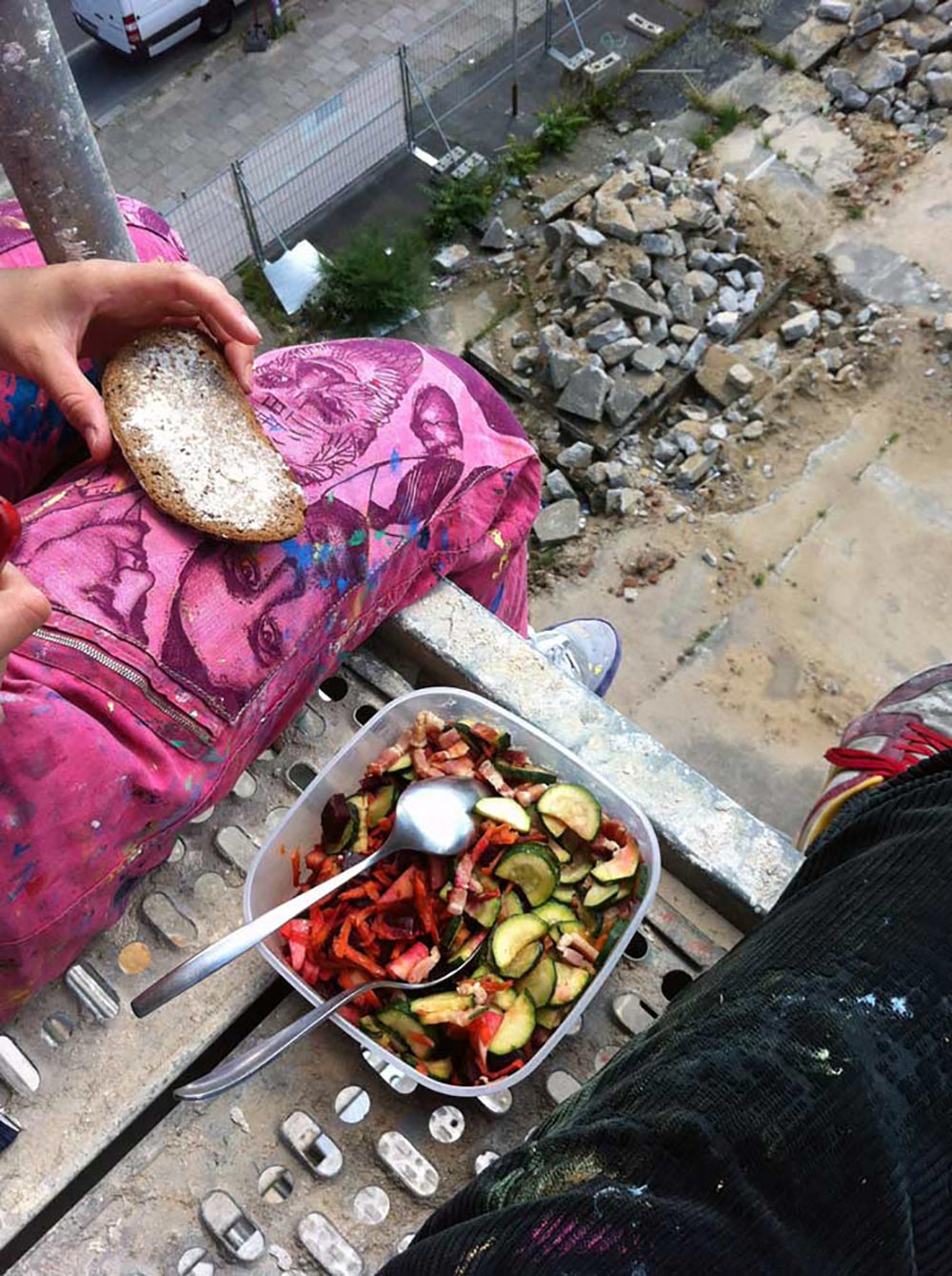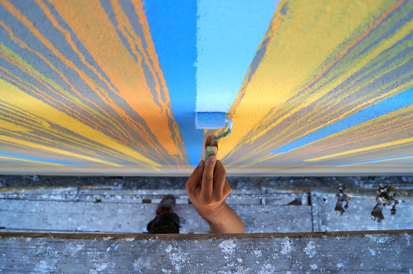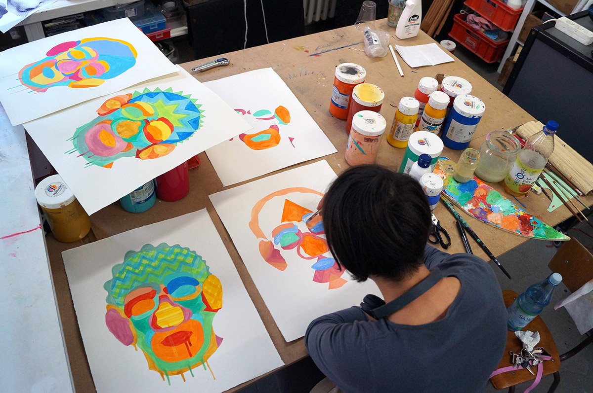 Berlin artist duo Various & Gould have taken their love of screen-printing to new heights with “Facetime,” a colorful mural that spans a 350 square meter façade on the border of Mitte and Kreuzberg. Their first attempt at a wall painting, the project from their 2015 series under the same name; a collection of collaged facial features, the unorthodox “portraits” are intended to question commonly perceived symbols of gender and beauty. Although each character is “fictional and [bears] no name,” they “appear more realistic and authentic than many of the glossy beauty faces represented in the daily news.” This large-scale, colorful expression poses a positive challenge to conventional media representations of the human form. Various & Gould have released a screen-print edition based on their mural, available exclusively at Urbanshit Gallery. See the mural for yourself in the video above shot by drone.