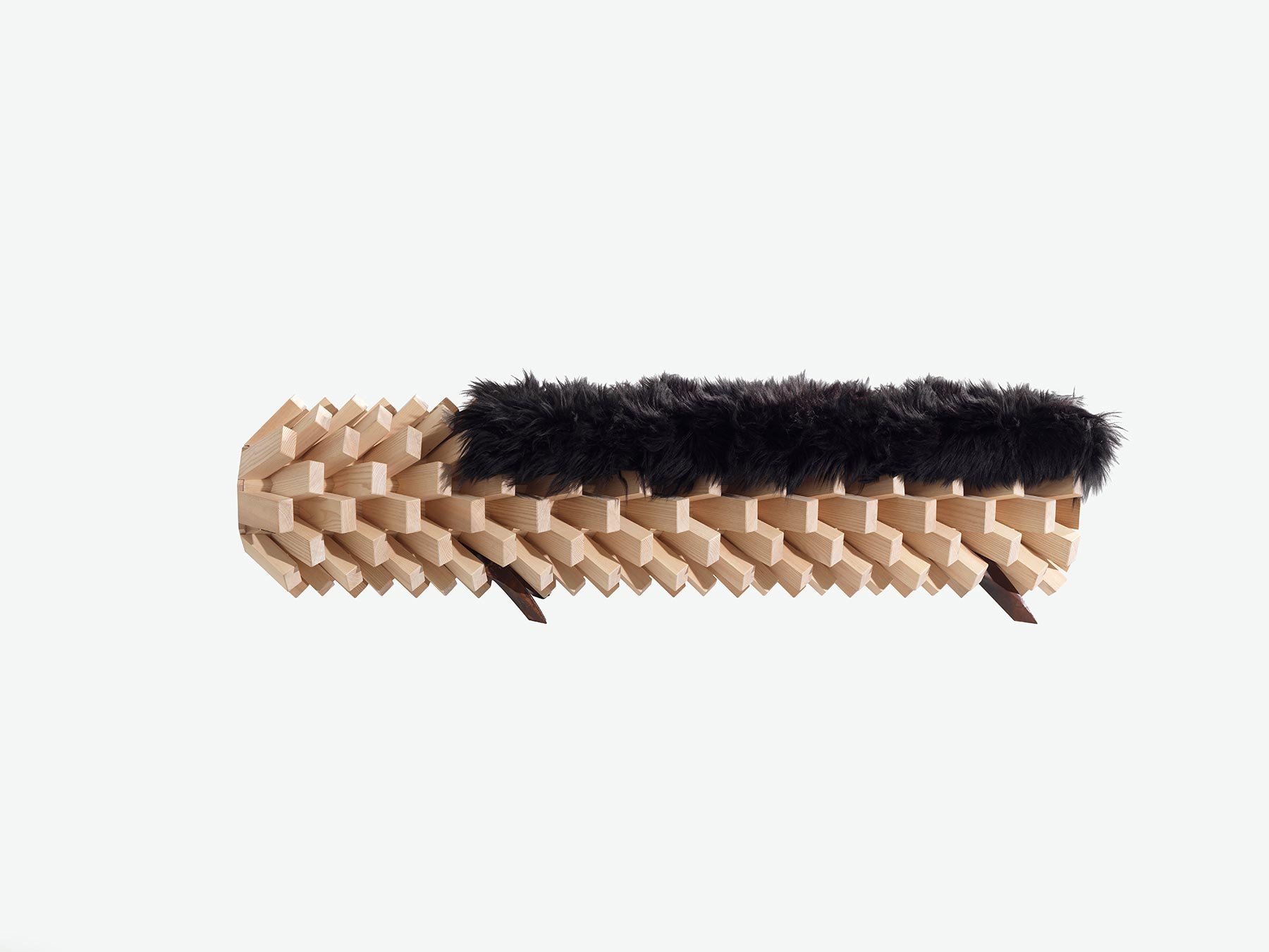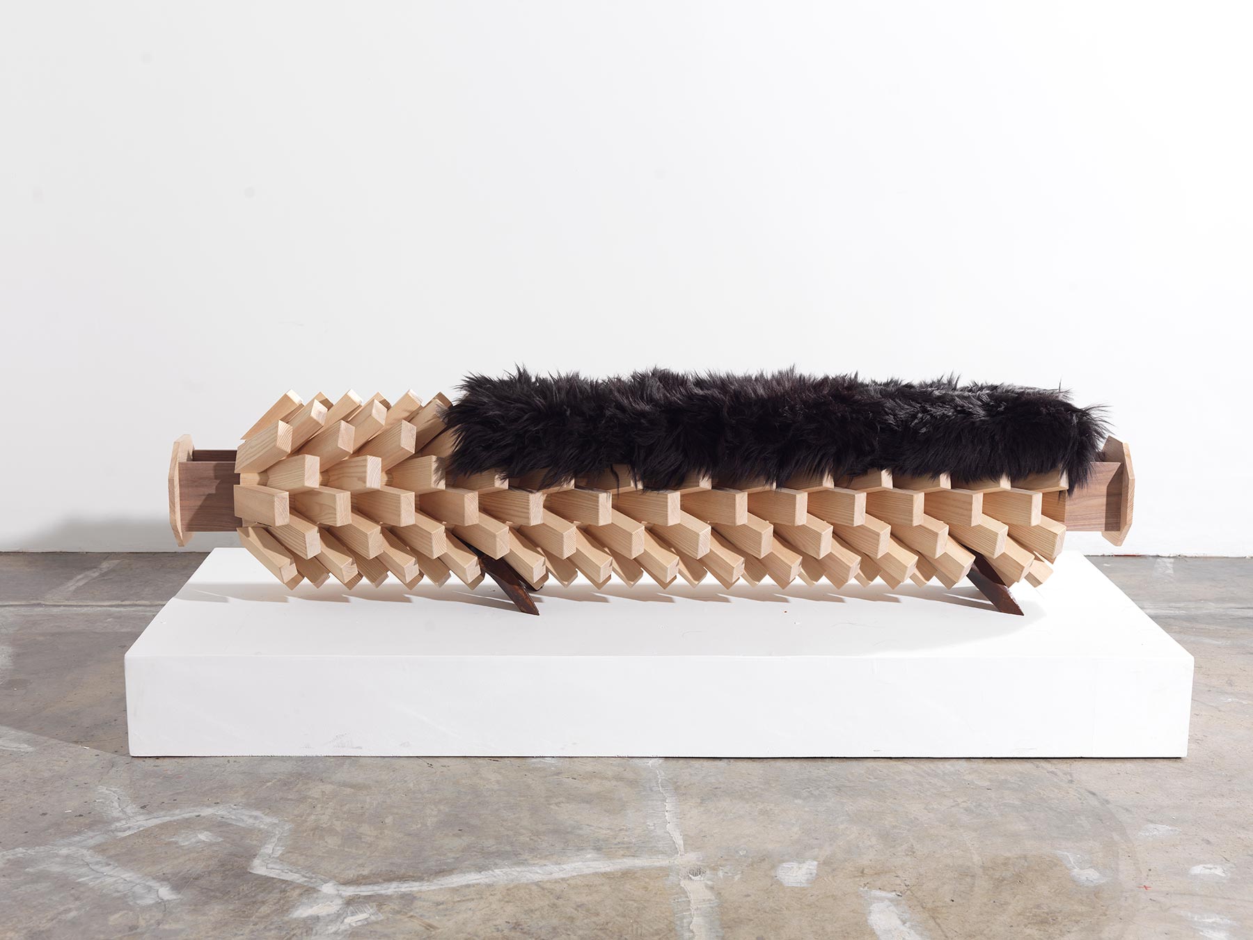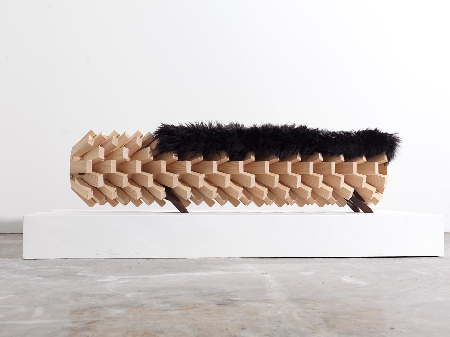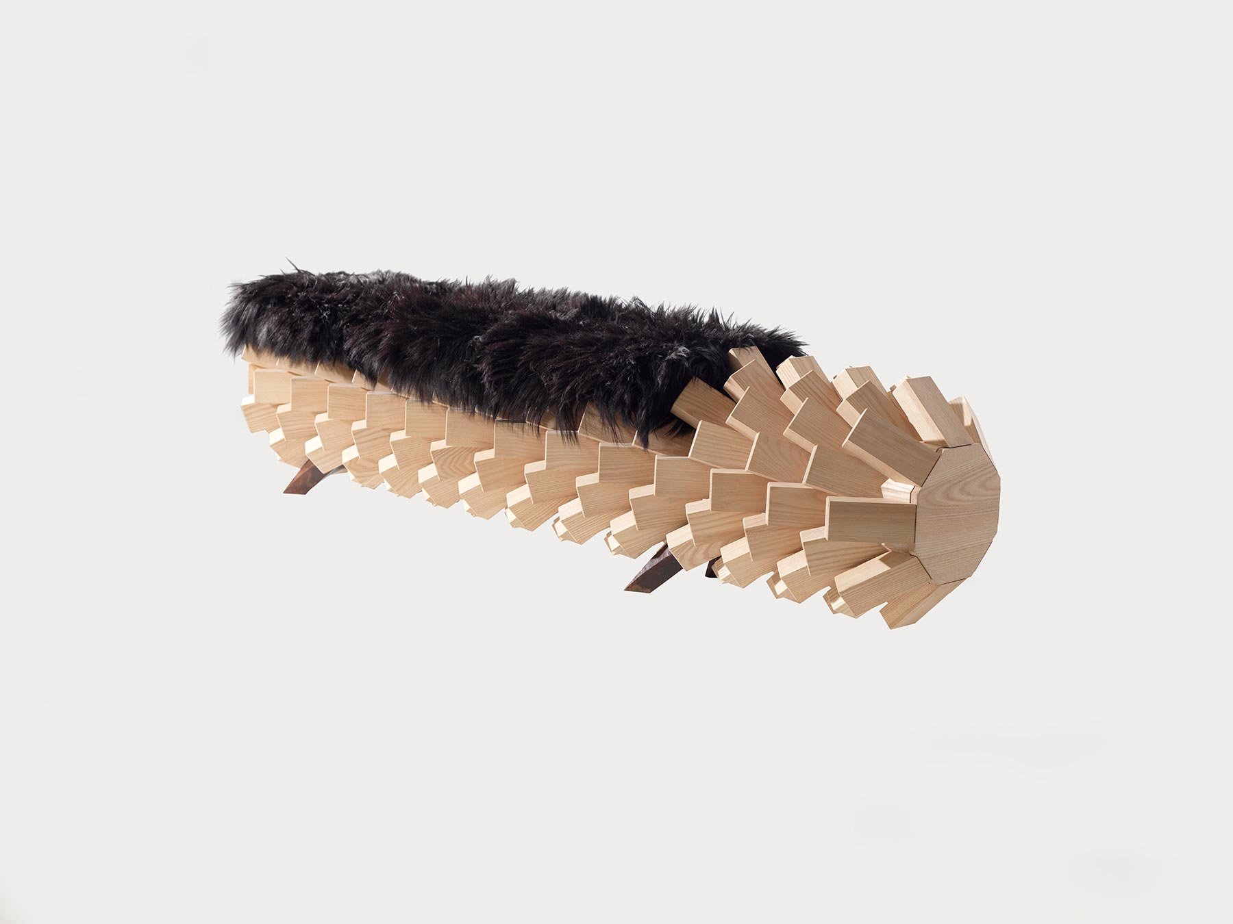 A prototype by the Emirati designed Khalid Shafar, the Fallen Balm Bench has a seat edged like the trunk of a palm tree. The body is crafted from ash and walnut wood, while the legs are made of metal. Since the jagged shape is obviously not so comfortable to sit on by itself, the design is upholstered with local goat’s hair in a black, feathery cushion. More than an interesting sight, the bench is also a practical storage unit with slide-out drawers at either end. The boundary-pushing design is part of part of Fast Forward, an exhibition of Emirati art and design. The show will be open to the public at UCLA’s Fowler Museum from January 25 – March 8, 2015.