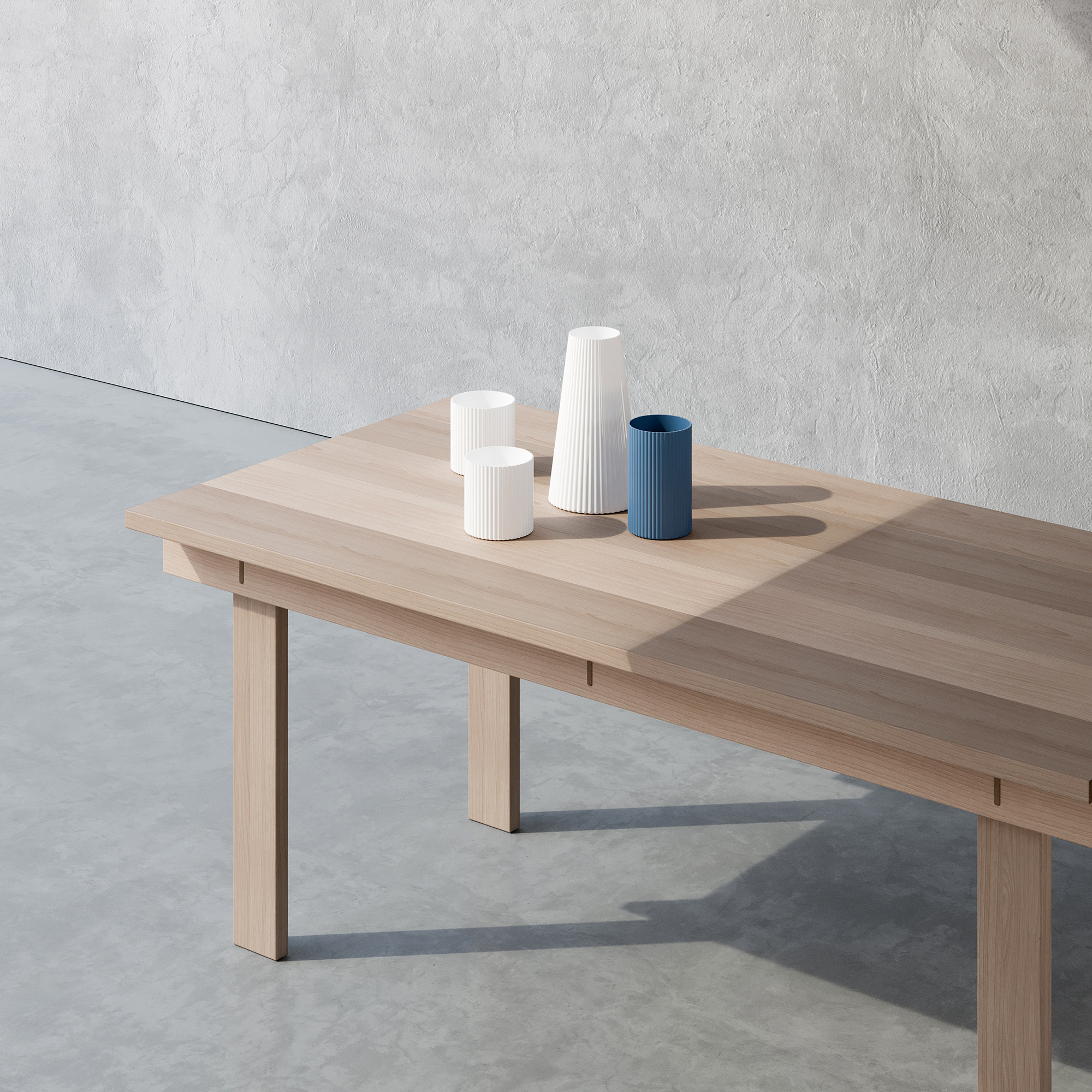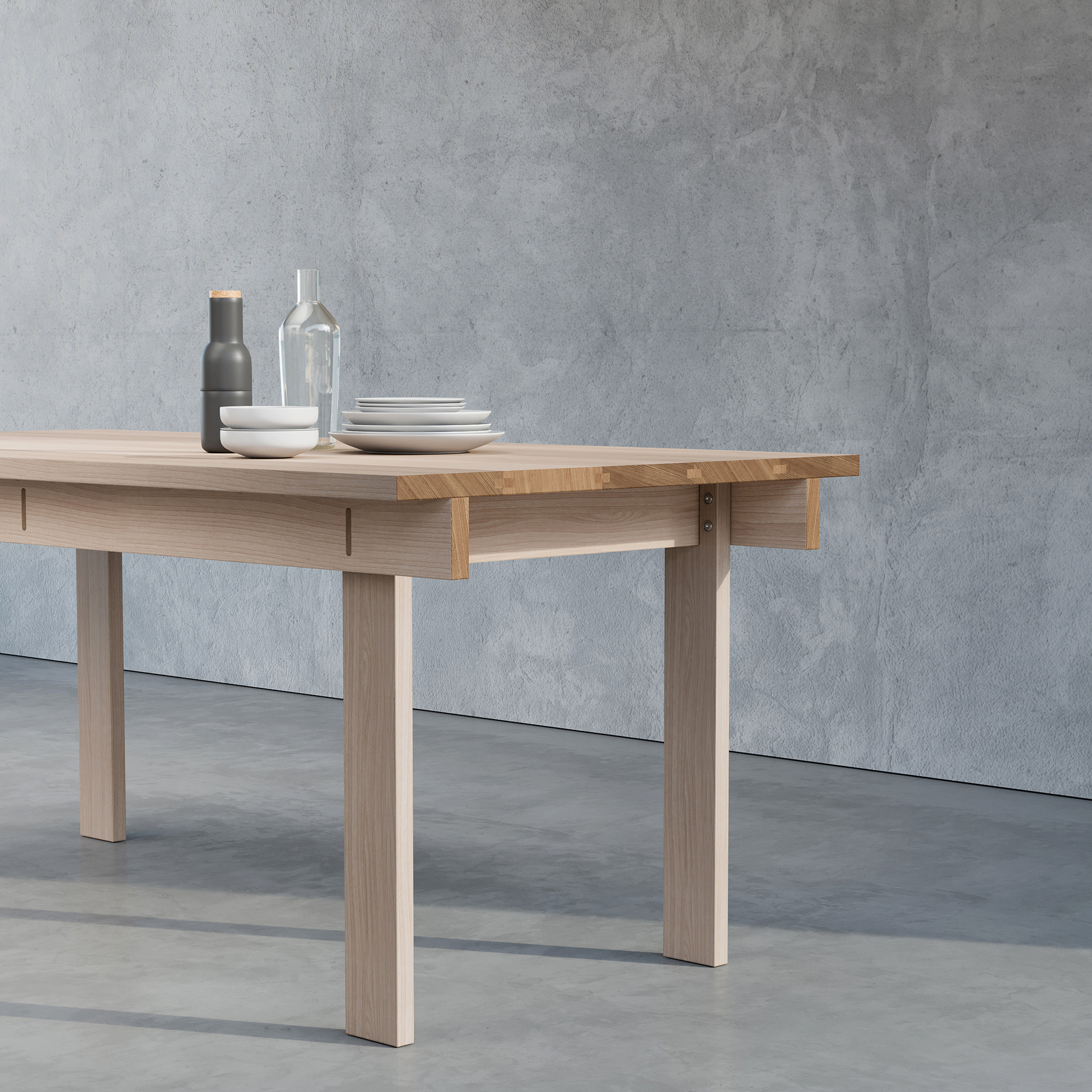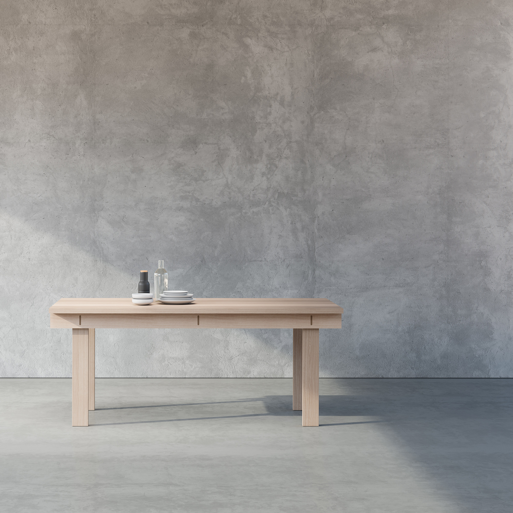 A minimalist table design created to fit well into a wide range of settings.
