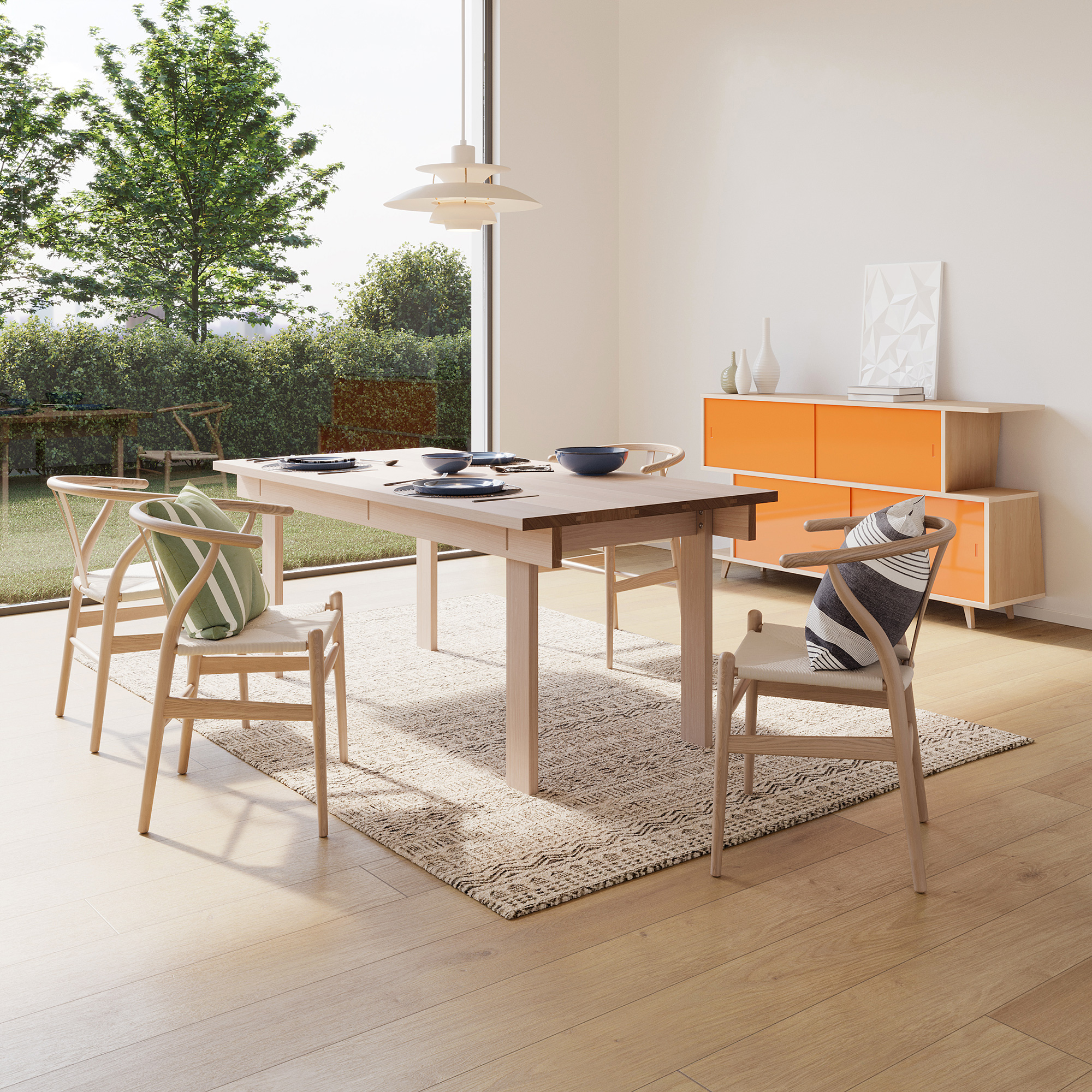 Made from solid ash or oak, the ROXO table is crafted to last, whether in a busy family home or in an office. Eight screws connect the table top to the legs, which means that the design allows easy assembly as well as easy disassembly. The ROXO table occupies minimal space either in storage or during transportation to another apartment or work space. Available in three sizes, the table comes in solid oak or ash with a matte clear lacquer finish. However, customers can also order the product with a natural oiled finish, available upon request. The design suits family dining rooms and kitchens as well as work spaces at home or in an office setting. The table comes flat packed for more convenience; it only takes a few moments to assemble with the included screws and hex key. Photographs© FEIT Design.