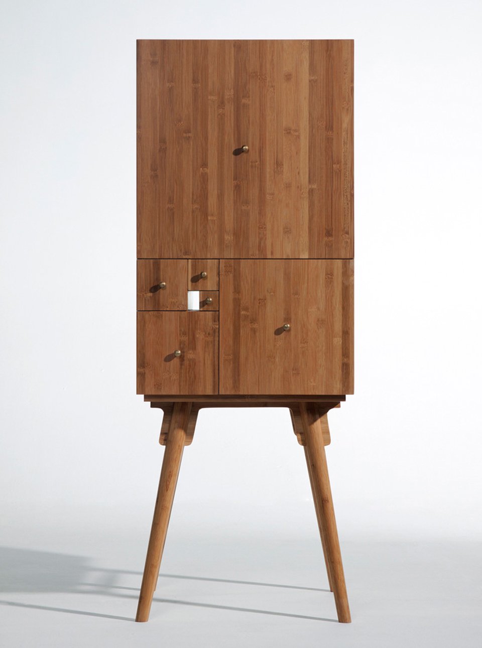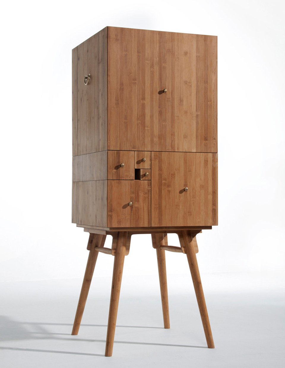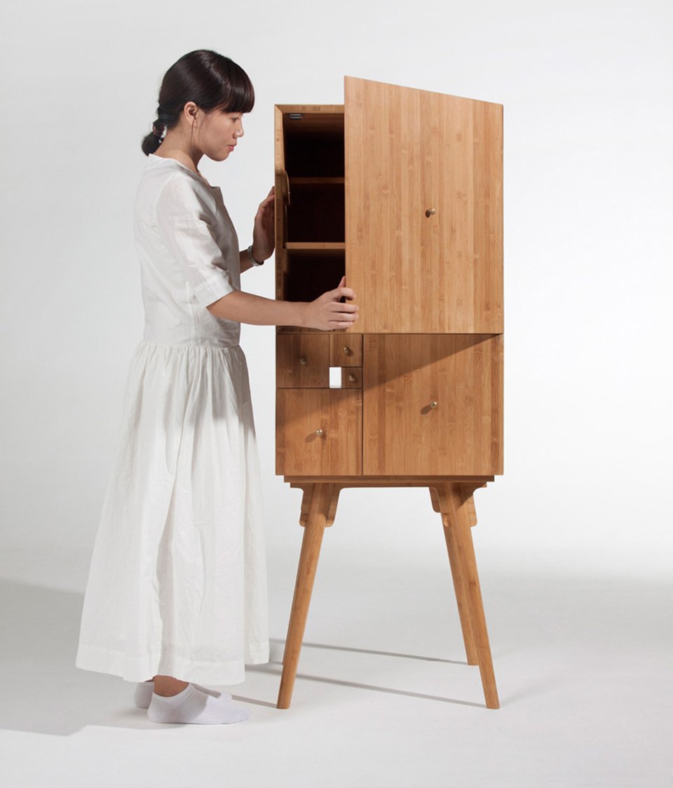 Delicate little compartments featured in the Fibonacci Cabinet re-imagine the traditional Chinese medicine cabinet. By standing on the “golden section” or the fibonacci sequence the greater work breaks down into seven smaller items. It’s like a modular, every piece can be arranged according to need. The platform can be used as a table or to hold the drawers for a customized storage display. This beautiful furnishing is made of bamboo by Utopia Architecture & Design.