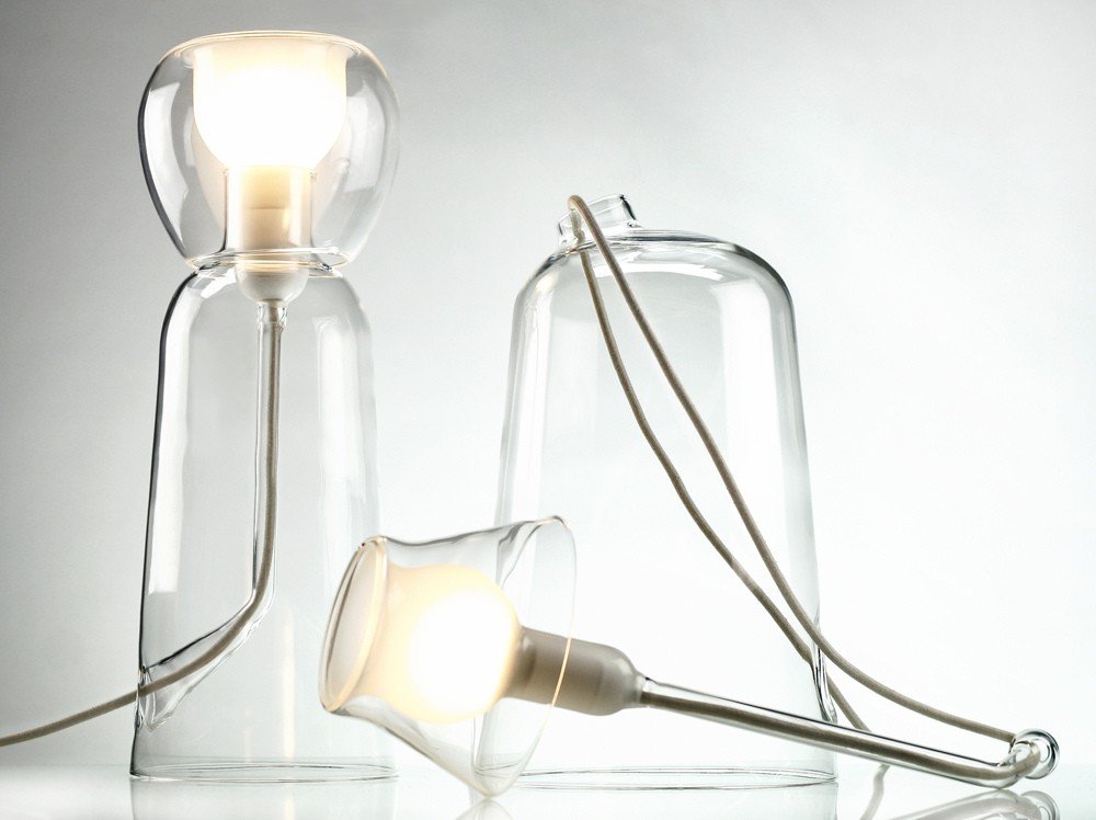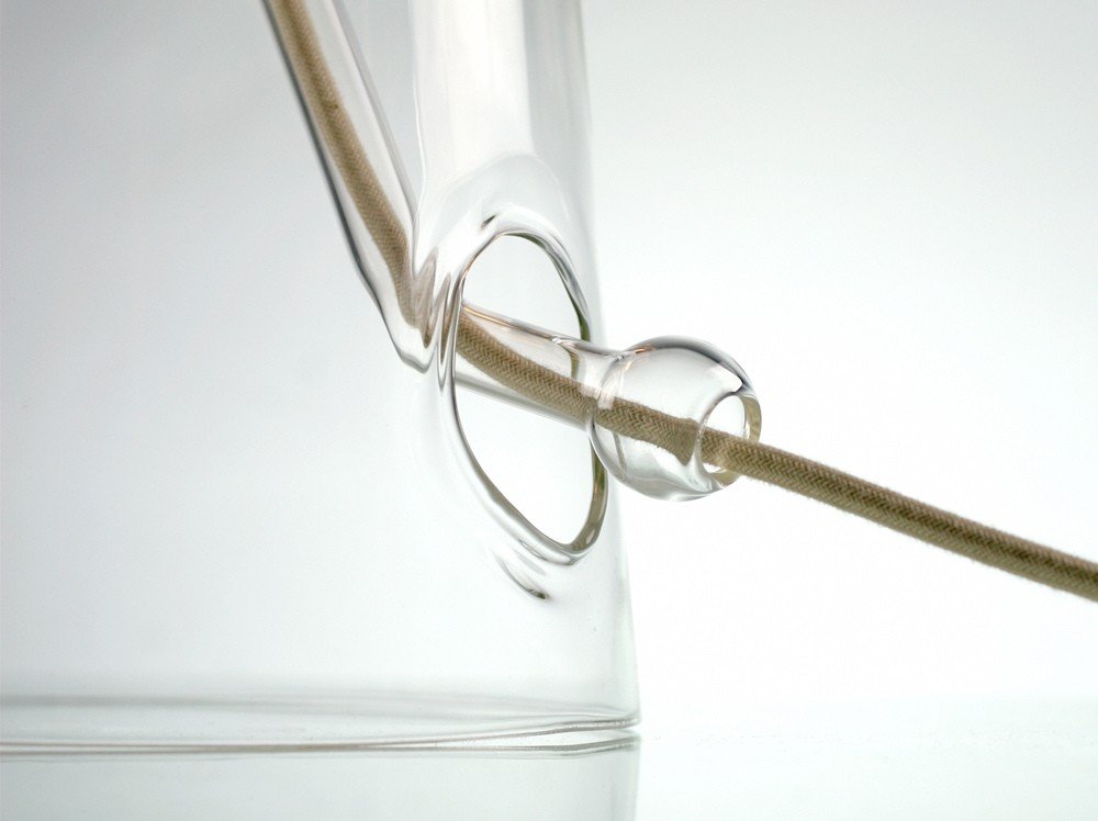 Laurent Corio’s collection of lamps designed for the Italian gallery Secondome is entitled Fioriness with good reason. The name Fioriness nods to the word for “flower” in French (fleur) and Italian (fiori), and the form of the lamps derives from the elegant relationship between a flower and its vase. The glass is hand-blown with remarkable precision: an extremely delicate channel for the electrical cord descends through the body of the lamp, recalling a stem in a vase. The bulb is encased in its own hand-blown glass volume, emitting a soft, warm, even light, inspired by the atmosphere of a candle-lit dinner or a prolonged summer twilight.
