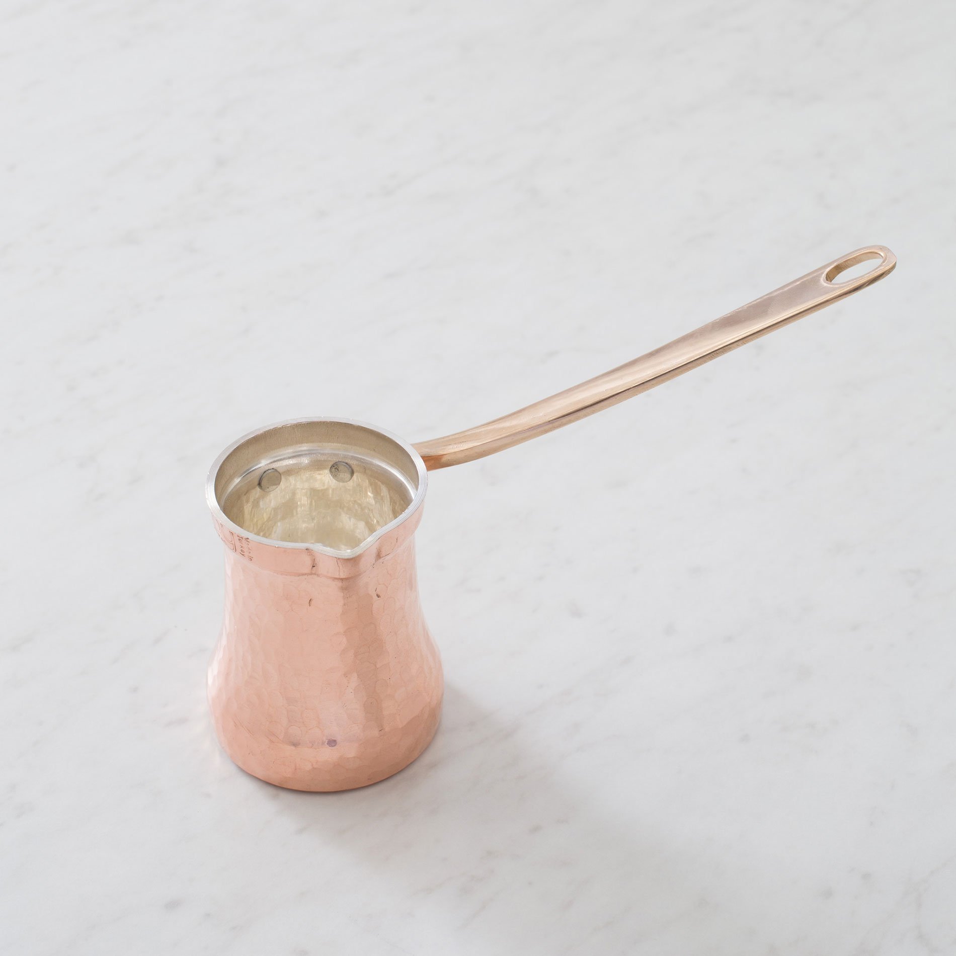 The Copper Turkish Coffee Pot is fashioned from 1.5mm-thick copper and lined with silver, and the handle is solid bronze. Pleasantly weighty and stable, the durable design commands attention while doing its job well. The result? Creamy, full-bodied Turkish coffee for two. In addition to making a great morning perk, the design can be used for heating semi-solids and liquids throughout the day. Kimball uses the design to melt butter and warm maple syrup. Sounds like a perfect match for Sunday pancakes. ($67)