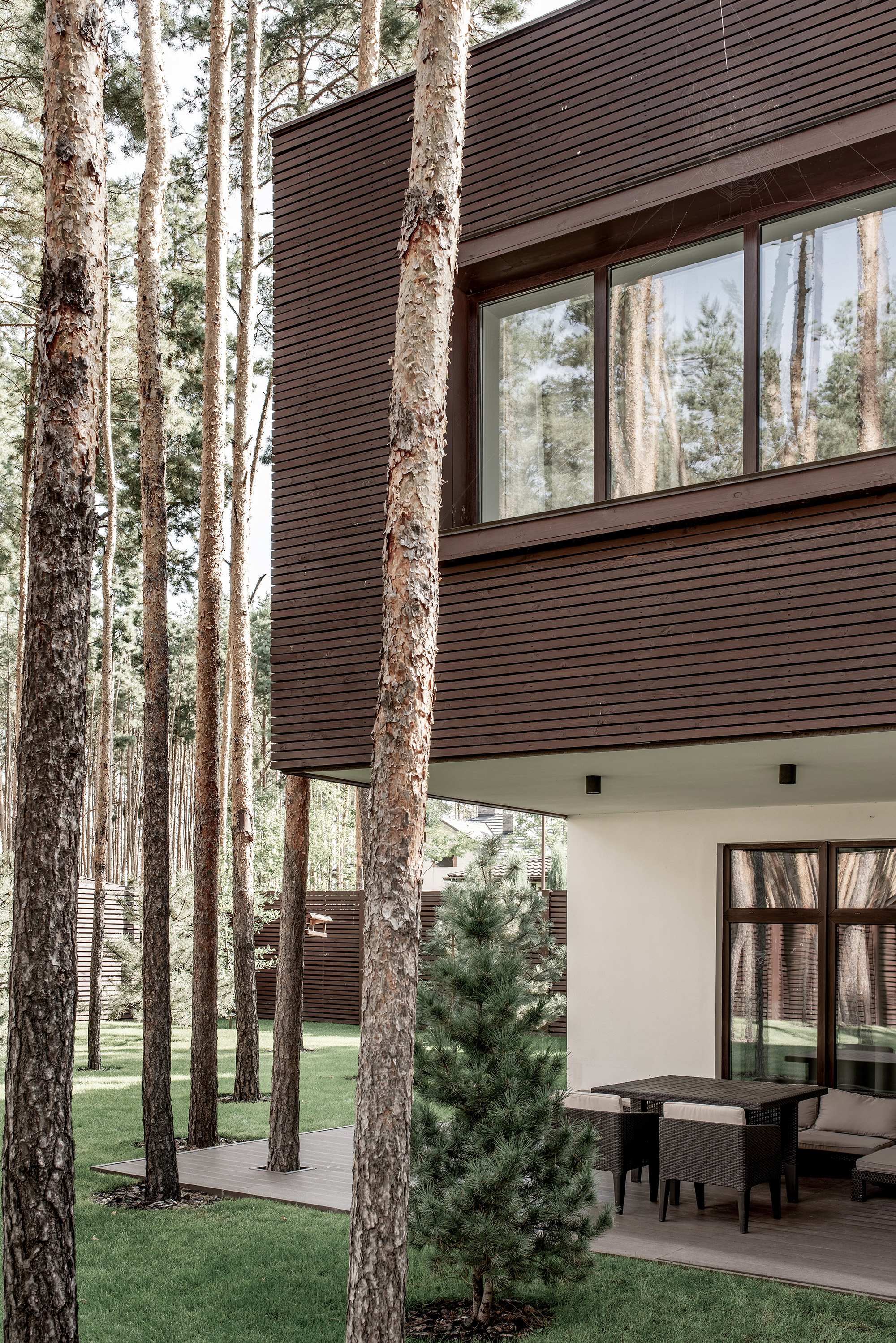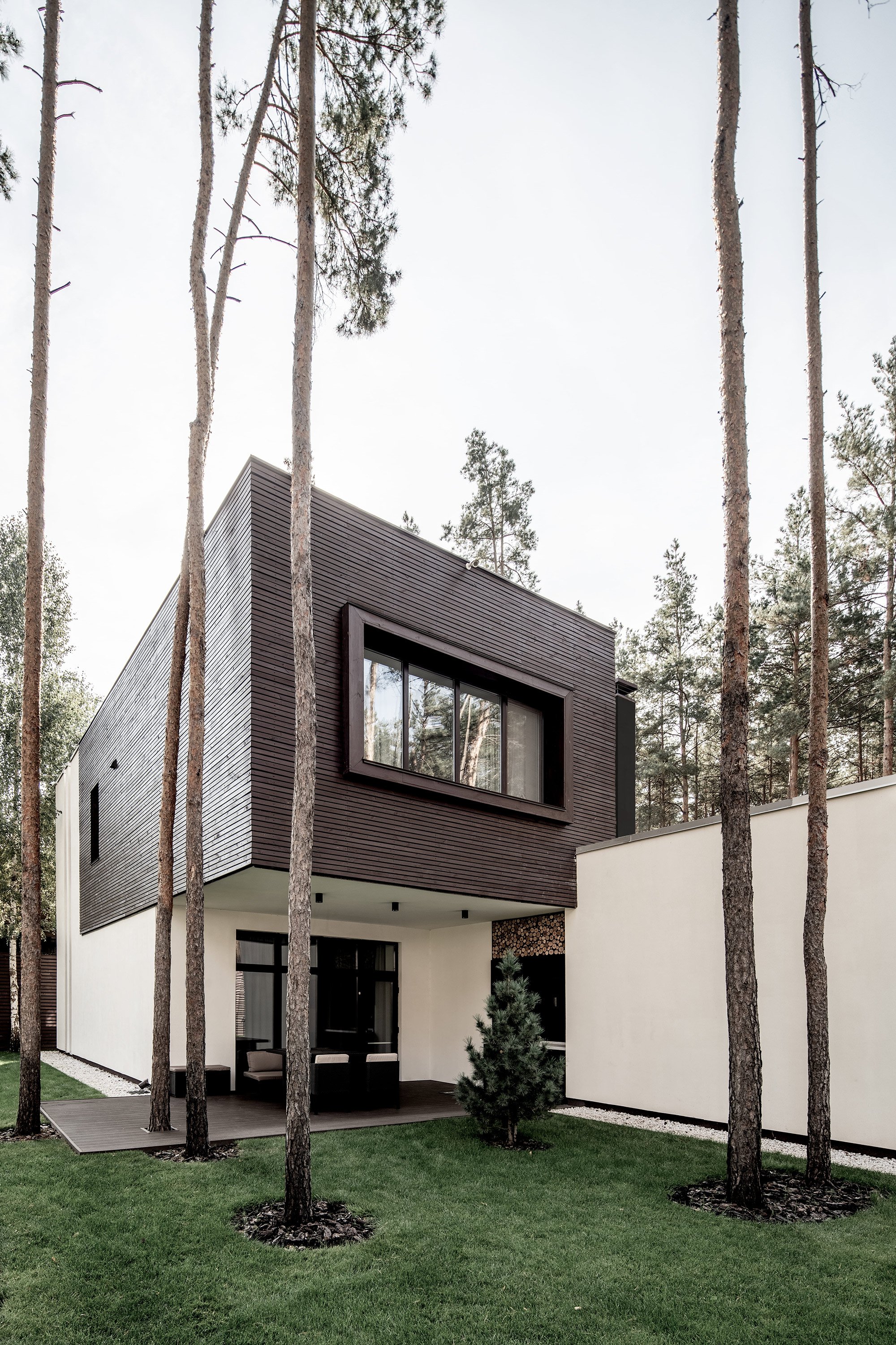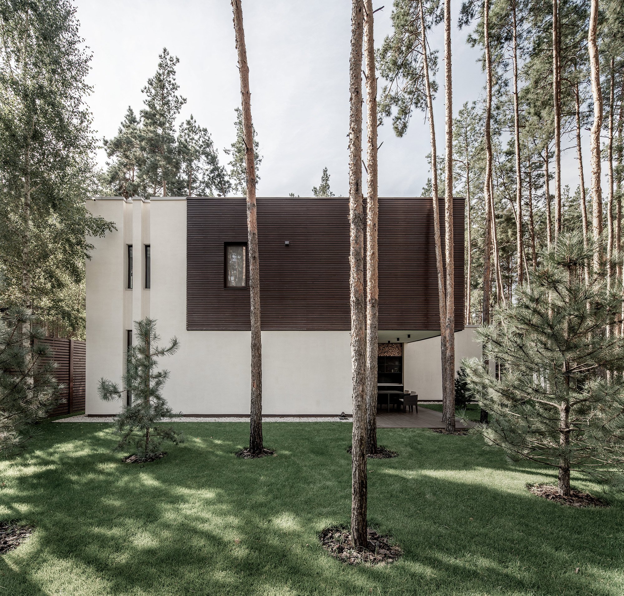 Nestled in a pine forest near Kiev, Ukraine, Forest House is a contemporary dwelling that pays homage to nature while exploring the “living minimalism” concept. Yakusha Design Studio’s founder Viktoria Yakusha designed the family house as a weekend and holiday retreat that could also serve as a permanent home, if needed. The structure occupies a compact plot of land in the middle of the forest. Carefully chosen, the site ensures that the building has zero impact on the landscape and preserves the existing trees.