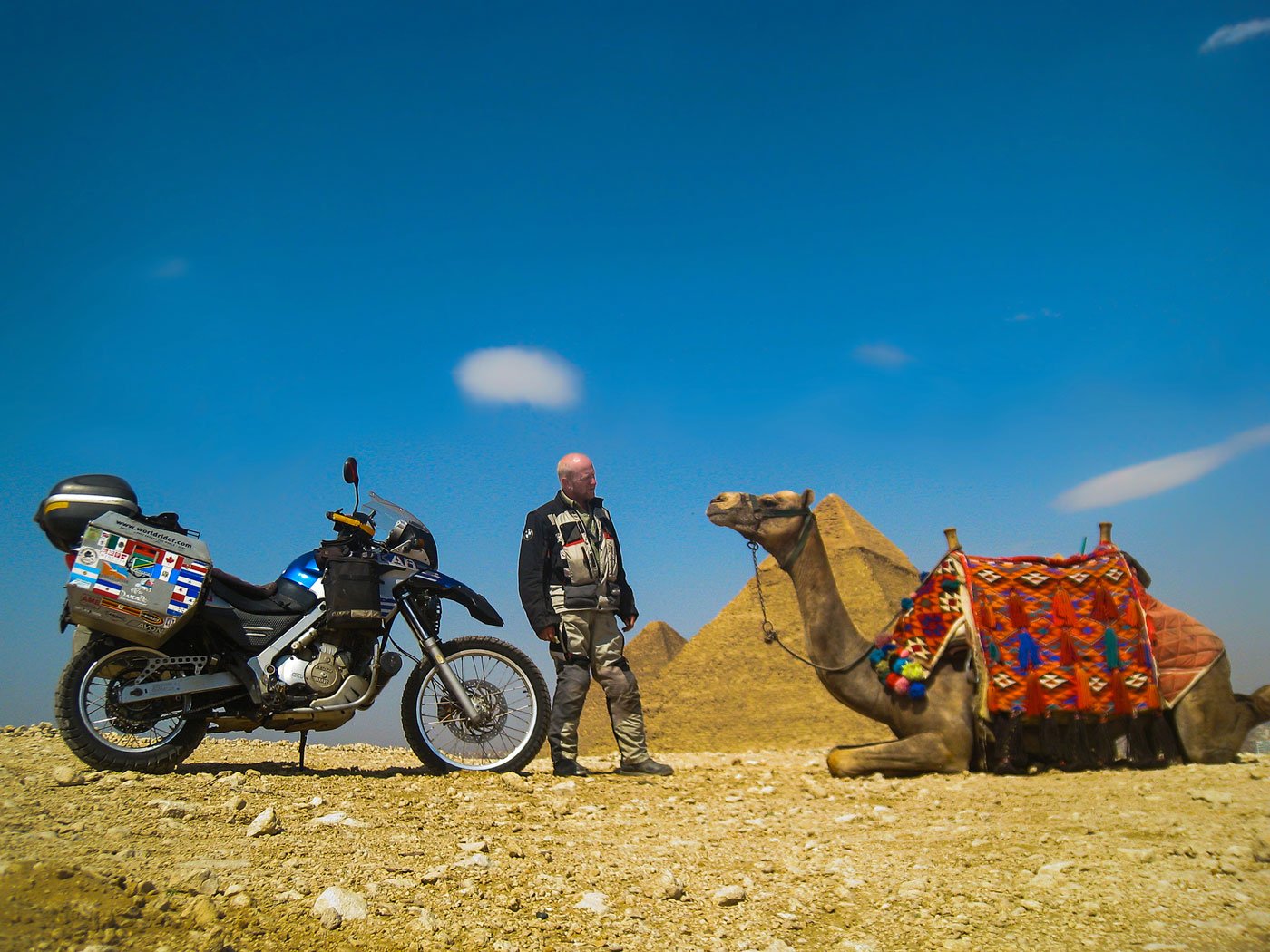 Many struggles pepper his journey. He camps out at customs for days to enter Syria and Sudan and is barred from visiting Iran. He breaks his leg in Bolivia and is held at gunpoint in Columbia. He is pick-pocketed in Buenos Aires and finds $2000 worth of damage and theft to his motorcycle when he returns to the USA. That final offense stings the worst, and Karl expresses his shock, saying, “Here, in my own country, I’m violated. This is not the homecoming I expected.”