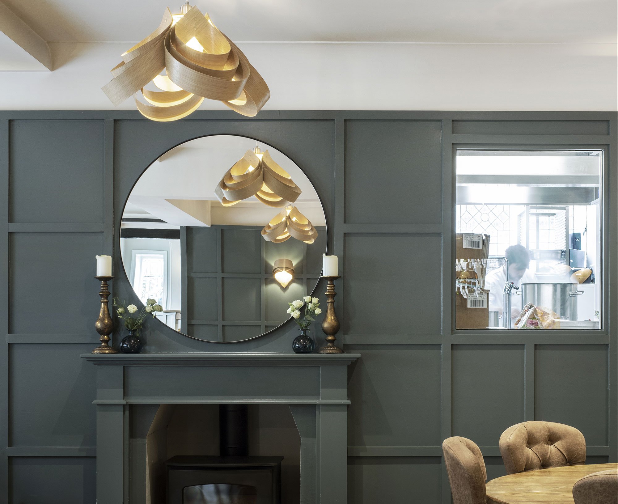 The restaurant also features a commercial kitchen, a wood-fired pizza oven, and outdoor terraces. Five high-end bedrooms provide comfortable sleeping spaces for overnight stays. A huge success, the project has not only re-established The Fox as Crawley’s vibrant center, but it has also made a positive impact on the village’s economy. Photographs©: Richard Chivers.