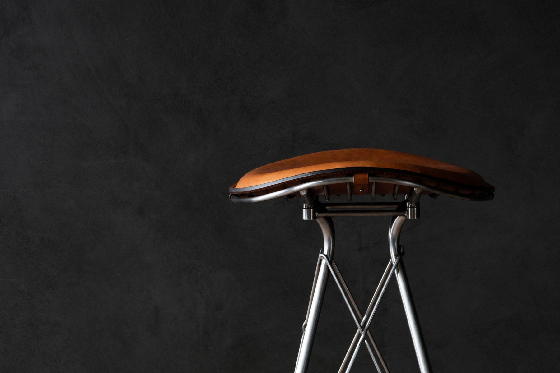 Sleek but not overly modern, the seat draws inspiration from traditional saddles. The upholstery comes in Yellowstone or Elegance by Sorensen Leather. Yellowstone is a vegetable-tanned aniline leather finished with wax, while Elegance is a pure aniline leather first tanned with chrome and then introduced to the vegetable process. Each variety is premium-quality and comes in three distinct shades of brown or black. Underneath the tooling leather, the seat is padded with foam and a soft aniline leather, all sewn together to balance stiffness and comfort.