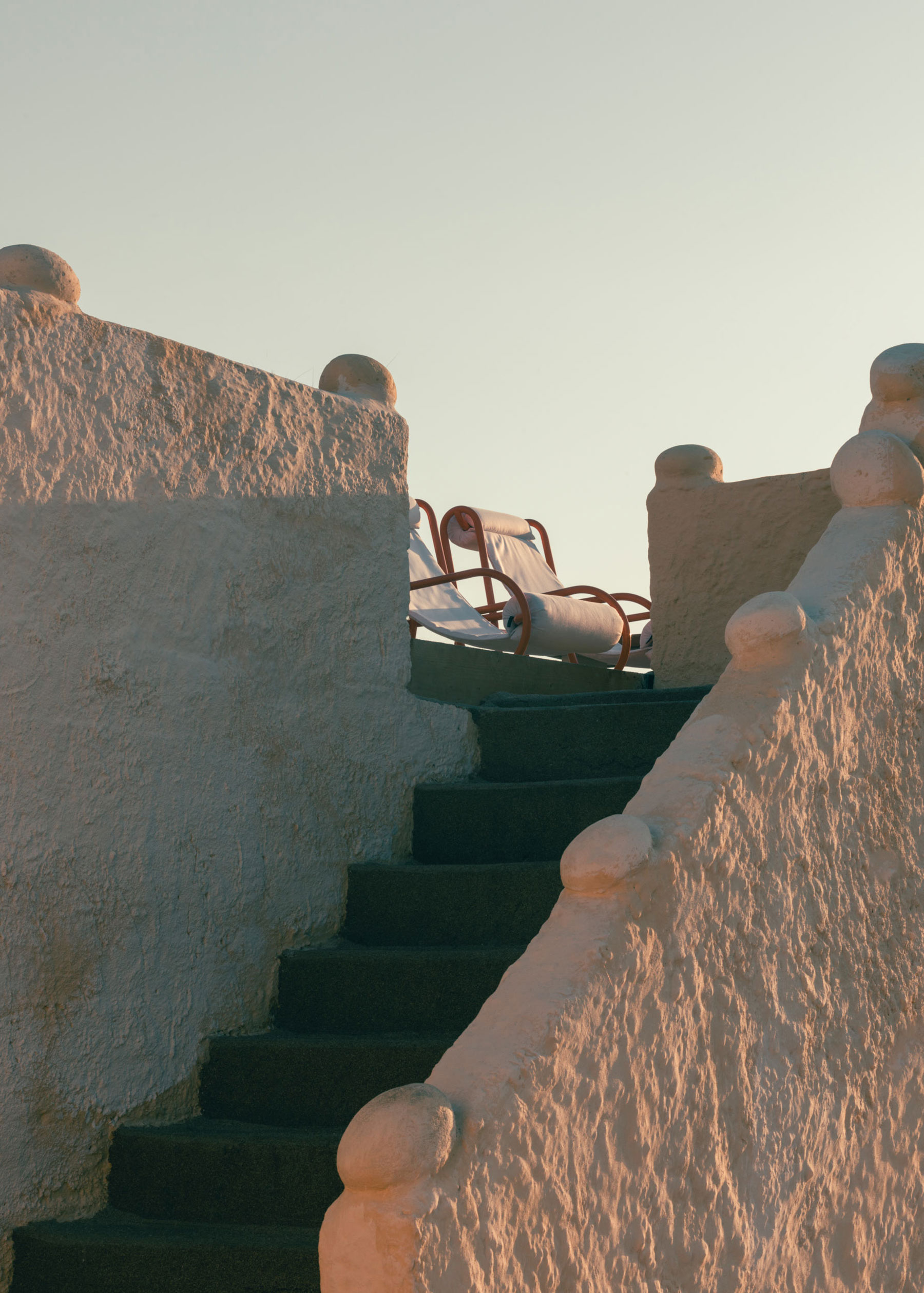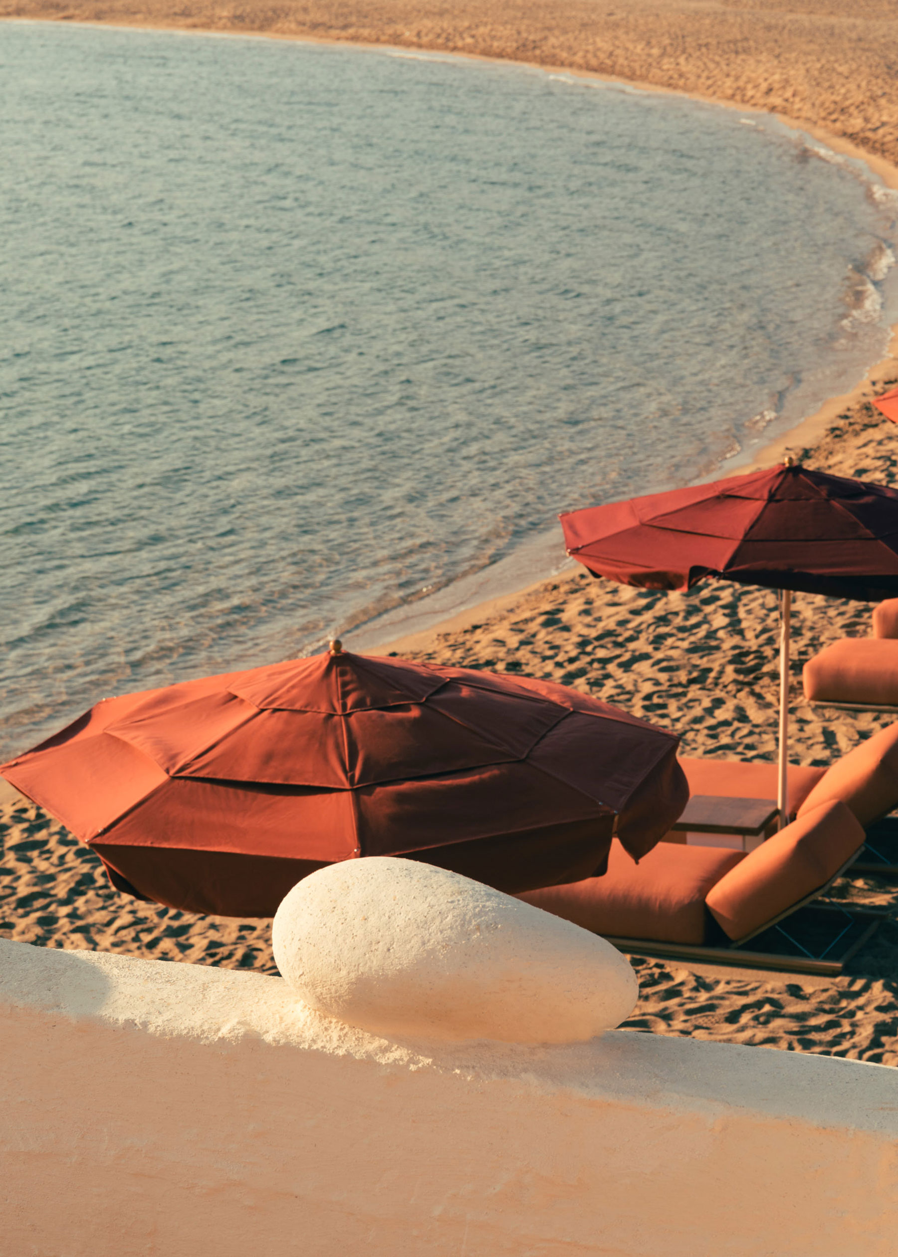 Ultimately, the Ftelia Beach Club is an architecture and design gem. To create the beach club’s distinctive identity, the architect skillfully paired elements of traditional Mediterranean architecture with modernist design cues and pops of color while allowing the surrounding nature to become a central part of the design. Photography © Romain Laprade.
