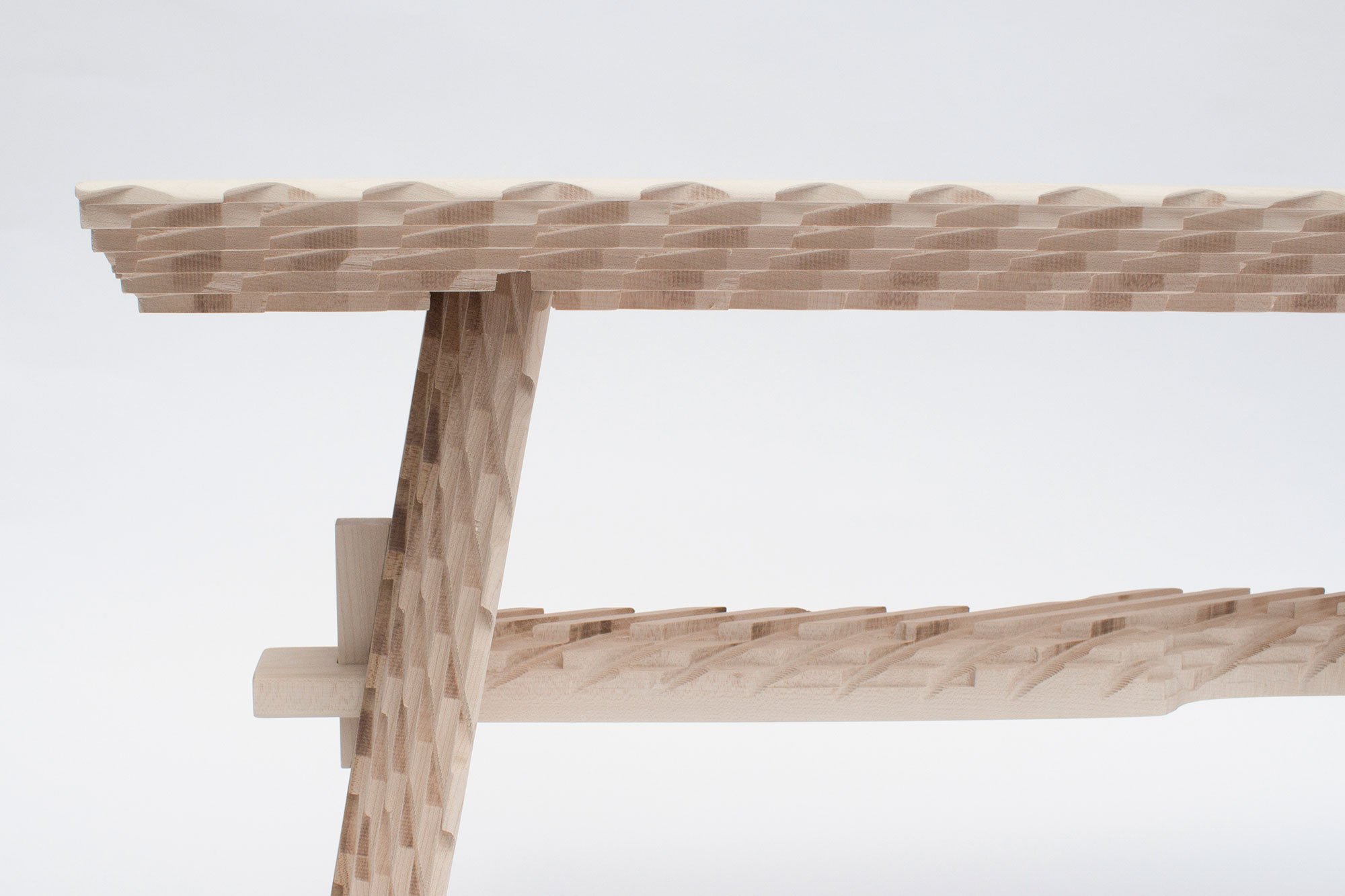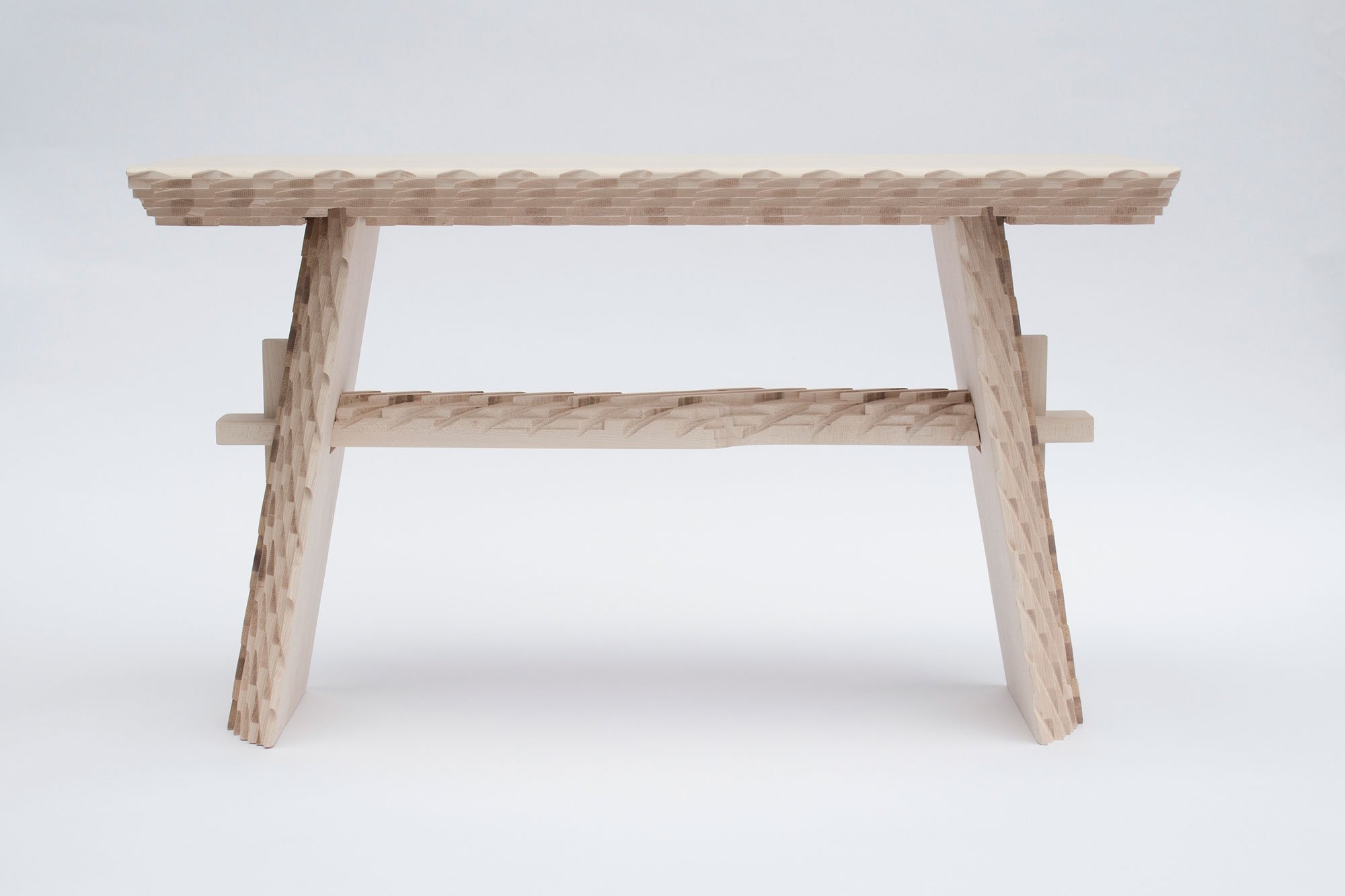 Mark Laban’s designs include simple oak and maple benches, with or without backrests. They boast deep, precise markings which, apart from bringing traditional processes to mind, also create a powerful contrast with the surface of the solid wood. One design, the Temple Bench, stands out among the rest as it features subtle curves and a smooth surface. We’re looking forward to seeing this technique used in other creative ways by designers, young and old. Photo credits: Mark Laban.