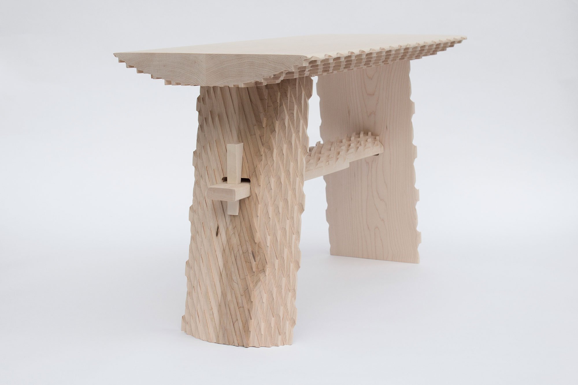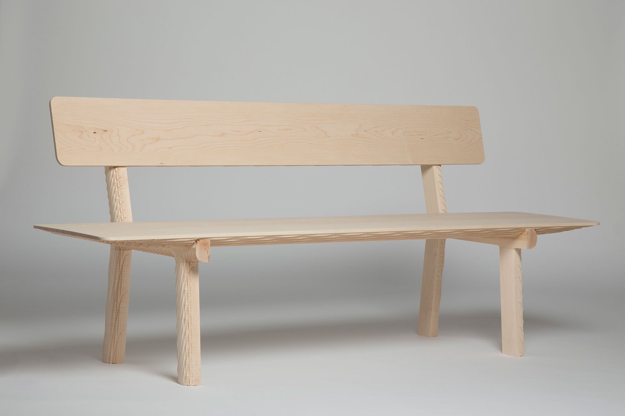 British designer Mark Laban ingeniously takes the concept of traditional craftsmanship and gives it a modern twist. His seating designs seem to show the marks of an artisanal tool, but these pieces of furniture are actually made using a CNC machine. Consequently, the furniture displays a fascinating play between handmade and automated digital processes; between man and machine. Organic and rustic as well as modern and intriguing, the benches provide a glimpse into the impressive range of design possibilities of the present and near future.