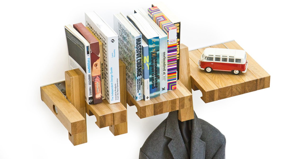 An Italian shelf made of solid oak, modifies into a sensible coat hook, bicycle rack, or book ends. Fusillo by Italian design Studio andViceVersa takes on the character of a butcher block splashing the space with charm though still hip enough to meet the needs of an urban loft. Fifteen wooden links turn around a center axis, their underside carved to provide a clever hook option. Make it a challenge to renovate your space: retrieve those books from the back of the closet, pull your coat off the doorknob, and make your entryway a piece of art, cool and collective.