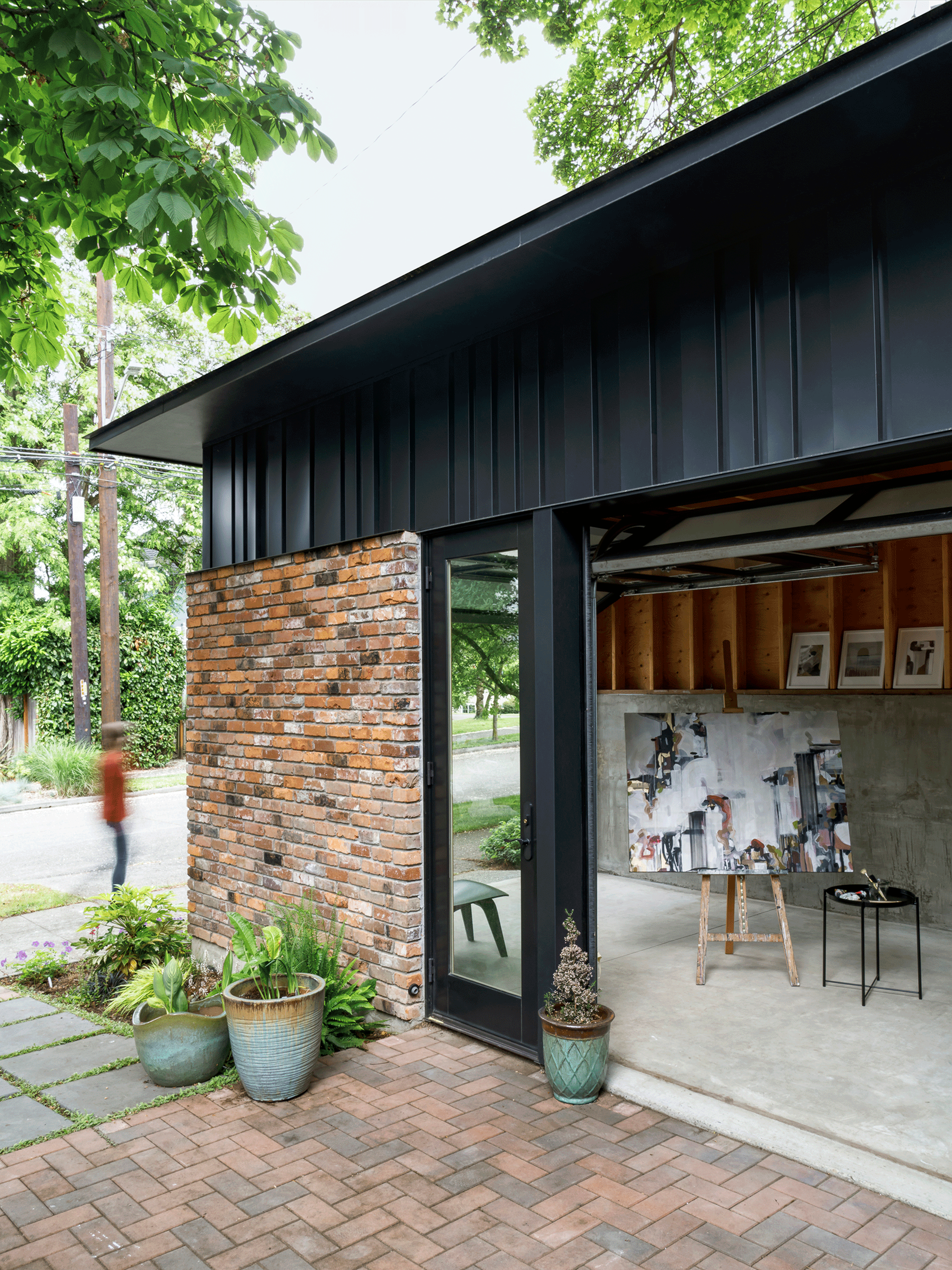 Located in the Leschi neighborhood in Seattle, this house previously had an adjacent, dilapidated garage on the western side of the property. Old and under used, the structure required a drastic makeover. The clients tasked local architecture and design firm GO’C to complete a garage conversion and to create a multi-functional space that also doubles as an art studio. The architects used the brick from a chimney previously removed from the house to construct a new volume on the footprint of the dilapidated structure. As a result, the addition has a strong connection to the main house, although it boasts a different material palette. The new wing houses the garage as well as an art studio and an entertaining space.