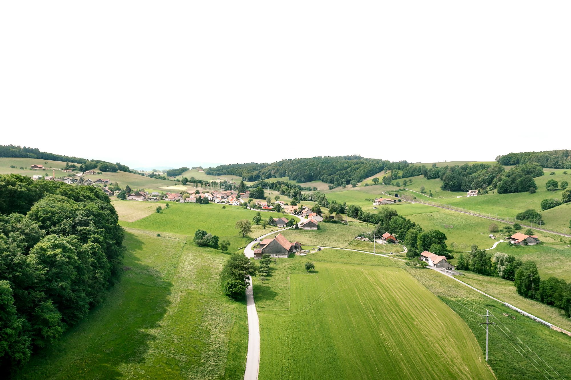 From above, Praz-Pury still looks like postcard country: a patchwork of pastures, hedgerows, and 1930s farmsteads aligned to the roll of the Fribourg hills. One of those barns now holds a surprise. Working for a young family who raise horses, Lausanne-based studio Bard-Yersin has tucked a 90-square-meter apartment into the farm’s disused rural wing without upsetting either daily chores or the long agrarian rhythm of the site. Their strategy is almost archaeological: keep every space doing the job it was born to do, and then insinuate domestic life where the plan itself already invites it. In the original typology, two stables flank a lofty central passage—the fourragère—used for feeding livestock and hoisting hay overhead. Bard-Yersin simply claimed that through-space for living, dining, and cooking; one of the old stalls now holds bedrooms and bath, while the second continues to shelter horses. The hayloft above? Still a hayloft.