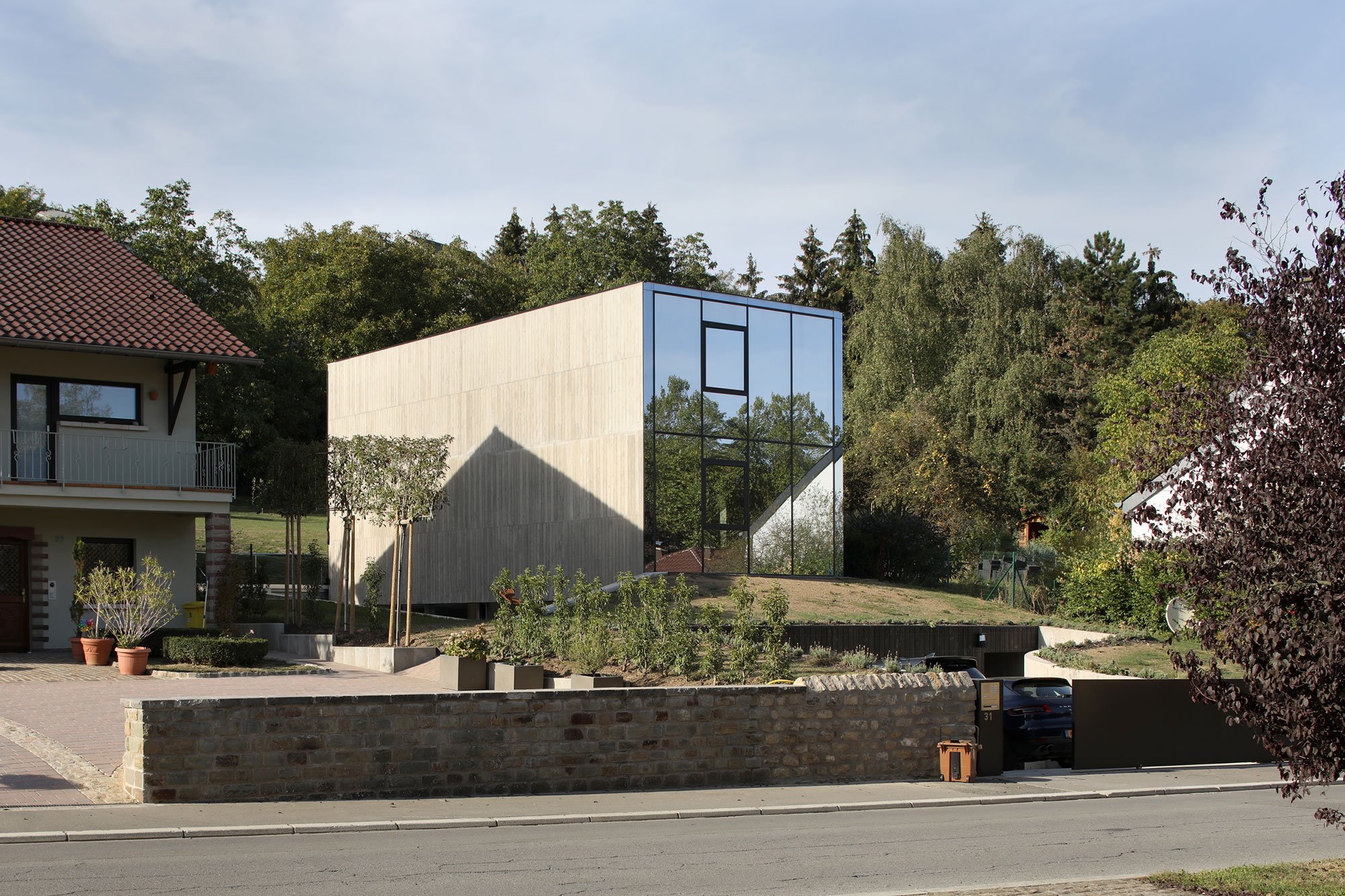 Located in Mondorf-les-Bains, in south-eastern Luxembourg, Hercule House demands attention with a bold, contemporary design. Luxembourg-based architectural practice 2001 carefully connected the house to its context. Even the house’s name references a local hero, John “Hercule” Gruen. Robust and powerful, the single-family dwelling rises from a steep plot of land, between an old farmhouse and a villa.