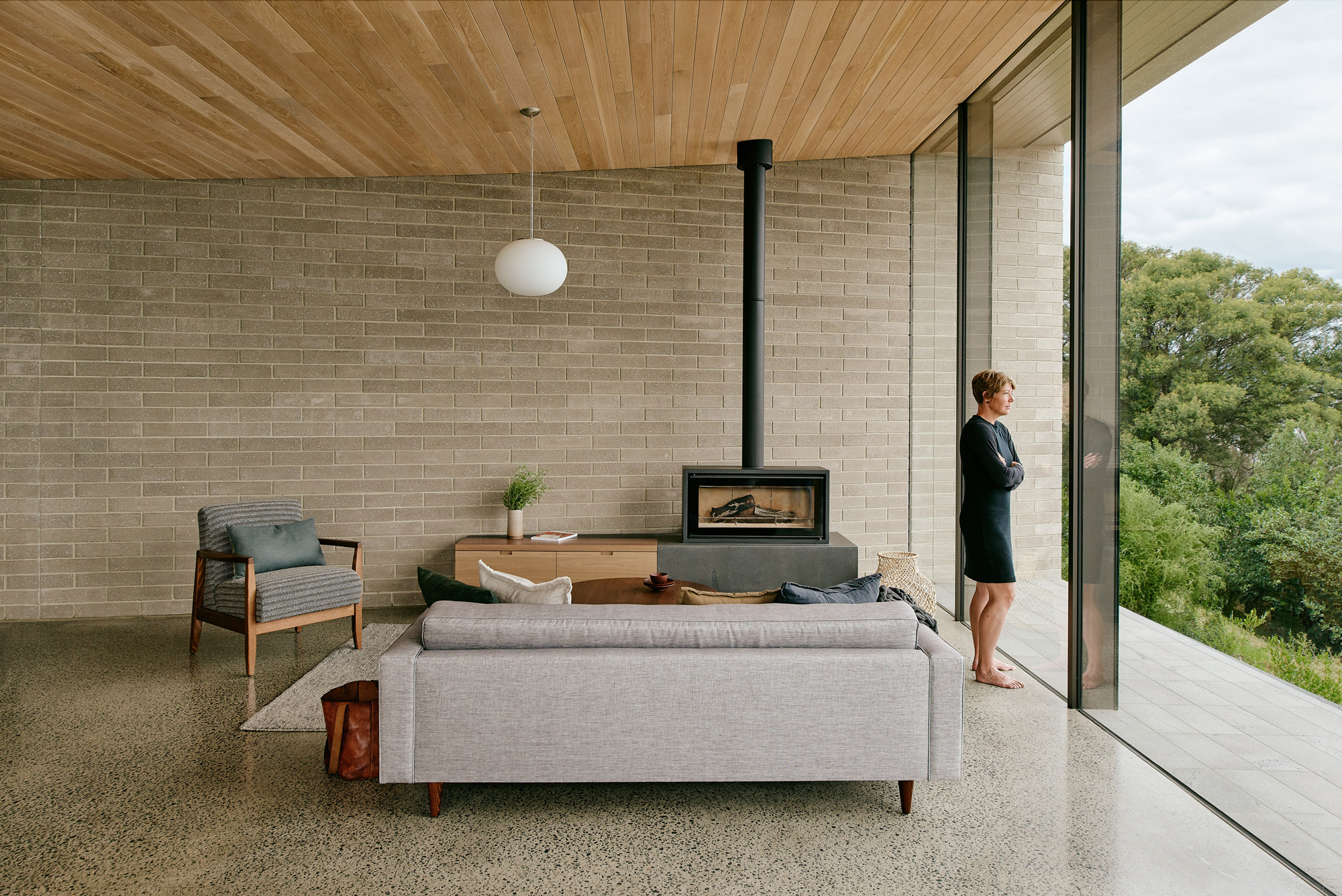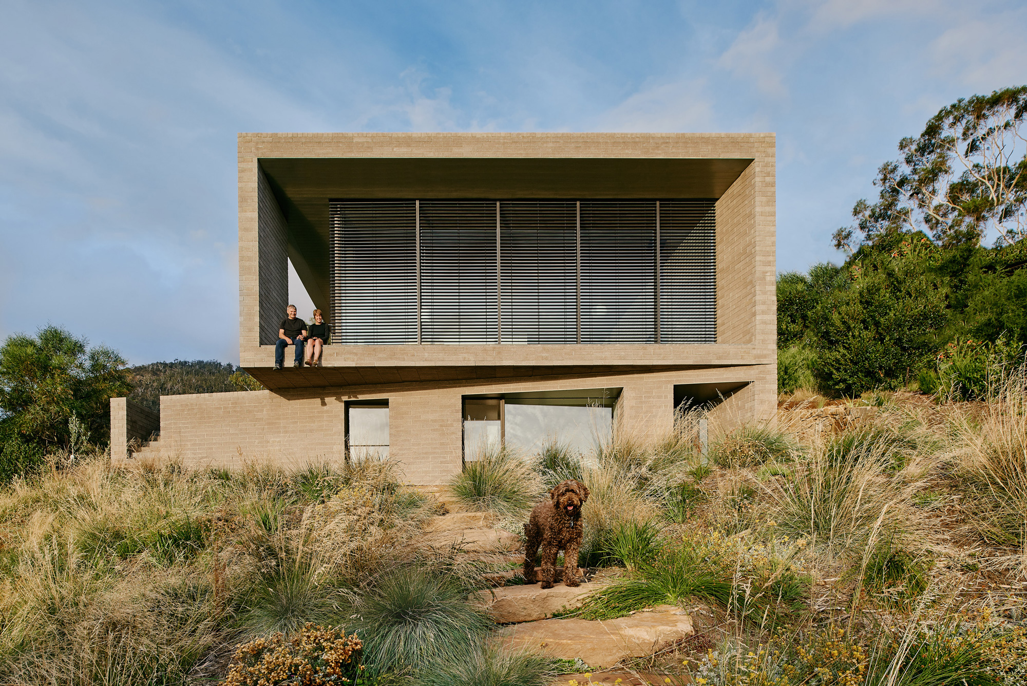 Built on a sloping site on a bend of the Derwent River in Hobart, Australia, House at Otago Bay immerses its residents in a beautiful natural landscape. Architecture firm Topology Studio nestled the building into its setting by partly embedding the structure into the terrain and by also using locally sourced masonry for the exterior walls. The living spaces open to the surrounding views while also providing privacy where needed. Glazing and elements like terraces and a courtyard welcome nature inside the house. A colonnade and pathways also blur the line between indoor and outdoor areas.