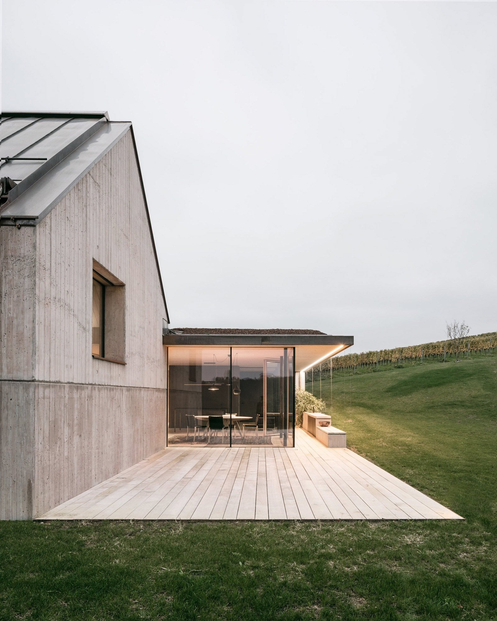 Admired from a distance while standing in the valley below, House T looks like a wooden rural structure built in a vineyard, featuring a gabled roof and a simple... Read full article »