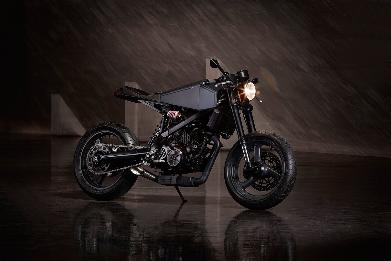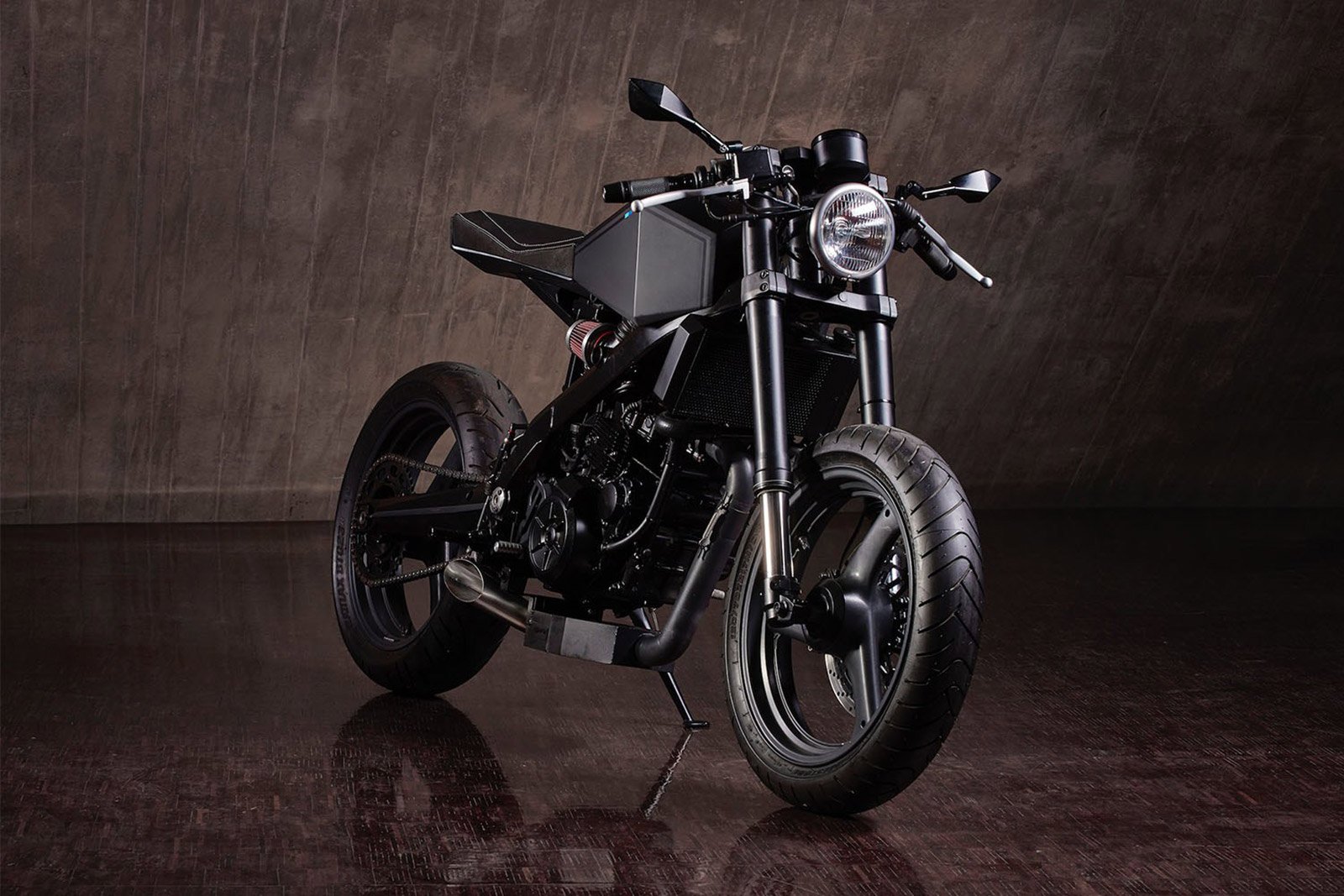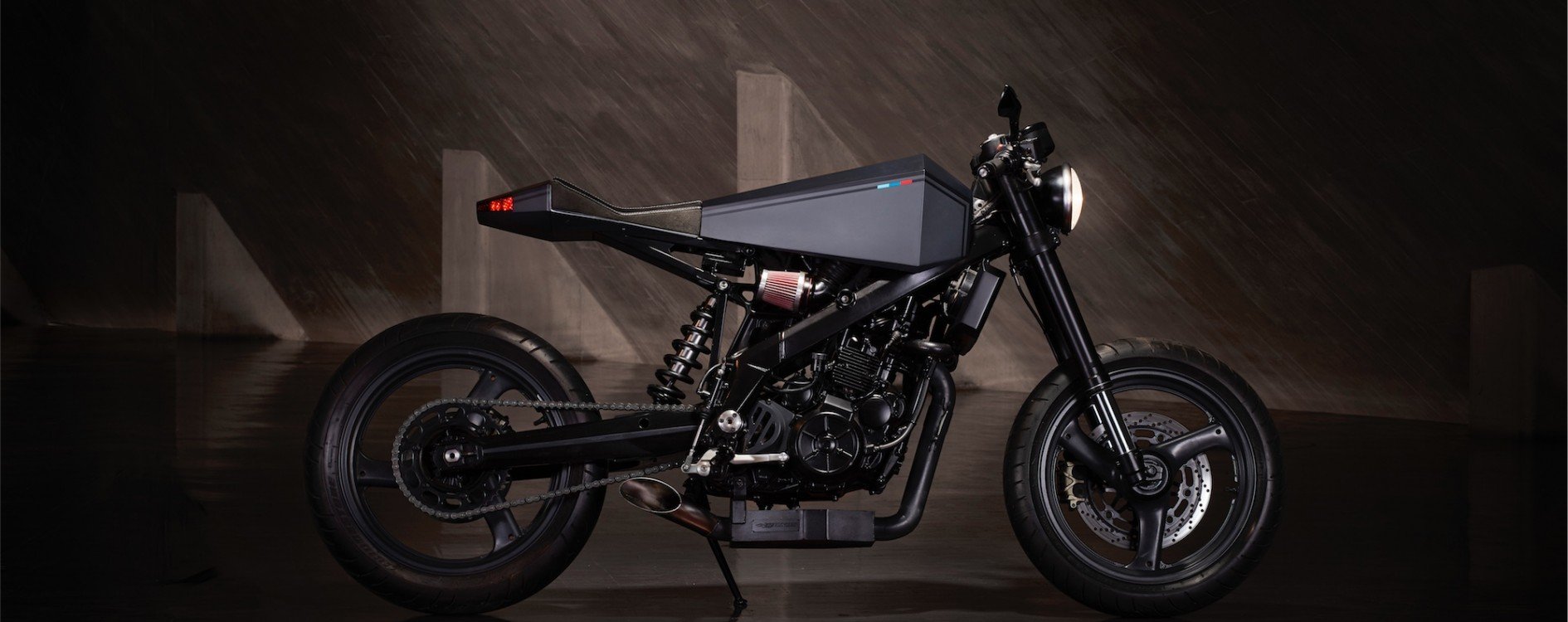 Breaking into a market as competitive as custom motorcycles takes a Herculean effort and a steadfast commitment to the product you design. For their first finished build, the makers at Hyde Designs have shattered expectations with a true dark horse of a bike. Dubbed the Hyde Octavia, the Cape Town-based designers used a BMW X Challenge as their jumping off point, taking advantage of the 650 Rotax engine and open swingarm that comes standard on the factory model. But on top of this frame they build something truly remarkable, sculpting a crisp geometry in a matte black finish. The fiberglass tail flies high above the back wheel, while the custom-welded steel tank draws a sharp contrast to the exposed machinery beneath it on the chassis. Everything about the Octavia oozes style, and pushes the envelope of Café Racer design in a new and exciting direction. Most impressive of all is to bear in mind that this is not the work of an established shop, but Hyde Design’s first attempt at customizing a bike. And if this prelude is any indication of what’s to come, I have high hopes for where their maverick spirit will take them.