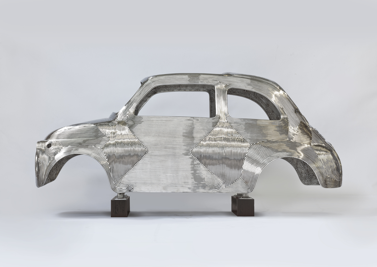 In the same spirit of this concept, architect, artist, designer Ron Arad of Israel has re imagined objects through his exhibit In Reverse. In his own words, “In Reverse is an exhibition about the shift from the physical to the digital – except in reverse. Rather than manipulating materials to render them functional or render digital models towards a functional object here I ‘reverse’ perfectly functional objects and render them useless.” The star of the program is the Fiat 500 in a flatter than usual state and also the alternative polished wood version or rather the stainless steel rod interpretation. So in your opinion, do you foresee these being weaker than their original state. Whether squished or replaced, however trash yet treasure, either dreamy or dream on, we are given the power to express such opinions.