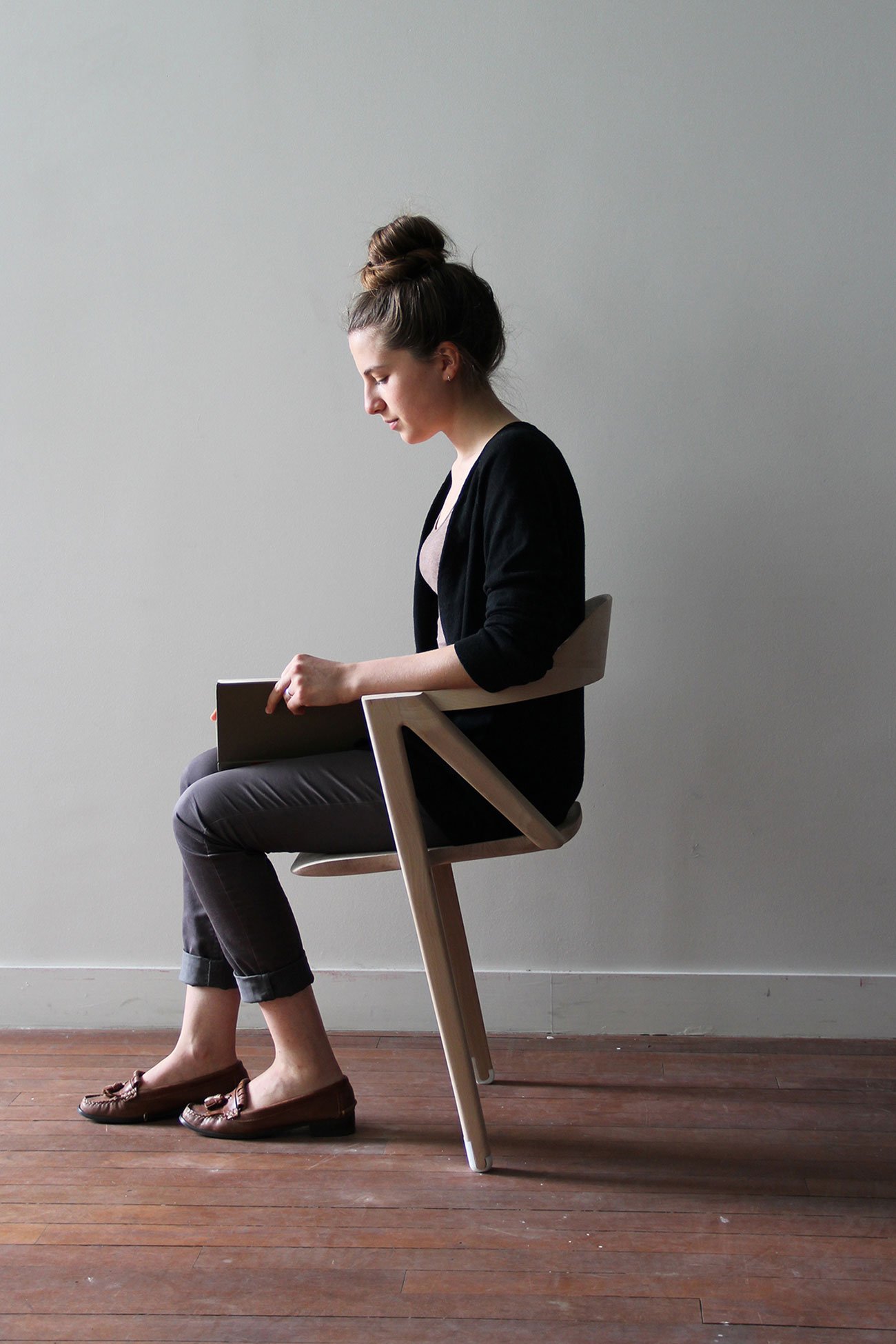 “Inactivity seems to be the disease of today,” observes Parisian designer Benoit Malta. So he credits the inspiration for Inactivité, a collection of furniture that aims to alter the sedentary nature of modern life. “Our ways of living have evolved, and our bodies are less and less active. Our living spaces are conceived with the idea of comfort. My aim was to introduce a ‘bearable discomfort’ for our wellbeing – discomfort used to put the body in motion and thus out of its chronic stationary postures.” A two-legged chair embodies this idea — much like Mono, the co-dependent chair by design student Petr Badura — designed to activate muscles in the lower legs and back and encourage an upright posture while the user fights for balance. Crafted from natural beech wood, the chair’s vacuum-formed back and seat shaped with CNC technology blend effortlessly with the remaining hand-formed components. The simple, curvilinear silhouette makes a subtle nod to the traditional domestic seat where the human body serves to complete the form. “The chair proposes another way to sit…it allows you to use the body as a component.” Malta’s use of natural materials in a spare, organic form calls for a heightened awareness of human nature in an increasingly structured world.