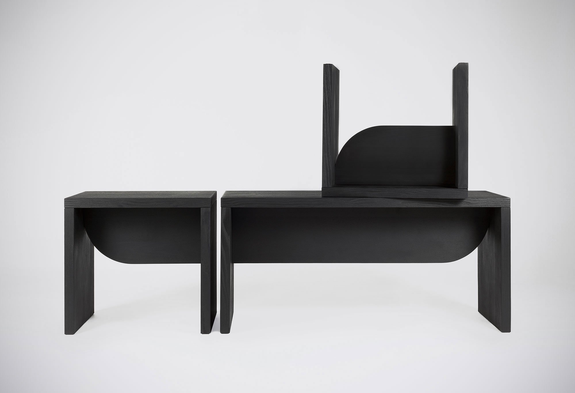 Created by Italian designer Federico Angi for Atipico, this seating collection demonstrates the powerful graphic effect that the simplest geometry can impress. “Iperbole” is deceptively simple; black rectilinear frames made from stained solid ash wood support the user with the subtle addition of a curved cut at the back. However, this detail is more than decoration – it is an integral piece of the system of interlocking joints that hold everything together. This unexpected asymmetry leads the eye throughout a dynamic composition rarely seen in projects whose main motivations are “simplicity and economy.” Atipico, an exlusively Italian brand, firmly believes in the influence of everyday objects on our very being: “Every object is contextualized to last in time, to stir the emotions: if merely displayed they would only lose their poetry. And so they pose and wait, dialogue with the others, a study in consistency and simplicity: underneath there is a common thread that unites them.” Angi’s imaginative furniture collection was a part of the group’s exhibition at the last Salone del Mobile in Milan.