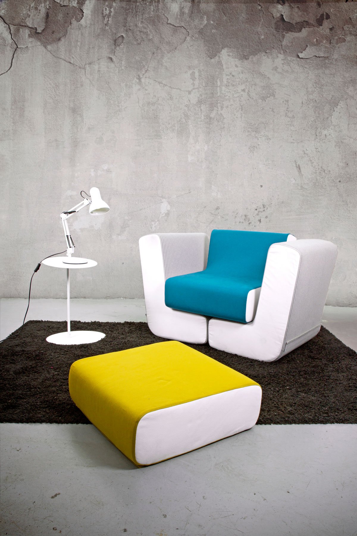 Designed by Luca Binaglia for Abnormal, Share is a seven-piece set of modular furniture for the living room. Each of the seats, whether flat or curved in shape, can stand alone or stack to form a larger design. For example, the components can be turned into armchairs, lounge chairs, loveseats, sofas, poufs, and ottomans. The polyurethane seats are produced in Italy by Ge.Sa snc.The pillowcases make use of reclaimed yarns by Beatrix Spa. Made in blue, yellow, and white, the adaptable design brightens one’s home or office space.