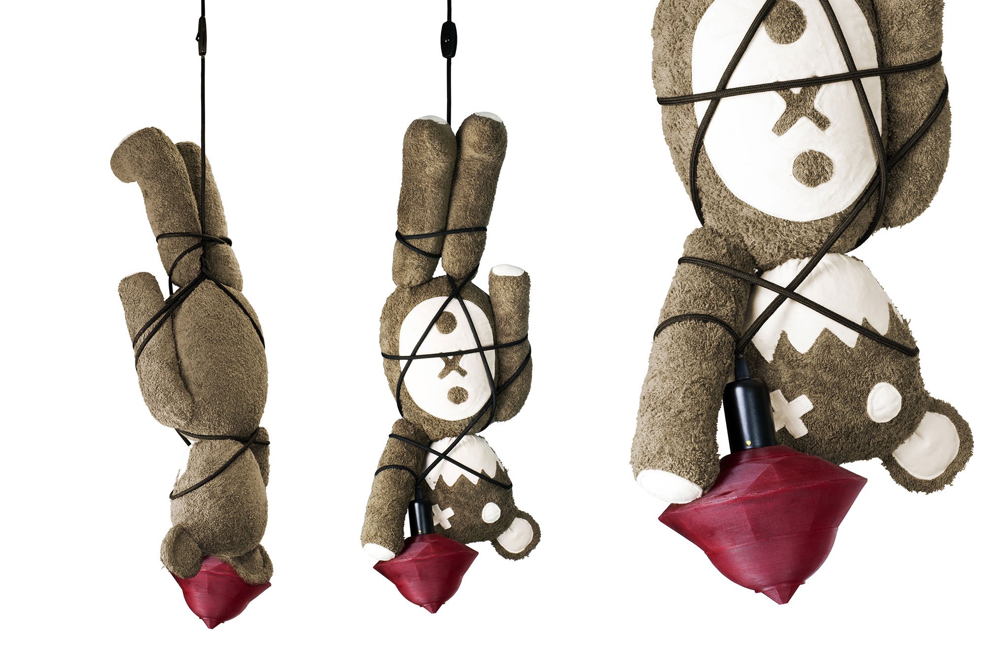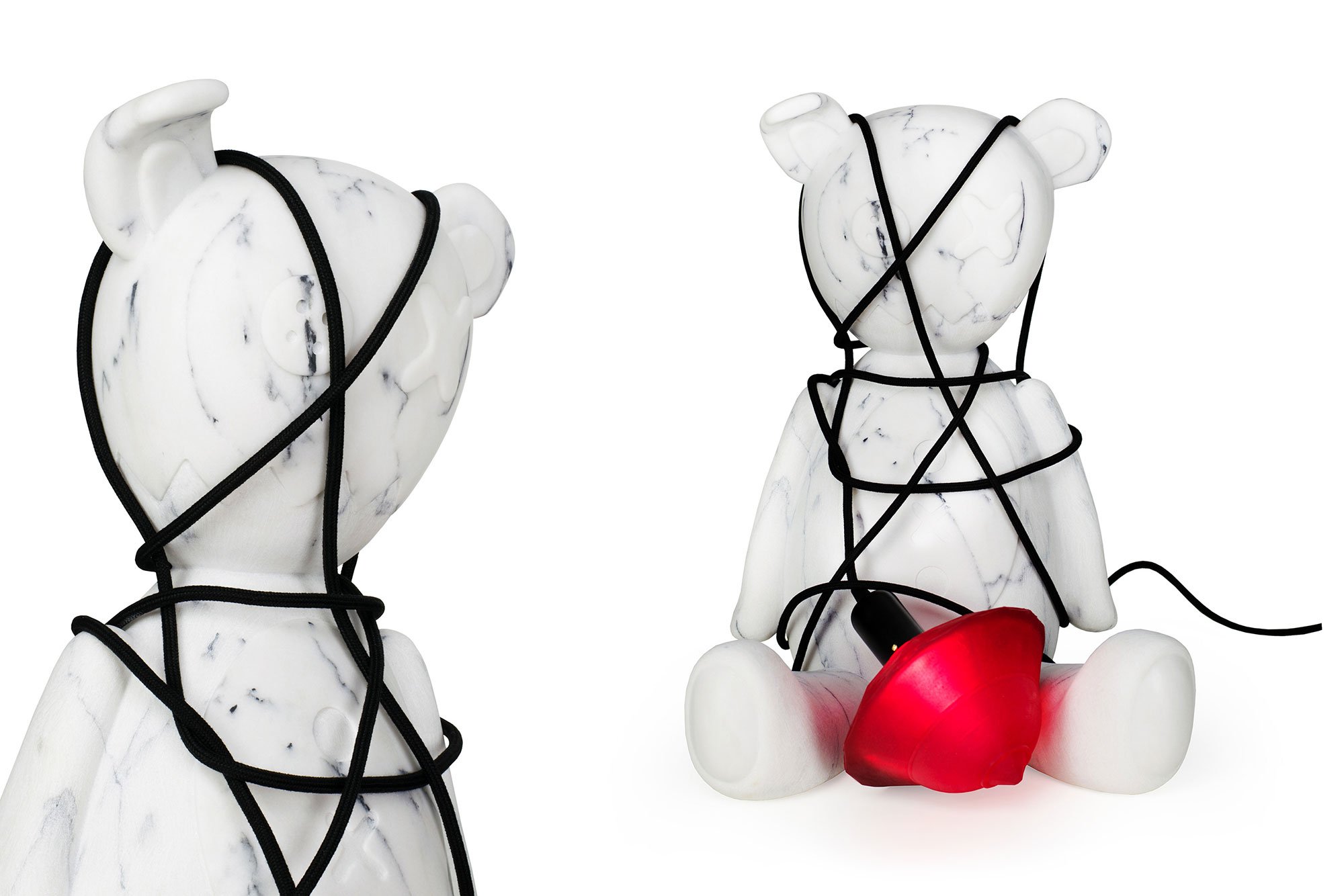 Jack, the central character, takes the shape of a teddy bear, referencing childhood memories. Crafted from fabric, paper or marble, Jack explores the features and tactile qualities of different materials. Using the Bouquet of Diamonds lamps alongside the bear, André Teoman creates humorous scenes. Ultimately, the Jack Lamp Family brings together art and lighting design to highlight the absurd of the everyday through playful compositions. Photographs© André Teoman.