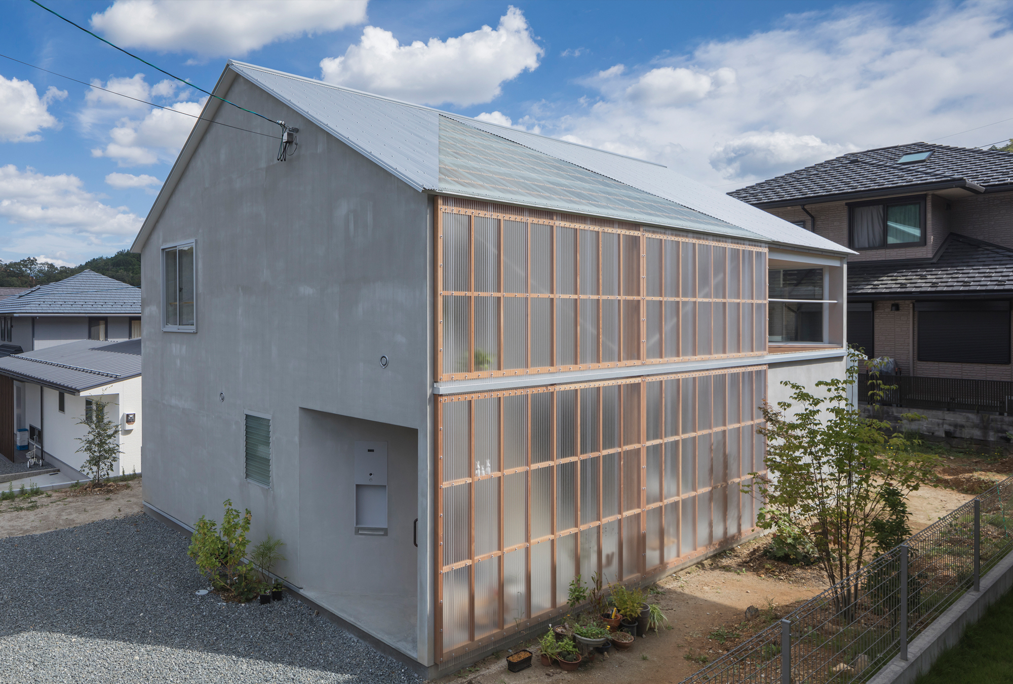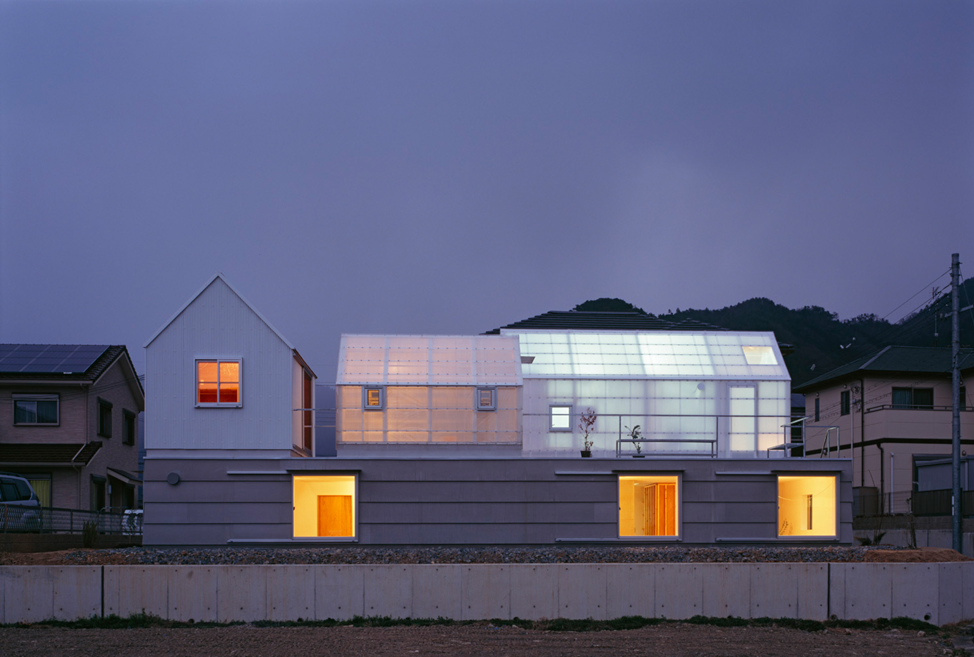 When is comes to modern houses Japan has plenty of imaginative concepts to delight architecture fans. House in Yamasaki is definitely one of them. Completed by Tato Architects, this house has a highly creative design with three barn-like volumes on top of a gray platform. Located in the Hyogo Prefecture in a mountainous landscape with often overcast weather conditions, the dwelling features cleverly designed spaces. The base contains the main living areas, while the three volumes house a guest room, a bathroom, and a greenhouse. Both the bathroom and the sunroom feature corrugated polycarbonate panels and enhance the lighting and ventilation for the lower volumes. At the same time, the roof doubles as a courtyard.