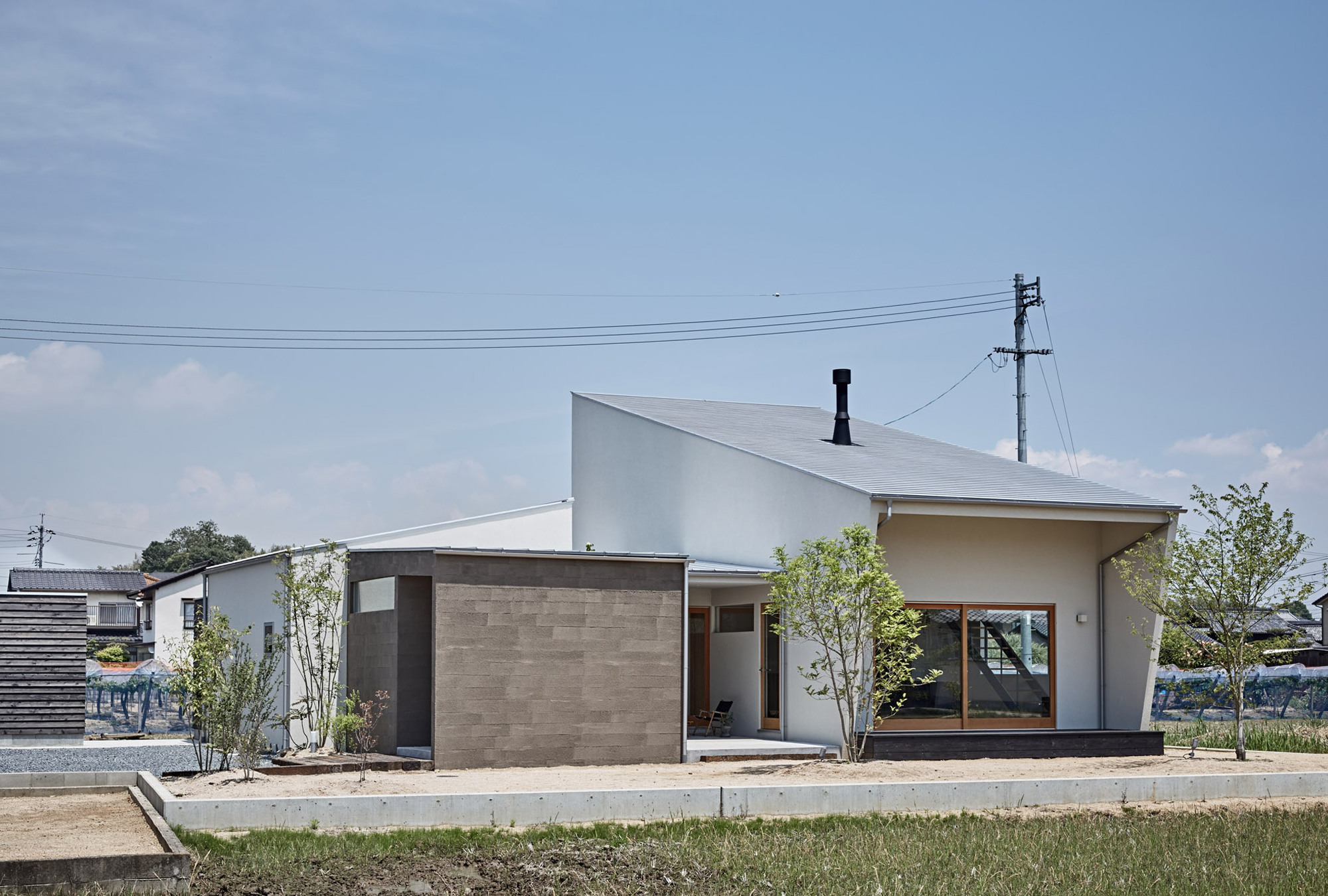 House in Gakuenmae by Fujiwaramuro Architects is a great example of contemporary architecture influenced by landscape. The design also shows that when it comes to modern houses Japan based architecture studios often find ingenious and elegant solutions to complex problems. For example, this dwelling on an elevated site required a new parking space. With a limited budget, the team discarded the idea of a new wall and created a slope that connects the house to the lower, adjacent land. This clever solution also influenced the design of the home. It features an elongated roof that continues the angle of the topography and gives the dwelling its distinctive character and triangular silhouette.