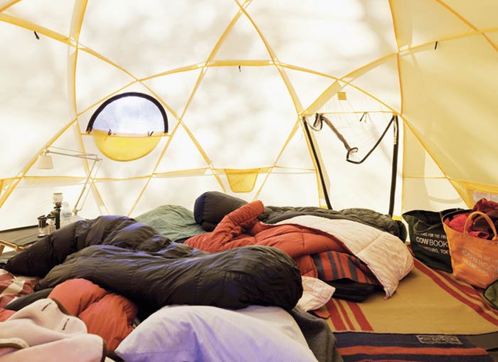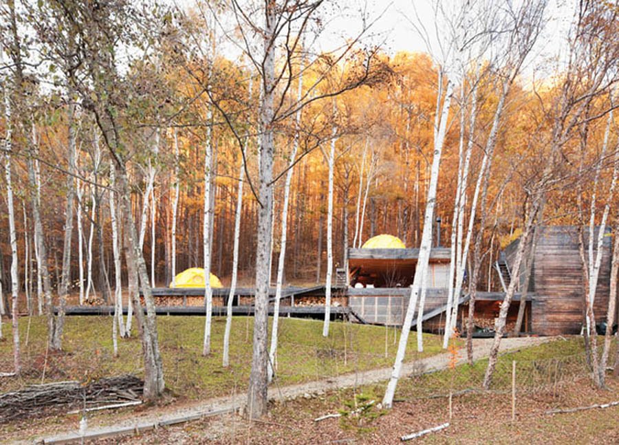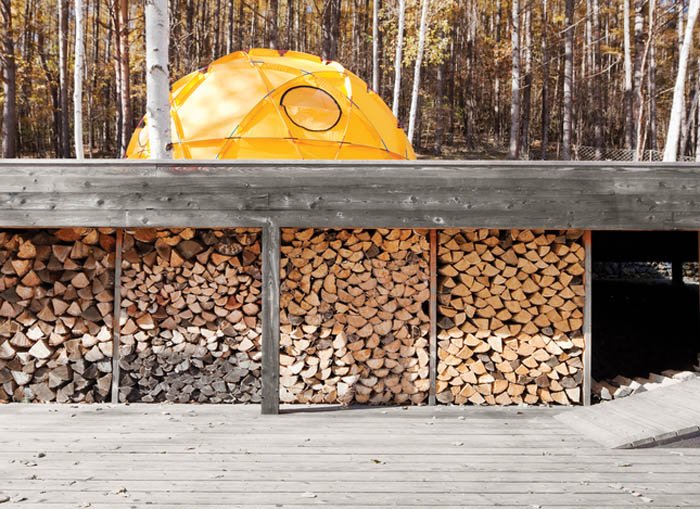 This platform living space, neither a home nor a campsite, is a backpackers lean to penthouse. Fully stocked with all the gadgets any mountain man could fathom, this crib is like a candy store of selections with wall after wall of trinkets and survival this and thats. Year round dome North Face sleeping quarters provide minimal shelter. Removable panels in the kitchen allow a true open floor concept with living arrangements extending to the crisp forest air on the deck. Creative concepts like the rock wall option to the second level or the galvanized tubs as sink basins continue the outdoors man theme throughout. However, they have not skimped on the hints of unmistakable luxury, for example a relaxing claw foot soaking bath, high end designer decor items, and oh that breathtaking view.