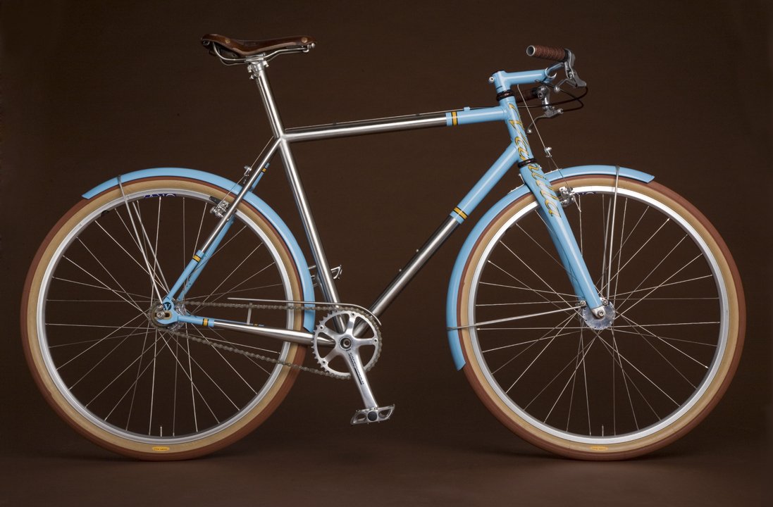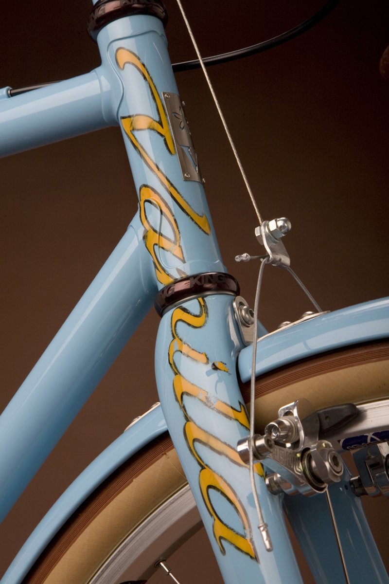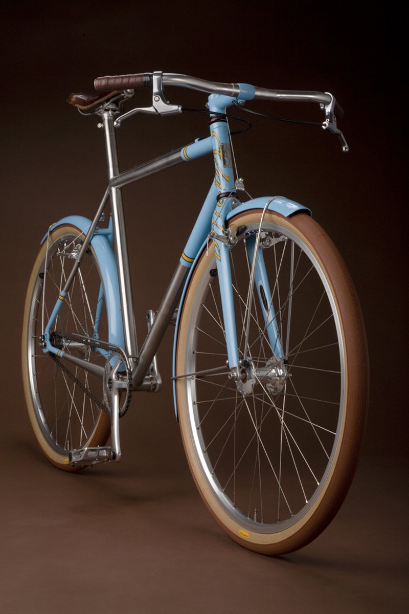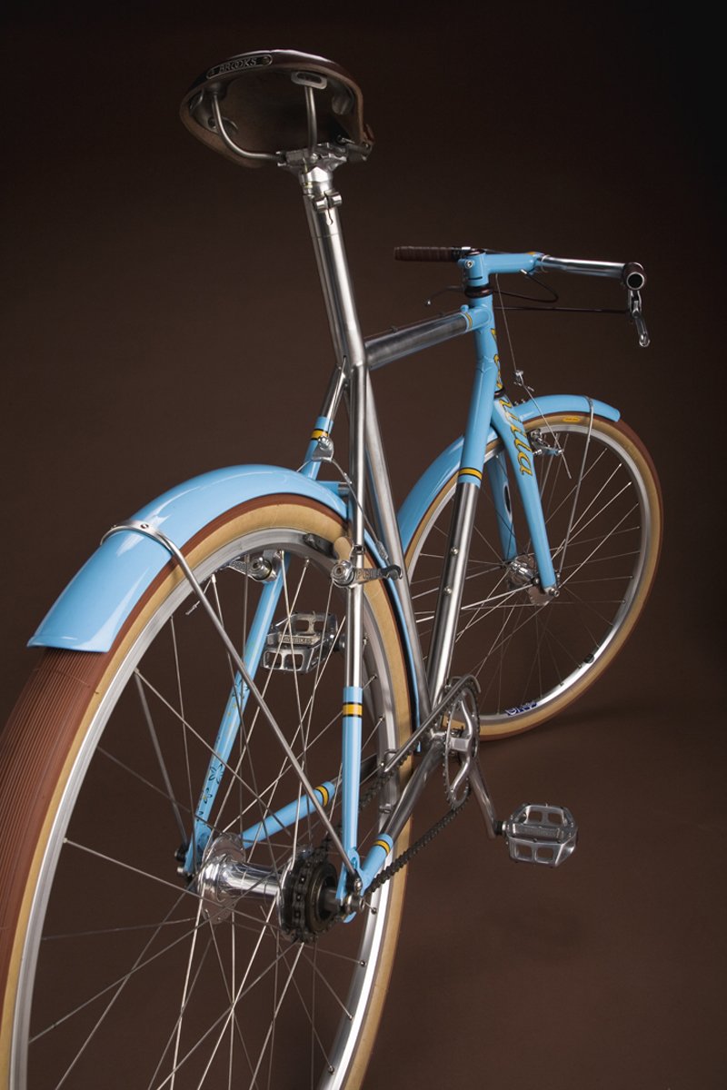 Sacha White of Vanilla Bicycles surprises us with the vintage finesse of Jared’s Commuter. Creamy blue details in the strong design simply prepares you for the equally smooth ride all around the city. “It is our goal to show the Vanilla world with honesty and sincerity. This means clear, almost palpable photography, insight into our choices to stay small and keep production low, as well as sharing stories about the people and businesses that we surround ourselves with and why we are so proud of them.”