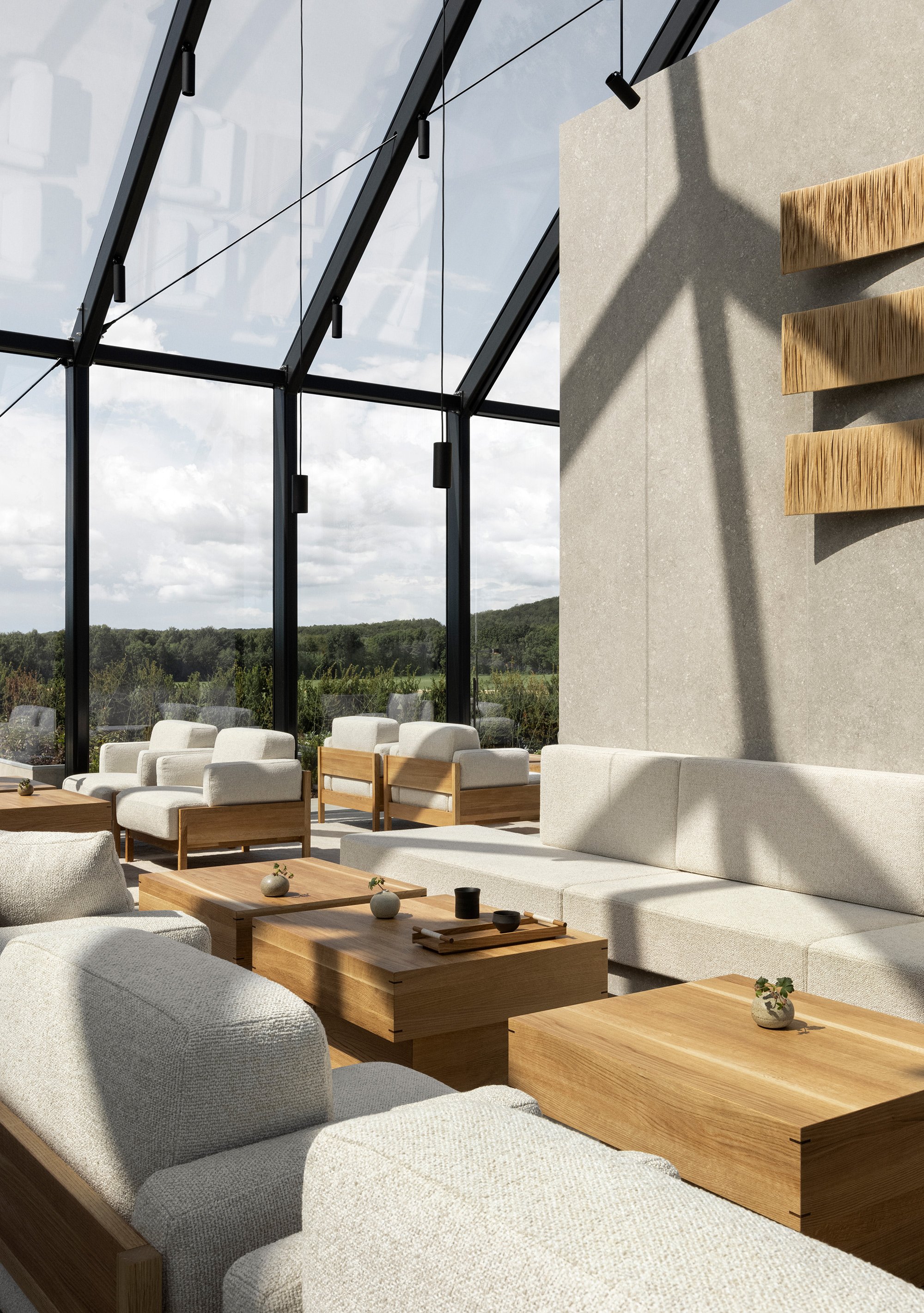 Part of the Karimoku Case Study series, the no. 6 project involved the design of a new location for the Michelin-starred ÄNG restaurant. Architecture and design firm Norm Architects, who are also creative directors of Japanese lifestyle brand Karimoku, created the design. The Swedish restaurant reopened its doors in July in a rural area next to the Ästad vineyard in Tvååker, Sweden. Reminiscent of a barn with its gabled silhouette, the modern glass house features transparent walls. The glazing immerses diners in the pastoral countryside setting with its meadows and green fields. The interiors merge Japanese and Scandinavian design principles and feature a range of natural materials but with refined finishes that create a parallel between the rustic location and the Swedish haute cuisine.
