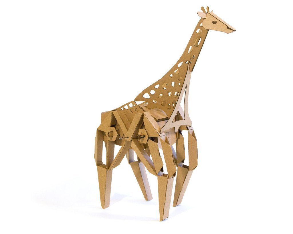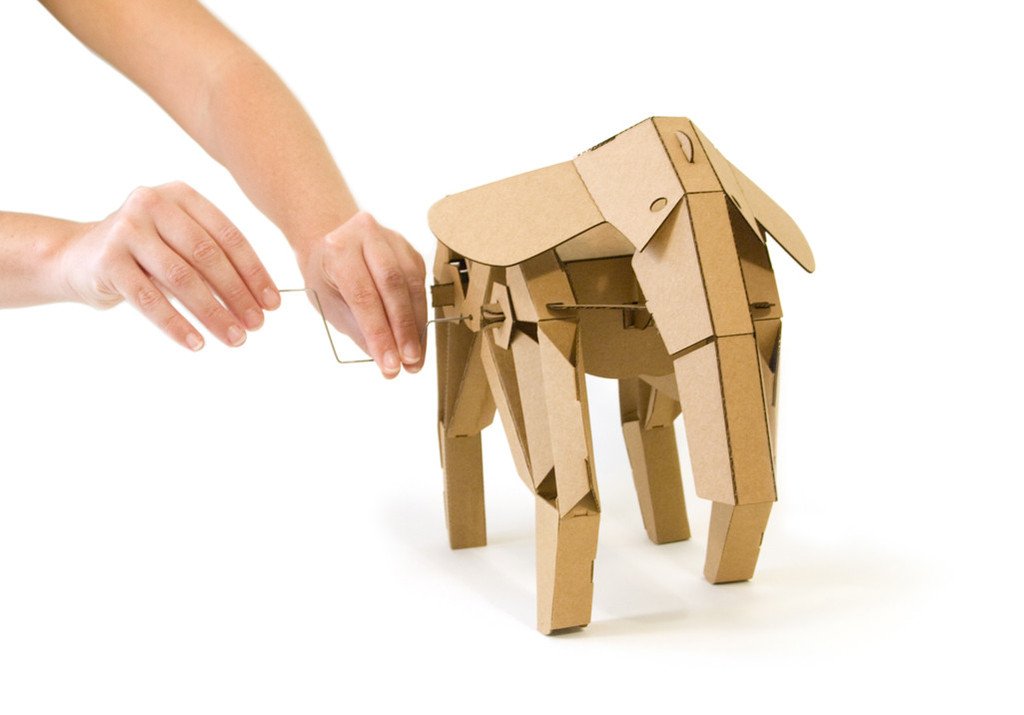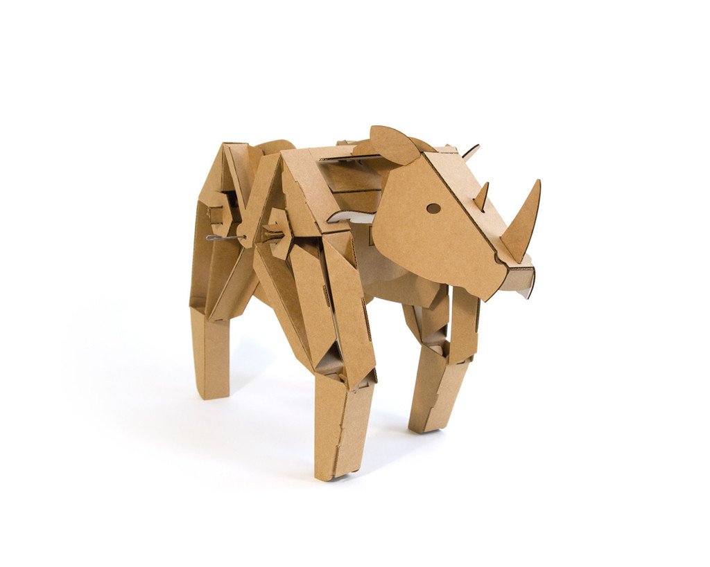 Feel like smiling? You will after viewing this parade of cardboard animals come to life right before your eyes. The graceful movements of these Kinetic Creatures are realistic to the wild animals themselves. By simple mechanics their bodies move either using a manual turn knob or magically on their own by a Kinetic Creature Motor Kit. Each of the three species come in a collapsed state to be turned into their true shapes with a few folds here and a couple of tabs tucked there. Online instructions will guide you every step of the way to building Elly the Elephant, Rory the Rhino, or Geno the Giraffe. Stimulating engineering and problem solving….energizing wildlife imagination in children ages 11 to 99.
