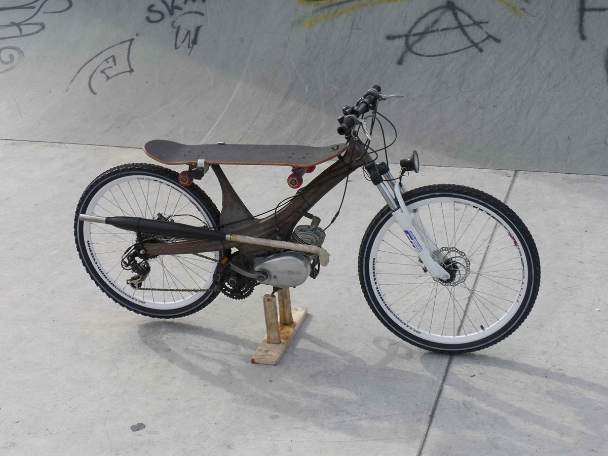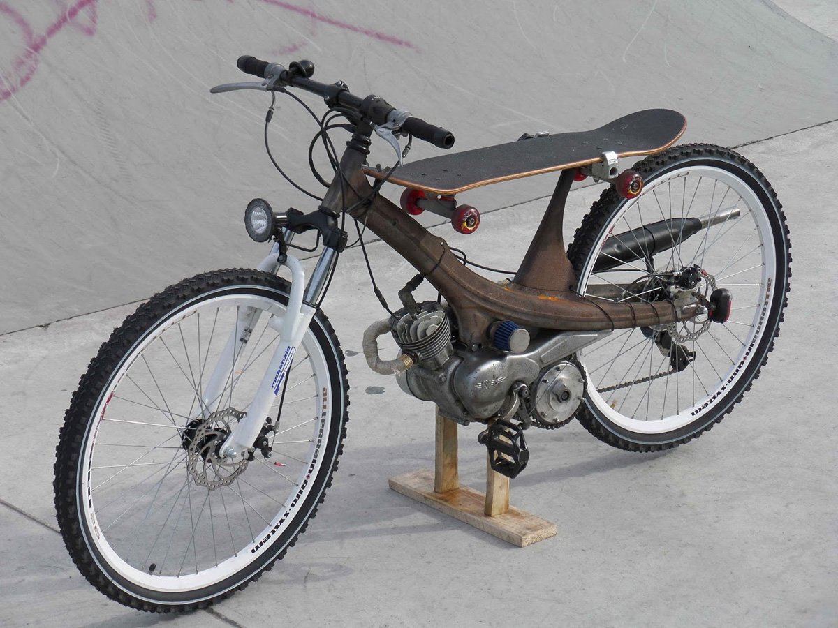 It’s as good a time as ever to freak out over this insane Kingston Custom NSU Quickly. What is going on here? Looks like we have the traditional smallish frame of a bicycle but heavy and robust, a motorcycle to the core. Tricked out with a skateboard seat, glammed up front with a sick fork. It’s about as unpredictable as it gets; what’s not to love?