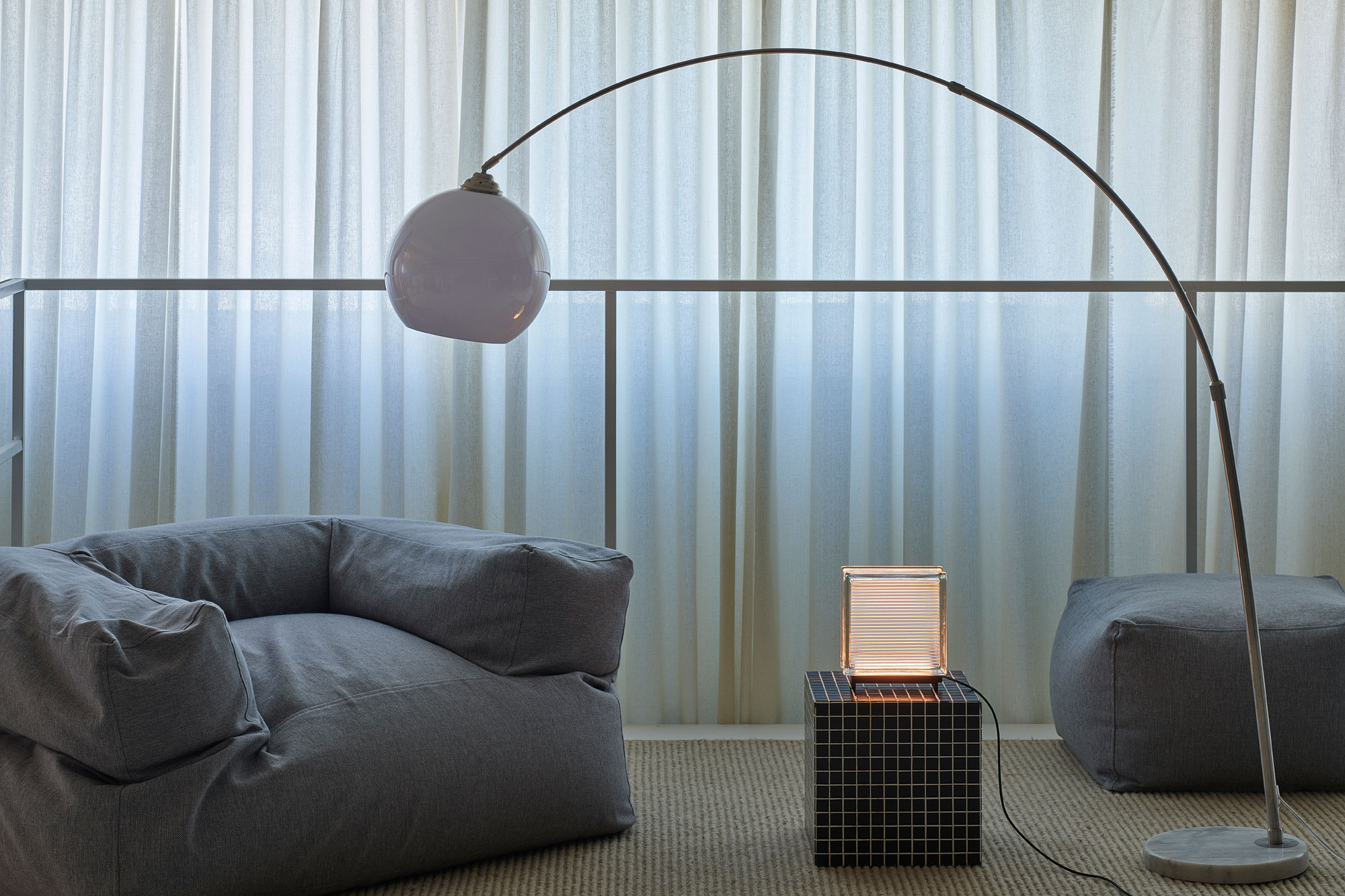 The Doric Lamp 01 is the centerpiece of the entire collection. It comes with a Doric19 glass block based on the drawings of renowned architect Rafael Moneo, and with a custom steel base. The Linear Lamp 01 boasts a clean ribbed pattern which subtly diffuses the light. This design works either horizontally or vertically. The Cross Linear Lamp 01 features intersecting lines that create subtly different lighting effects depending on the angle. Aptly named, the 80s Dream Lamp 01 has a frosted surface that softens the light and the mood but still lets the linear pattern shine. Finally, the Orbital Lamp 01 gives a nod to the Maison de Verre building in Paris. This lamp features a central circle and pronounced edges.