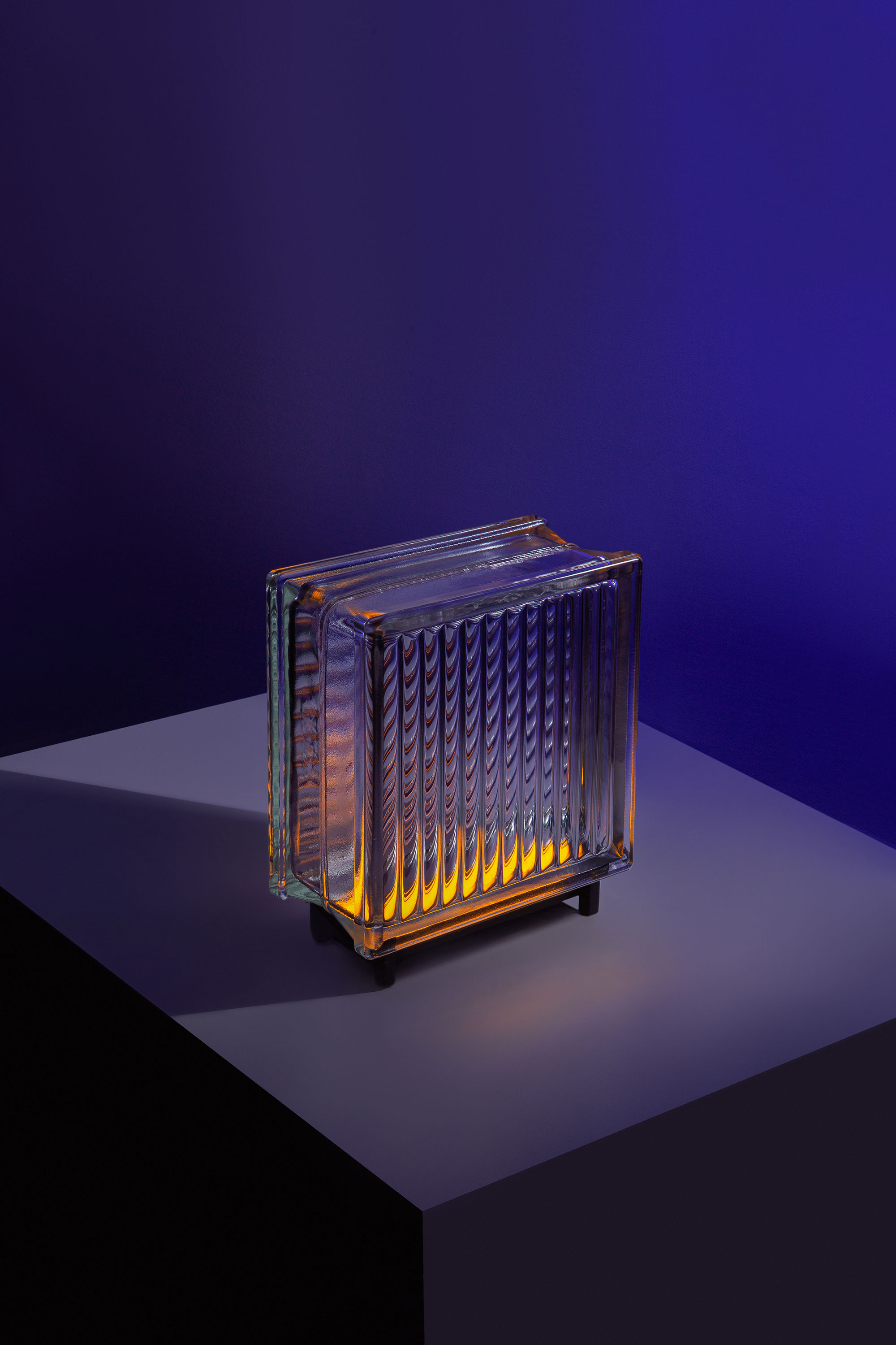 A collection of dimmable glass brick lamps inspired by modernist architecture.
