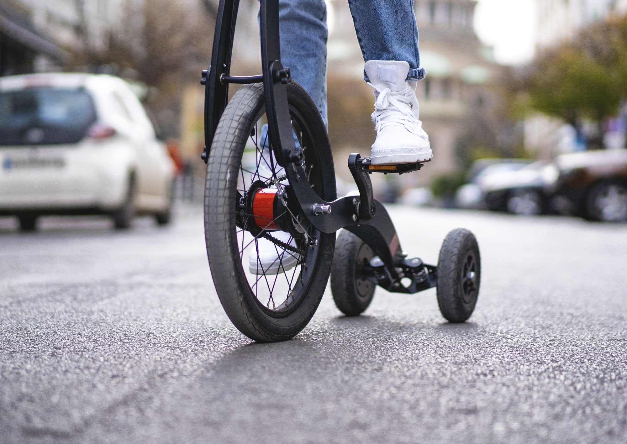 This compact, lightweight stand-up vehicle makes going from point A to B more fun. At the same time, the user gets a full body workout with every ride. Learning to ride a Halfbike takes some adjustment, but most people master the basics in around 15 minutes. Then they only have to keep riding until everything clicks. Just like it did when they first learned to ride a bike.