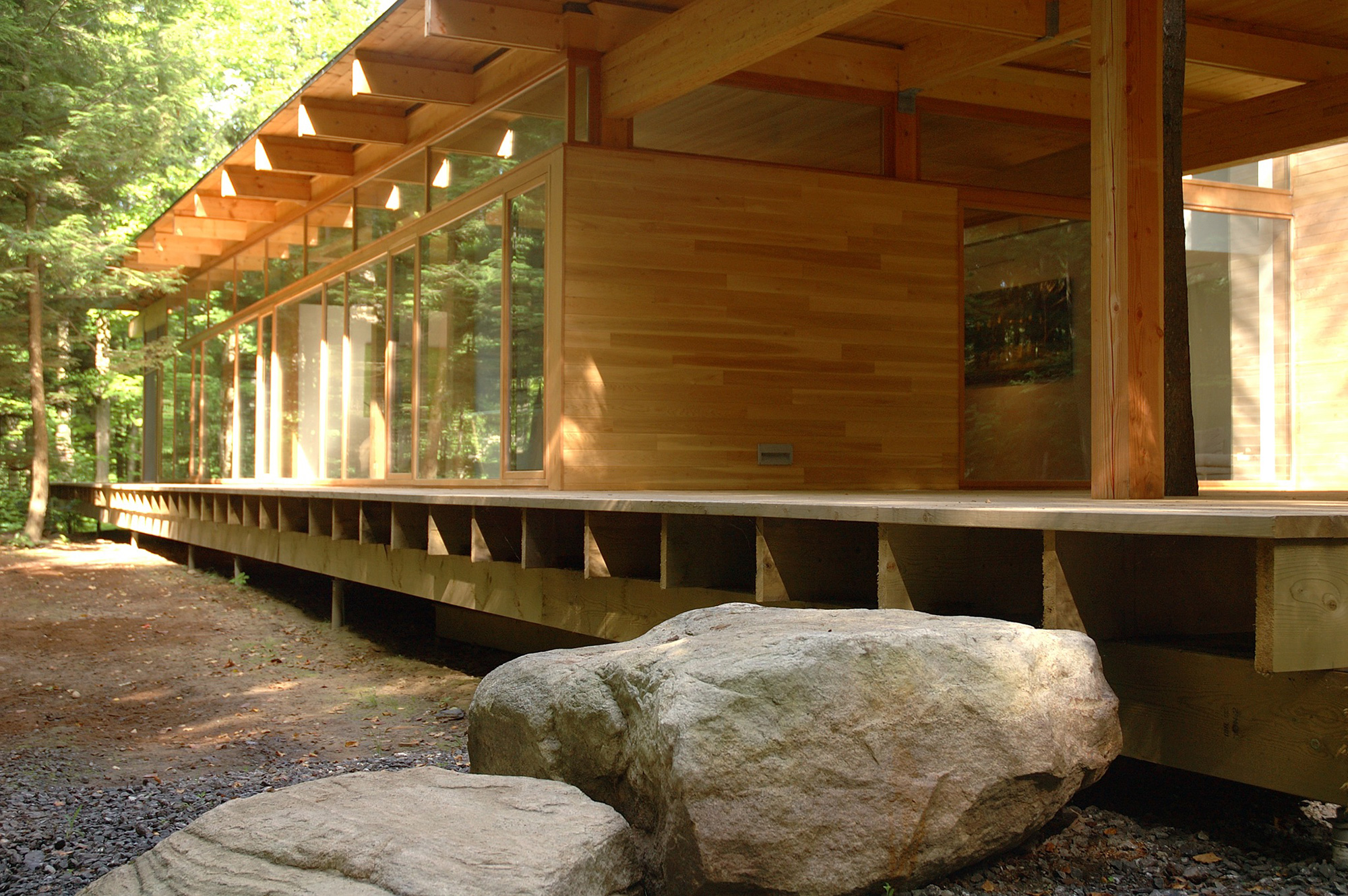 A wood and glass house built on a forested plateau bordered by a small river. Located in the St-Lawrence Lowlands, Canada, this house stands on a plot of land... Read full article »