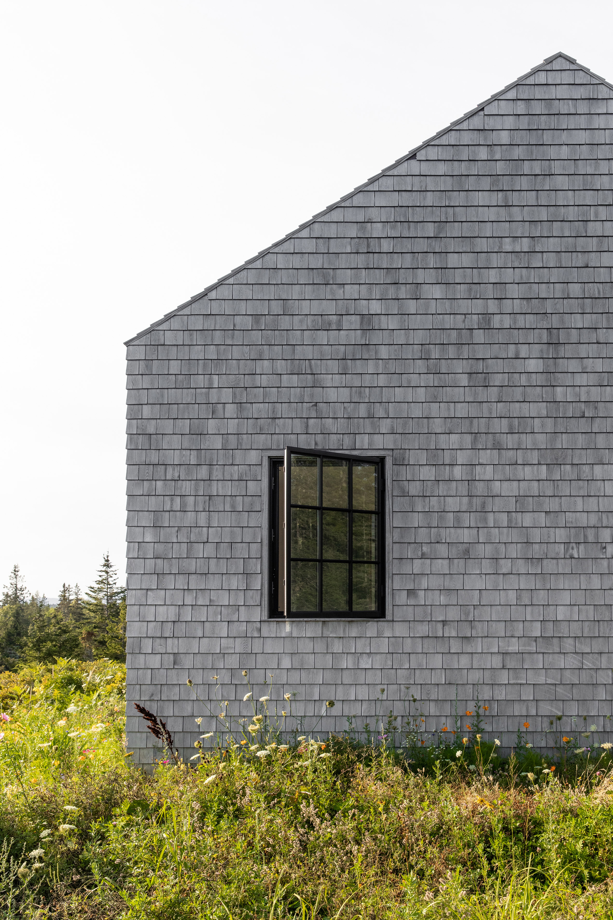 Referencing classic New England farmhouses with connected volumes, the building offers a contemporary take on the traditional barn silhouette. Furthermore, the architects reinterpreted the “ell” design, found in many historic buildings in the area, as a central porch that links two wings. The screened element is transparent and thus immerses the residents in the gorgeous setting. The elongated shape of the house makes the most of the water views to the west. However, the living spaces also overlook the Camden Hills to the north and rugged ledges to the east.