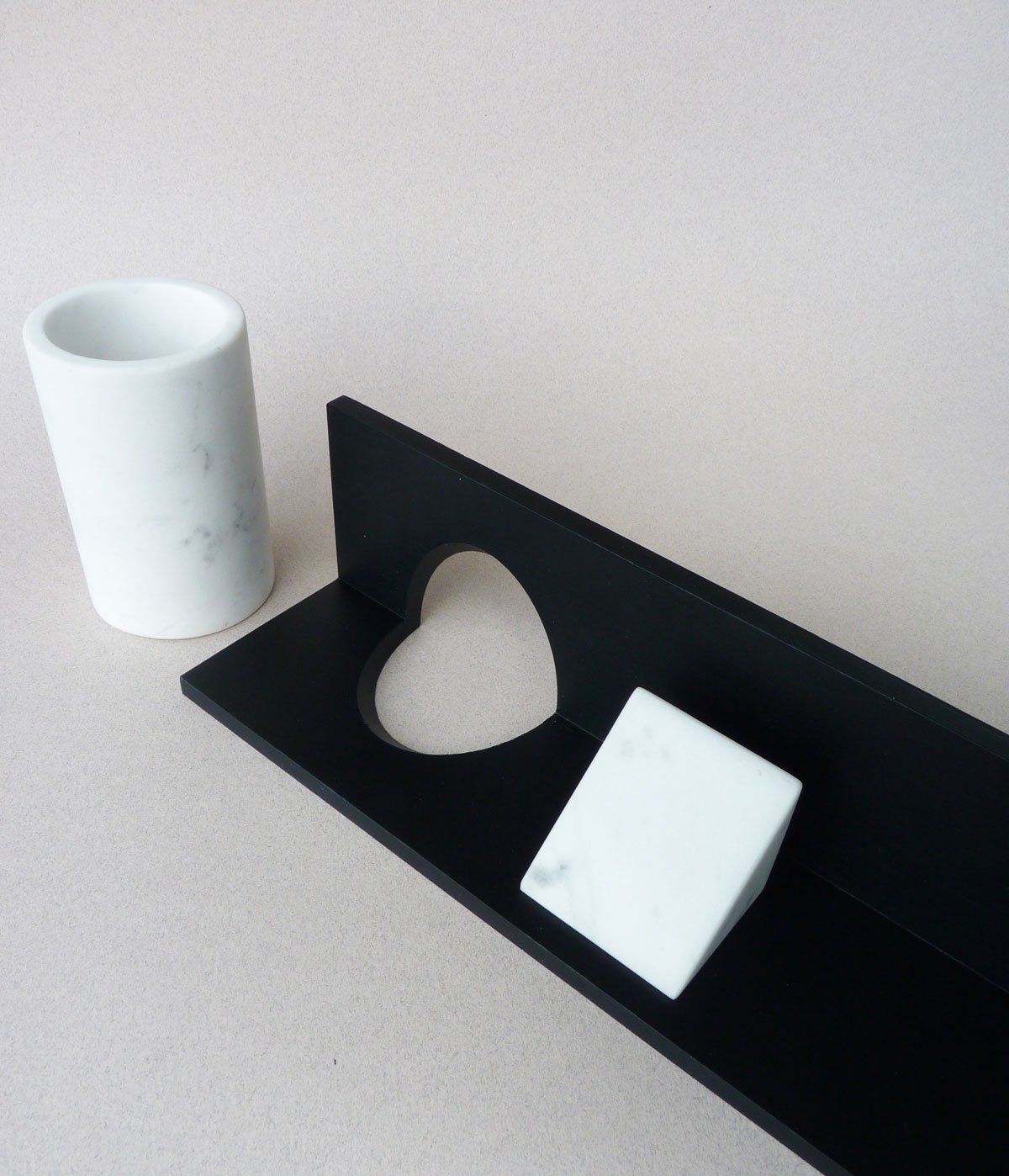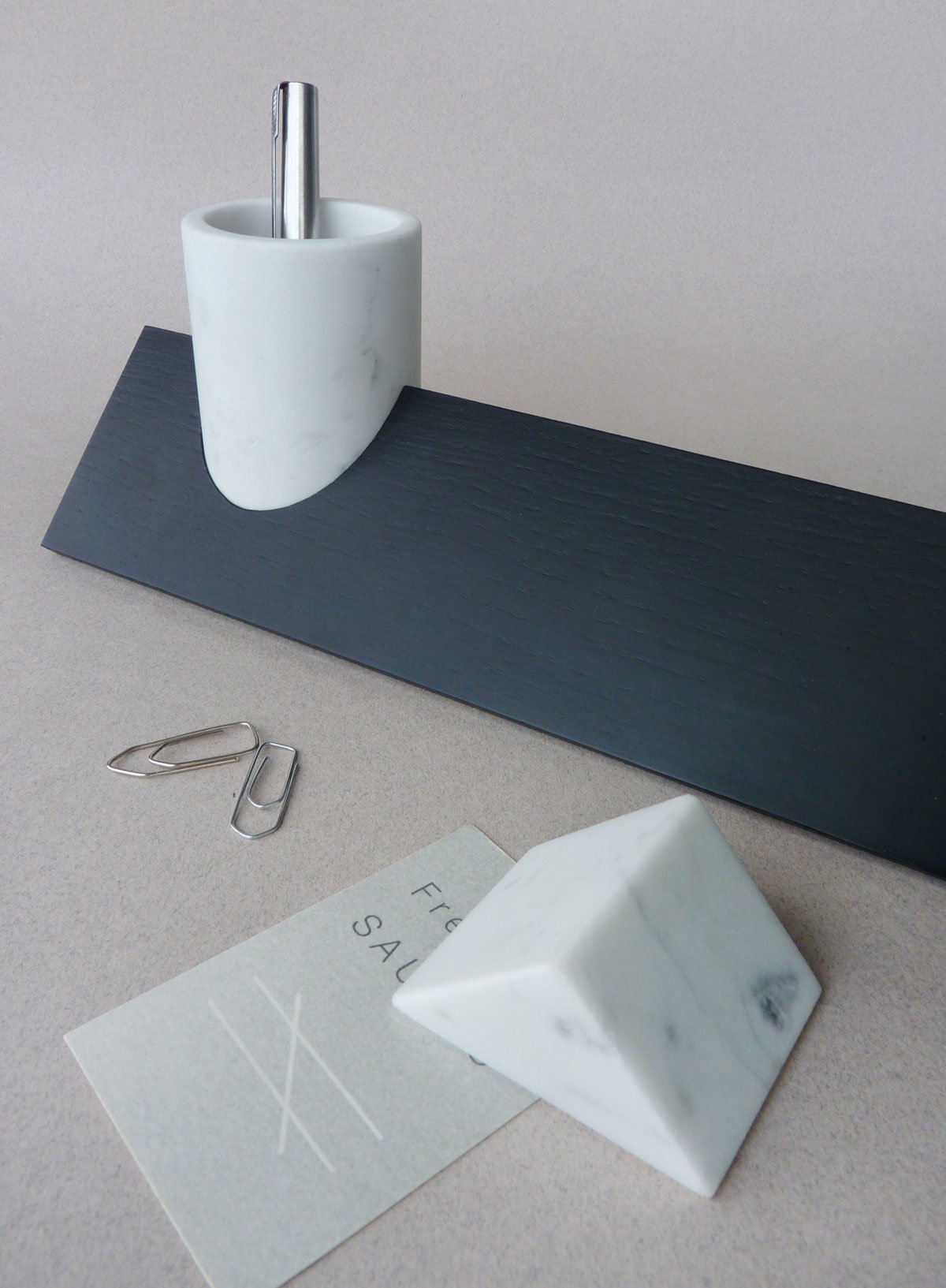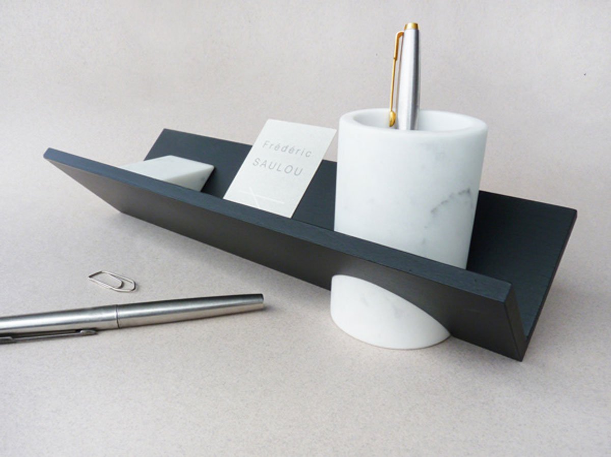 This striking geometric office accessory was designed by Frederic Saulou for the new furniture manufacturer HAPTEIN. Composed a v-shaped catch-all and a cylindrical pencil holder, the product plays with iconic forms and delivers on function. Pairing black and white components, the marble design is high contrast and high style. From September 6-13, the piece can be found on display at Cité de la Mode et du Design for Paris Design Week 2014.